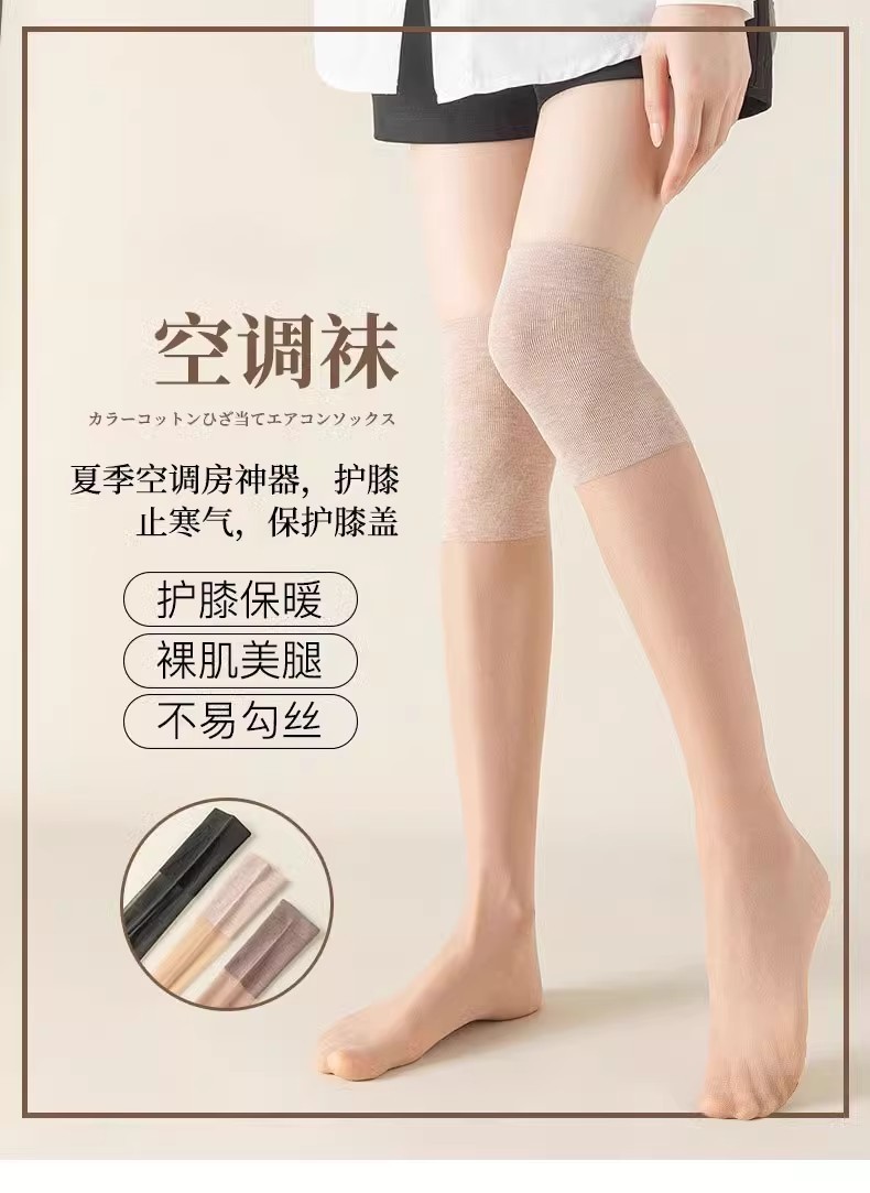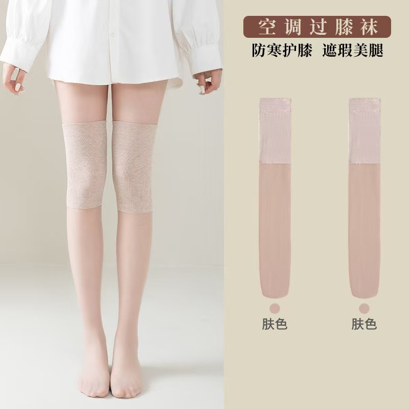 여성용 에어컨 무릎보호양말, 무릎위 롱스타킹, 미끄럼방지, 임의절단, 걸림방지, 보온, 방한, 여름, 초박형, 섹시