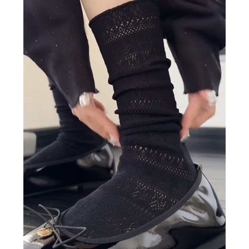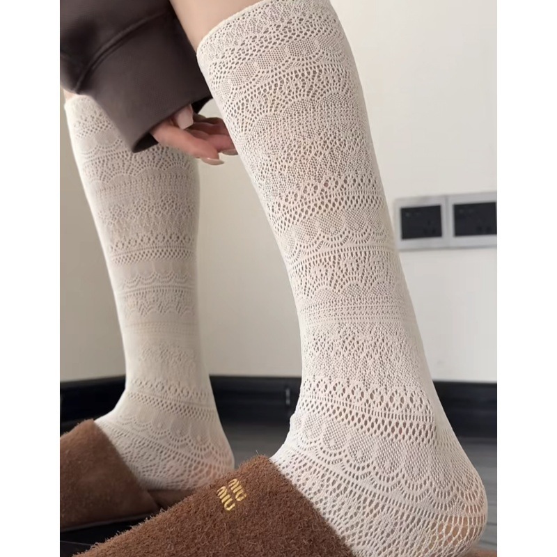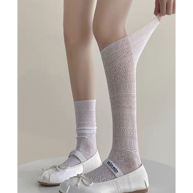 여름 양말 여성용 종아리 양말 얇은 레이스 중공 메쉬 종아리 양말 JK 스위트 스타일 화이트 롱 양말