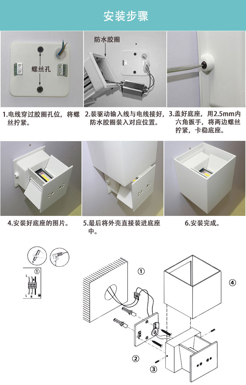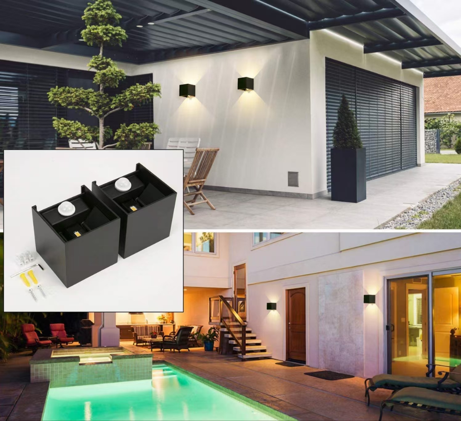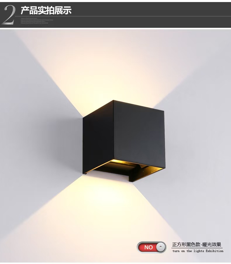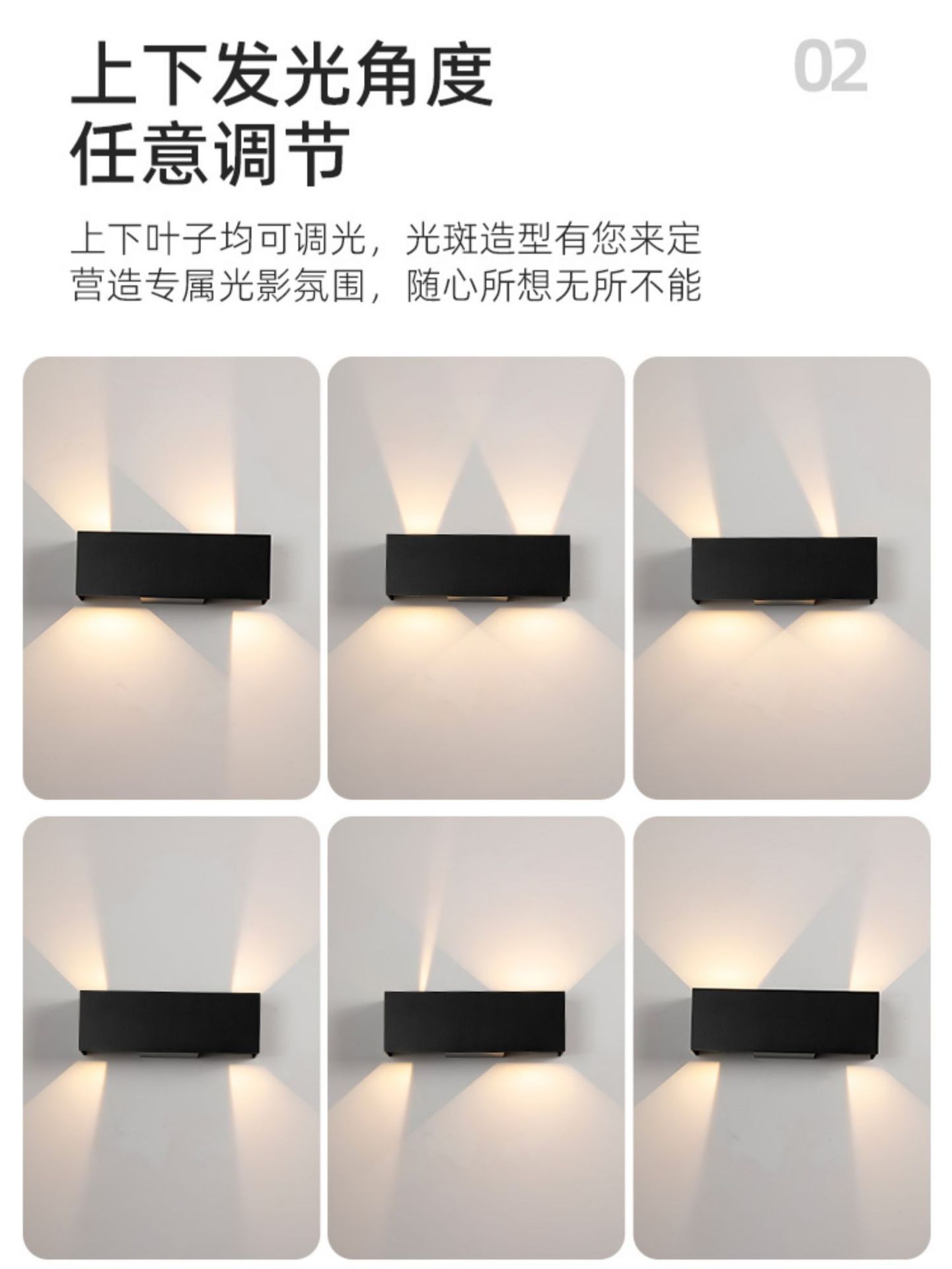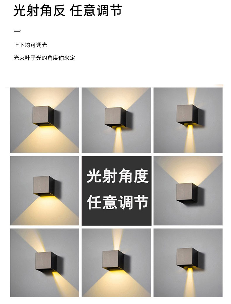 방수 유도 사각형 벽 램프 조정 가능한 각도 간단한 계단 복도 통로 벽 램프 더블 헤드 디밍 벽 램프