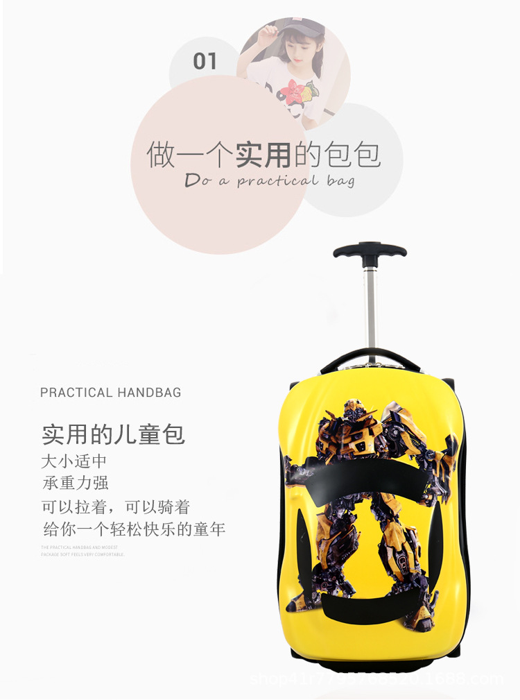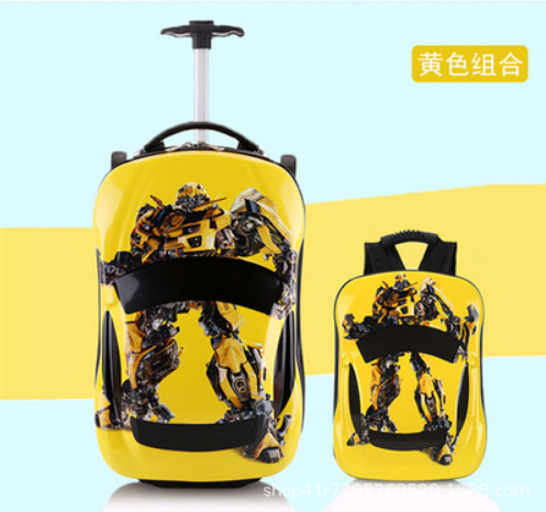 범블비 어린이 여행 가방 소년 18 인치 장난감 트롤리 케이스 자동차 여행 가방 학생 탑승 상자스토어 가기