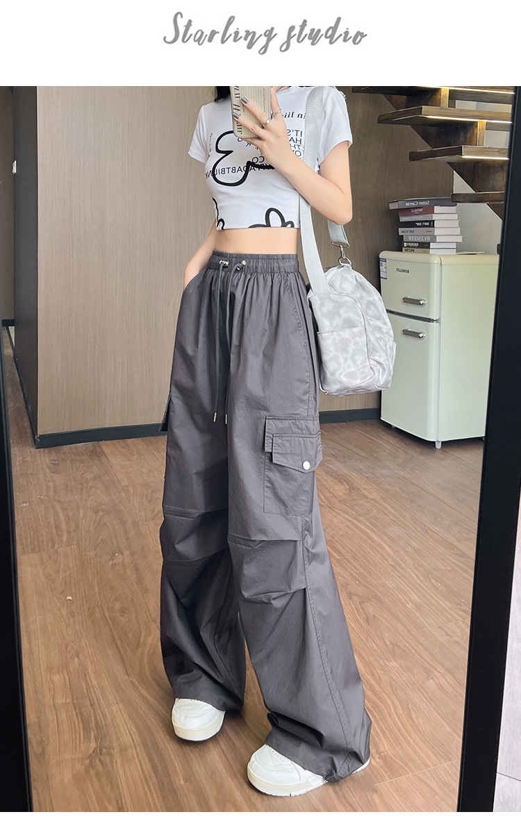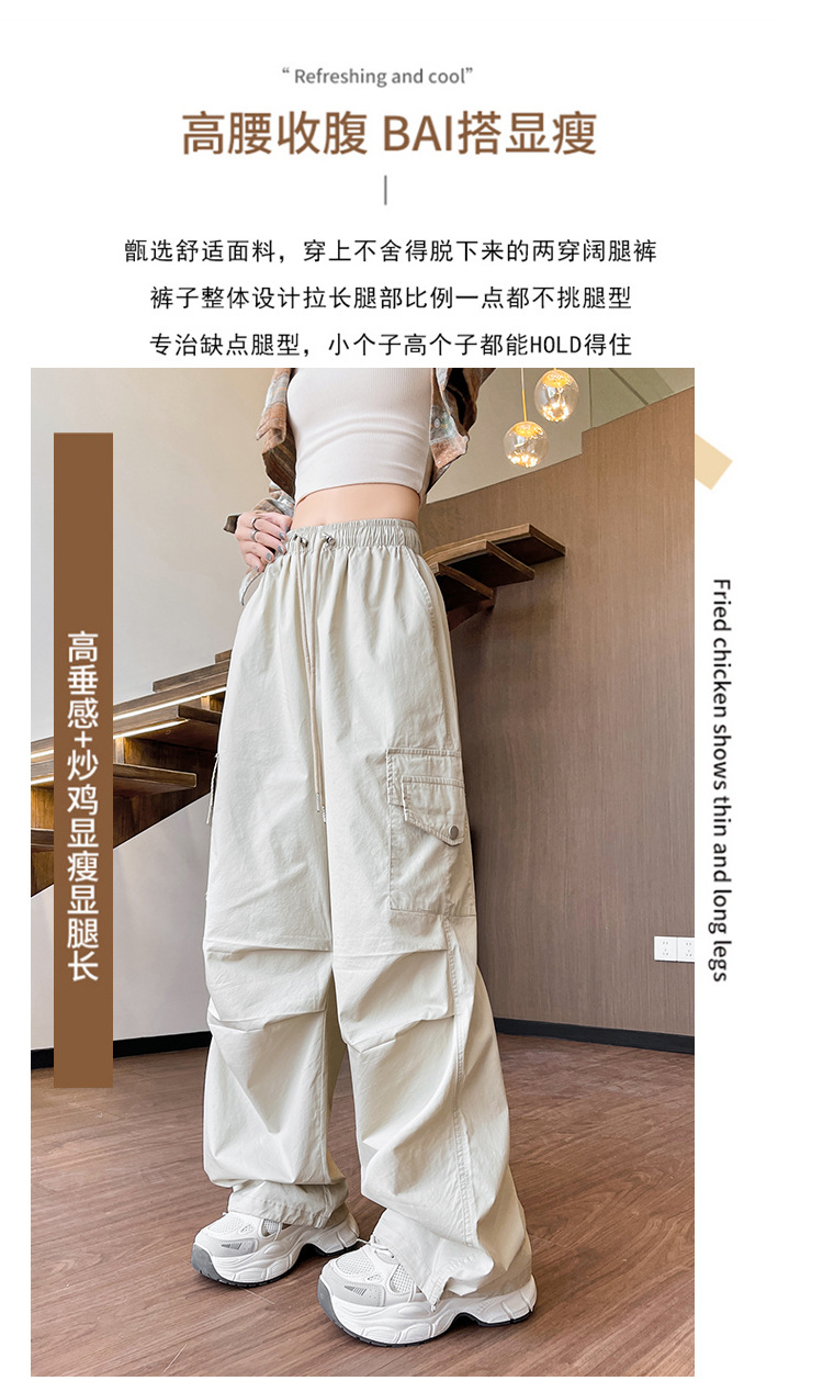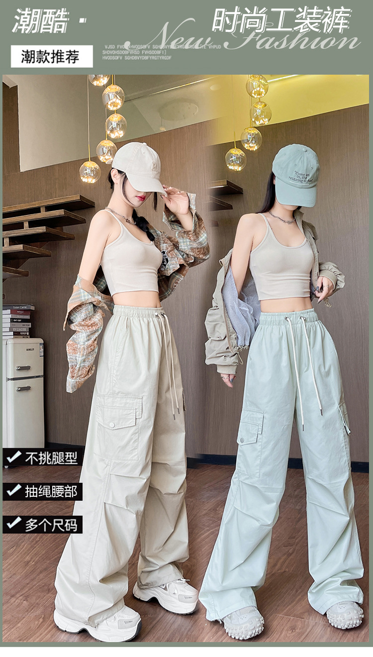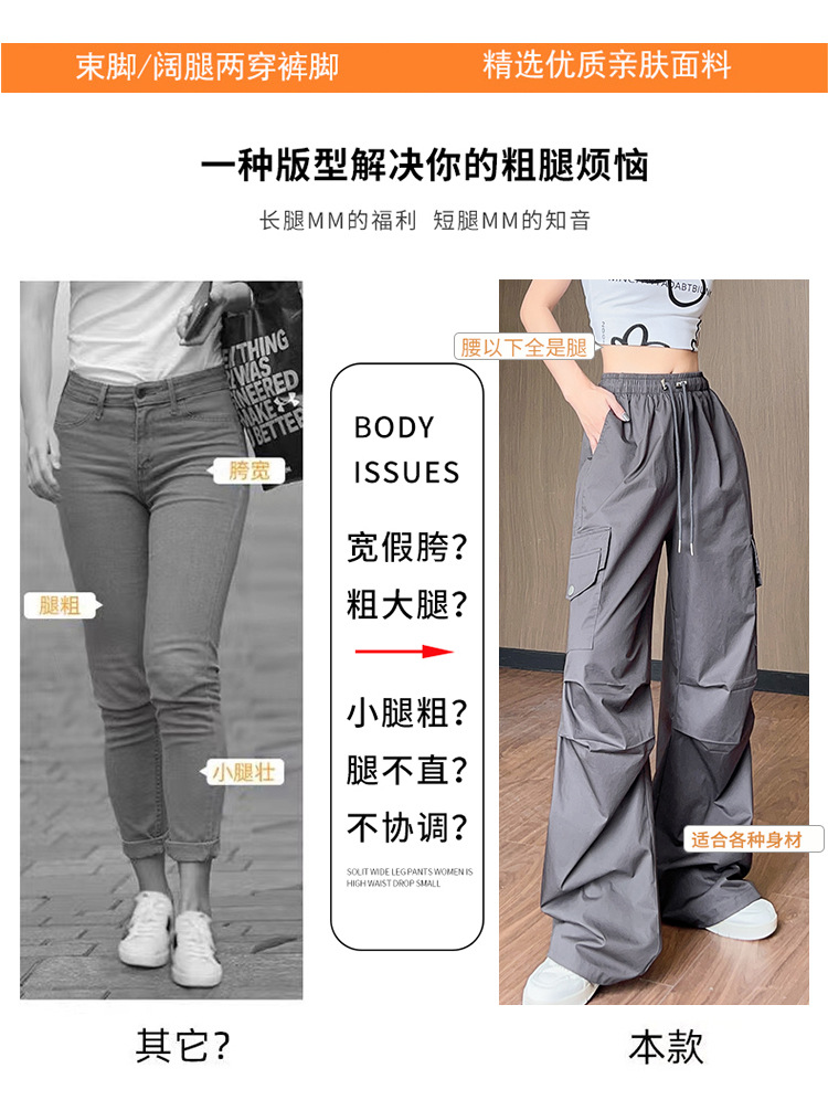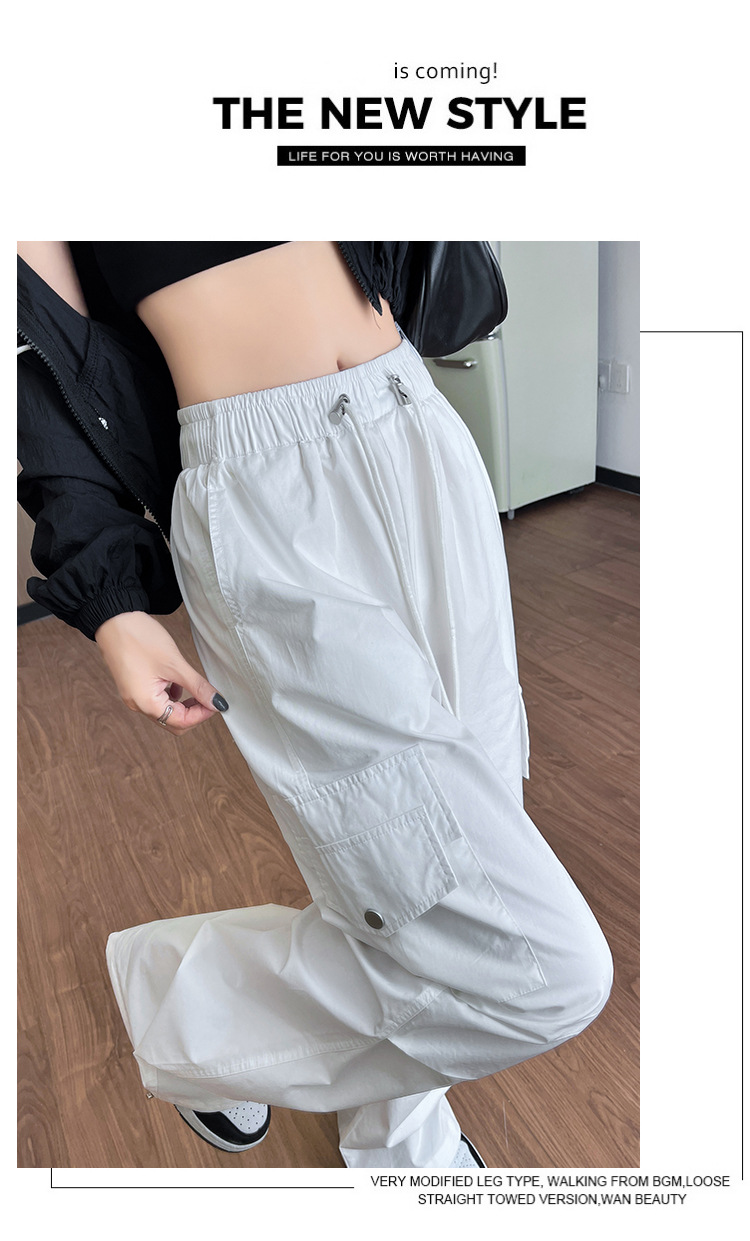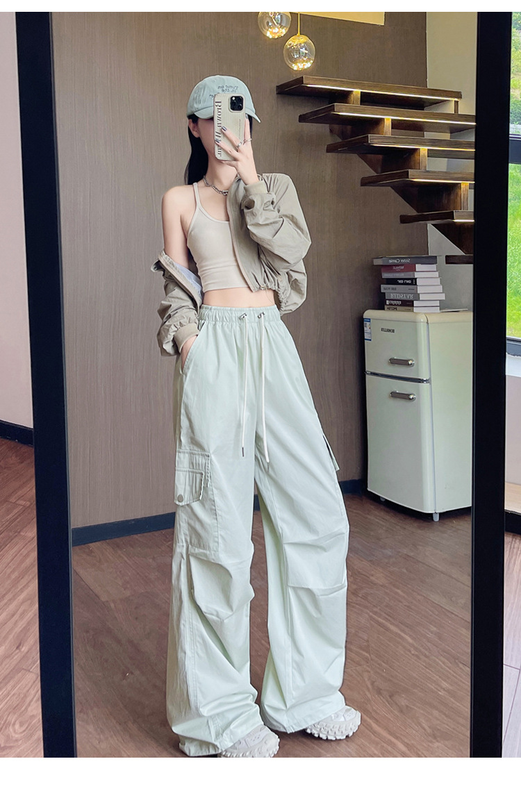 아메리칸 스타일 크록 바지 여자 여름 2025 새로운 슬리밍 높은 허리 캐주얼 스포츠 스트레이트 좁은 등반 넓은 다리 바지스토어 가기