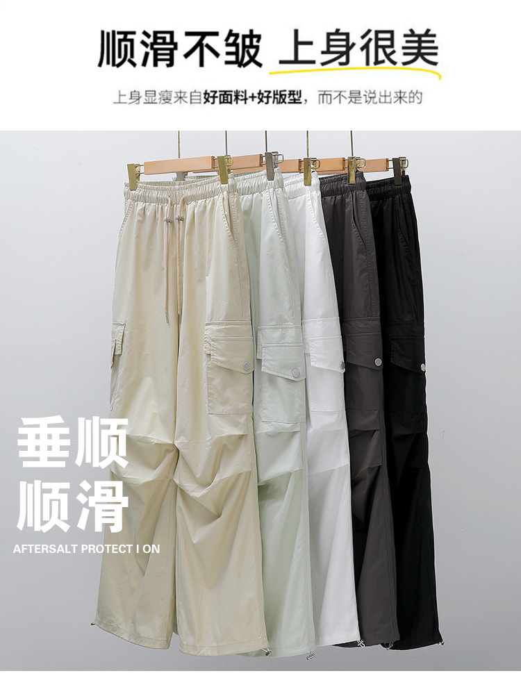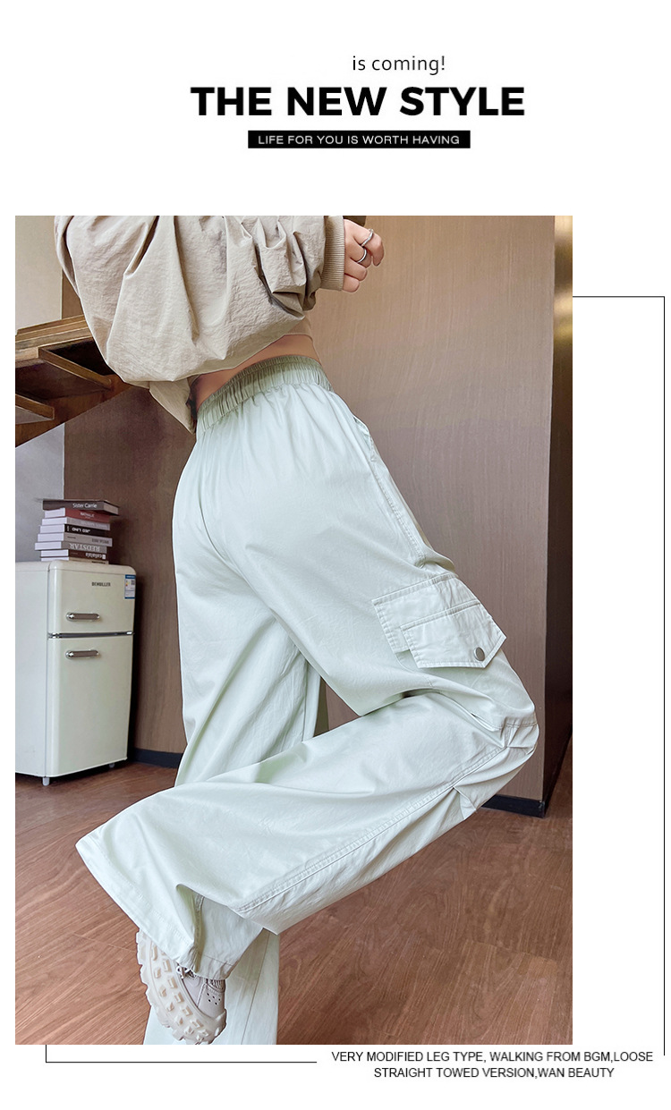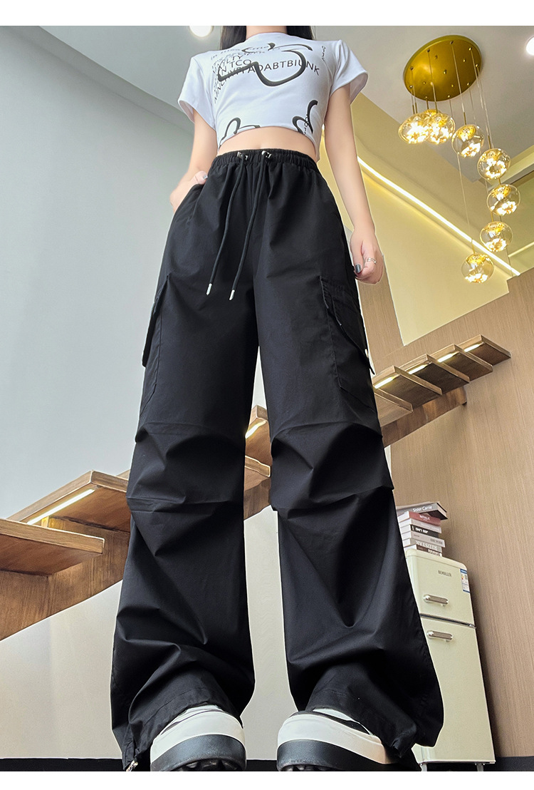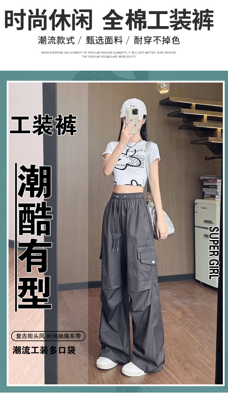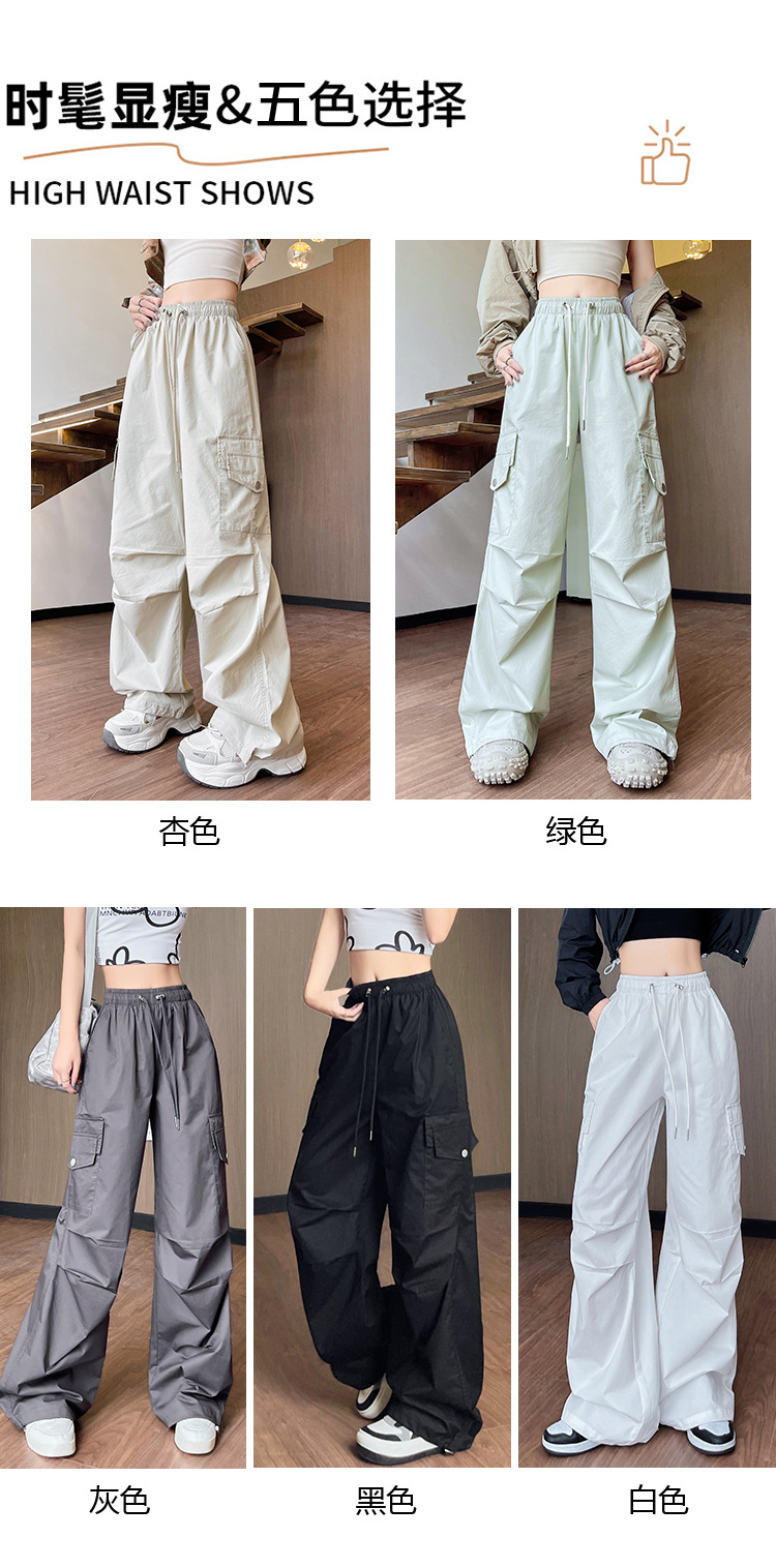 아메리칸 스타일 크록 바지 여자 여름 2025 새로운 슬리밍 높은 허리 캐주얼 스포츠 스트레이트 좁은 등반 넓은 다리 바지스토어 가기