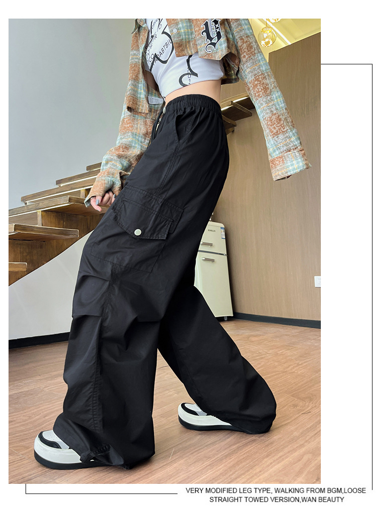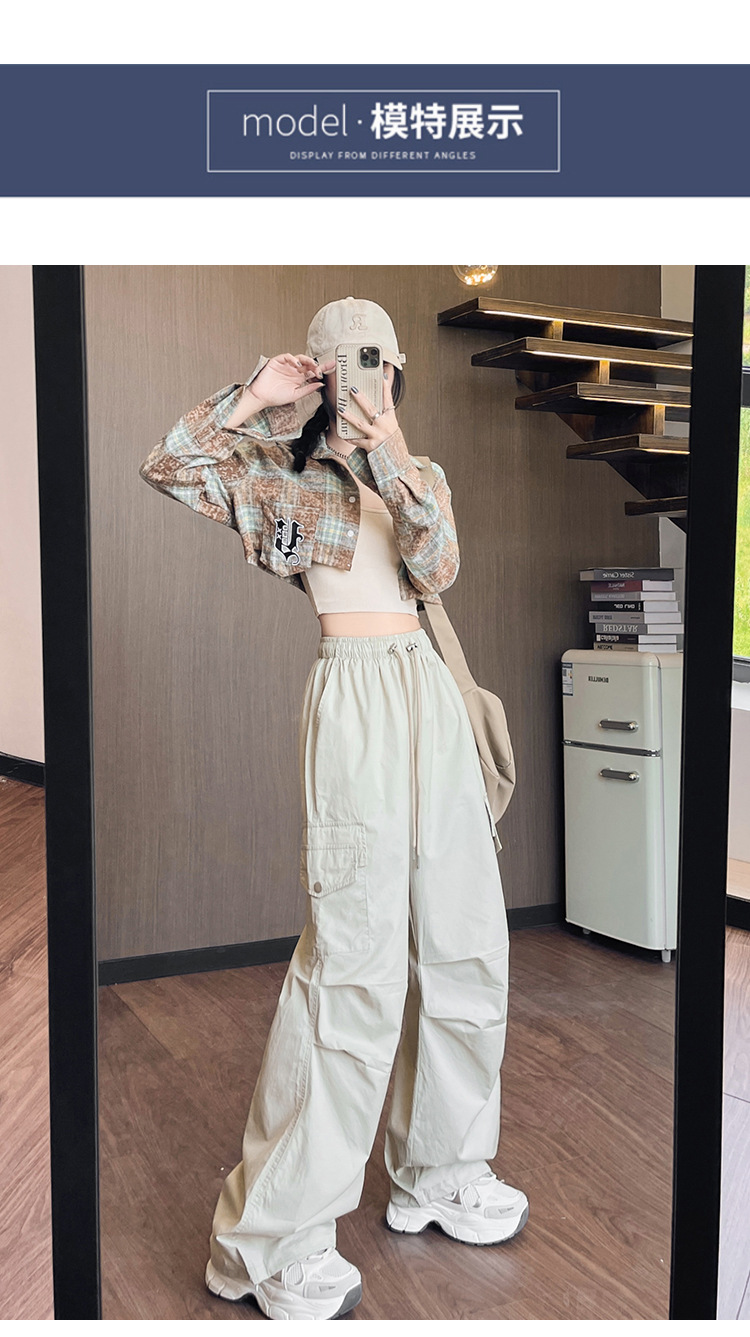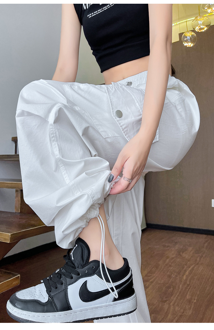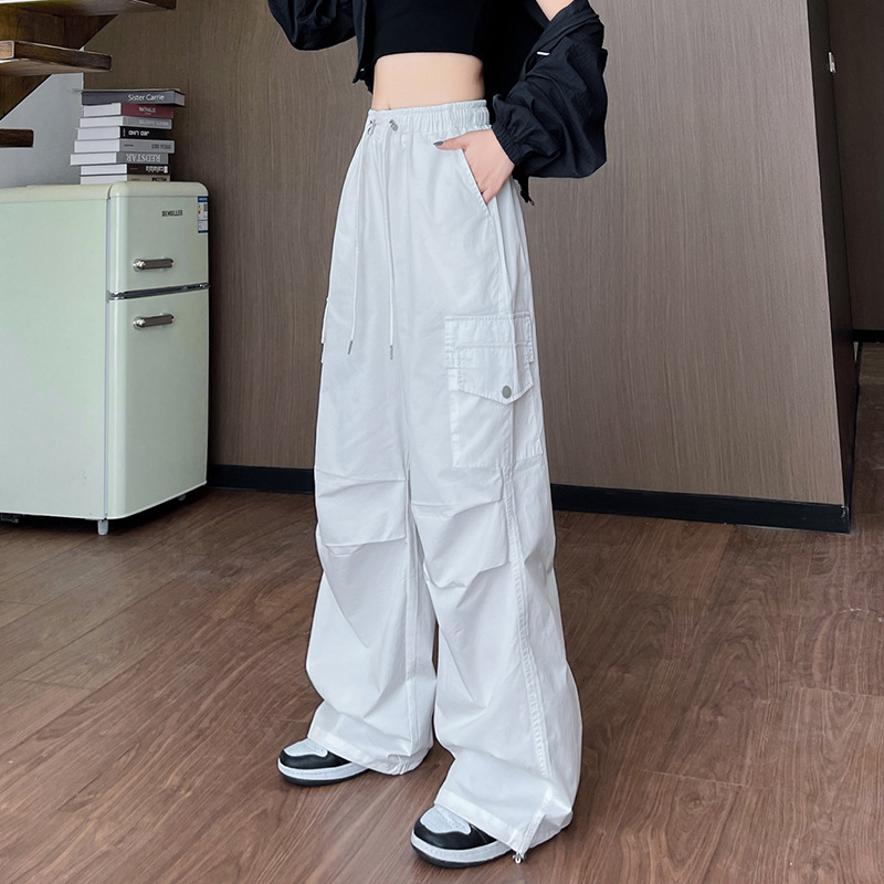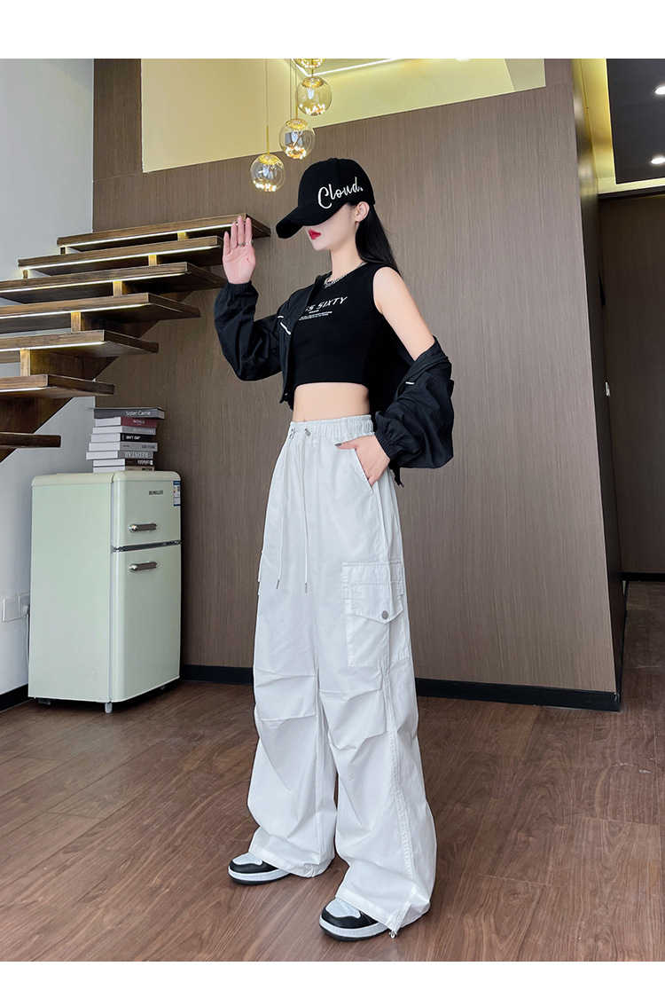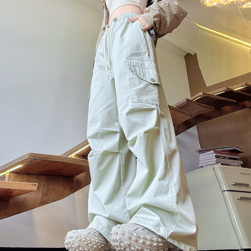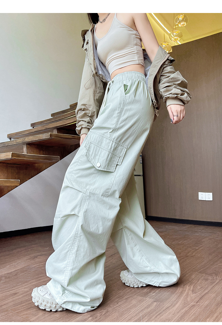 아메리칸 스타일 크록 바지 여자 여름 2025 새로운 슬리밍 높은 허리 캐주얼 스포츠 스트레이트 좁은 등반 넓은 다리 바지스토어 가기