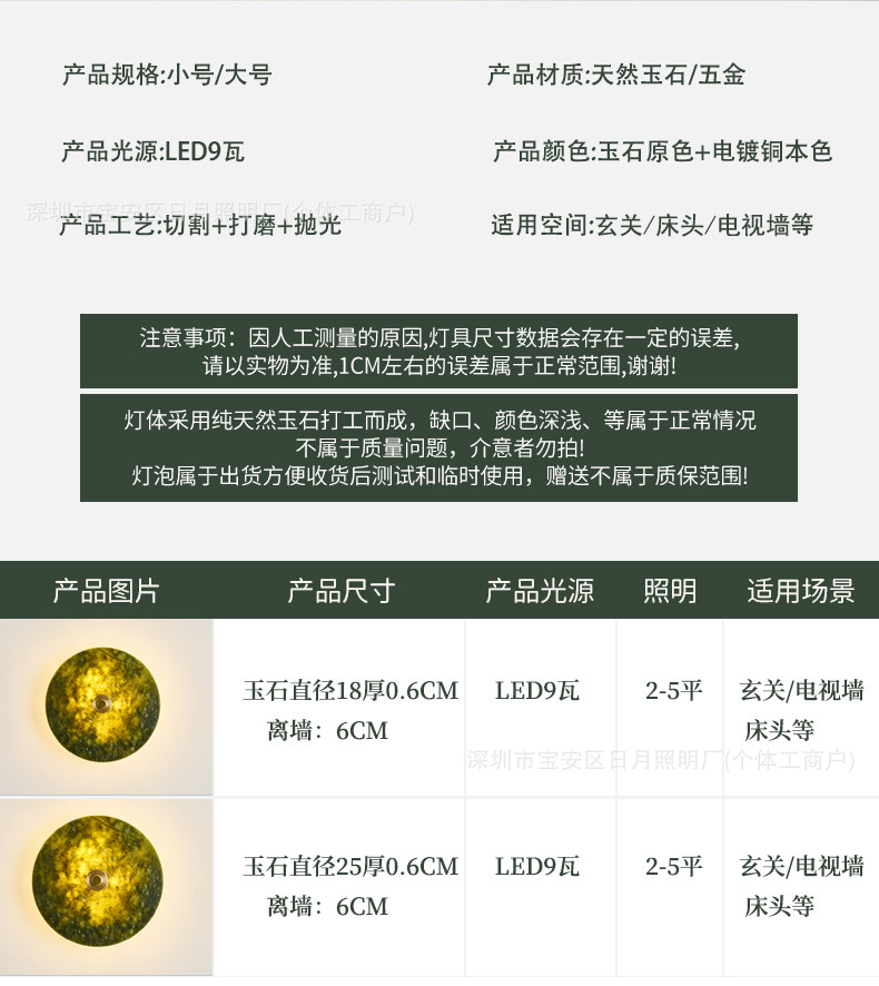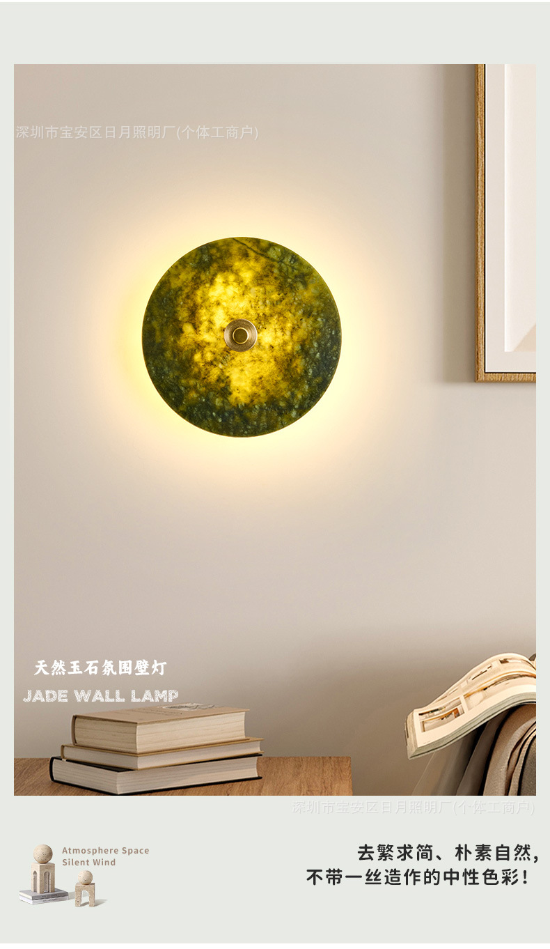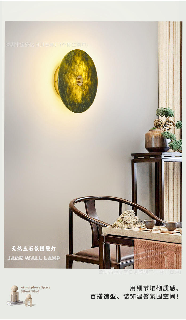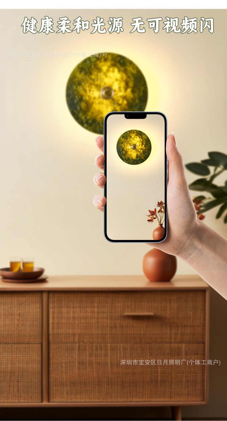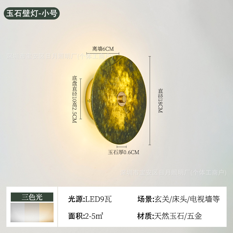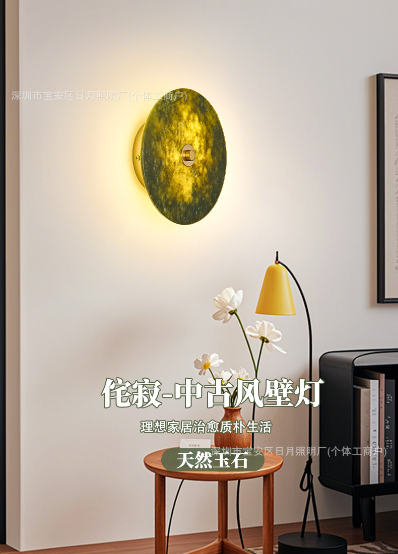 벽 램프 침실 머리맡 천연 옥 일본 복고풍 와비사비 스타일 라운드 눈 보호 B&B 벽 분위기 램프스토어 가기