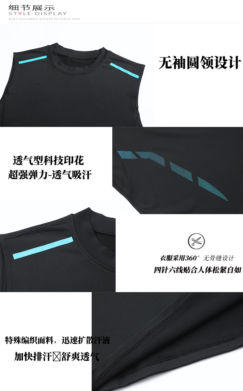 남성 스포츠 반팔 러닝 농구 트레이닝 피트니스 여름 속건성 탄성 스타킹 땀 흡수 통기성 조끼