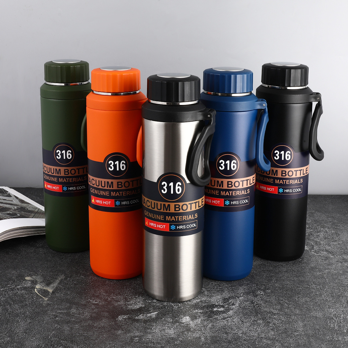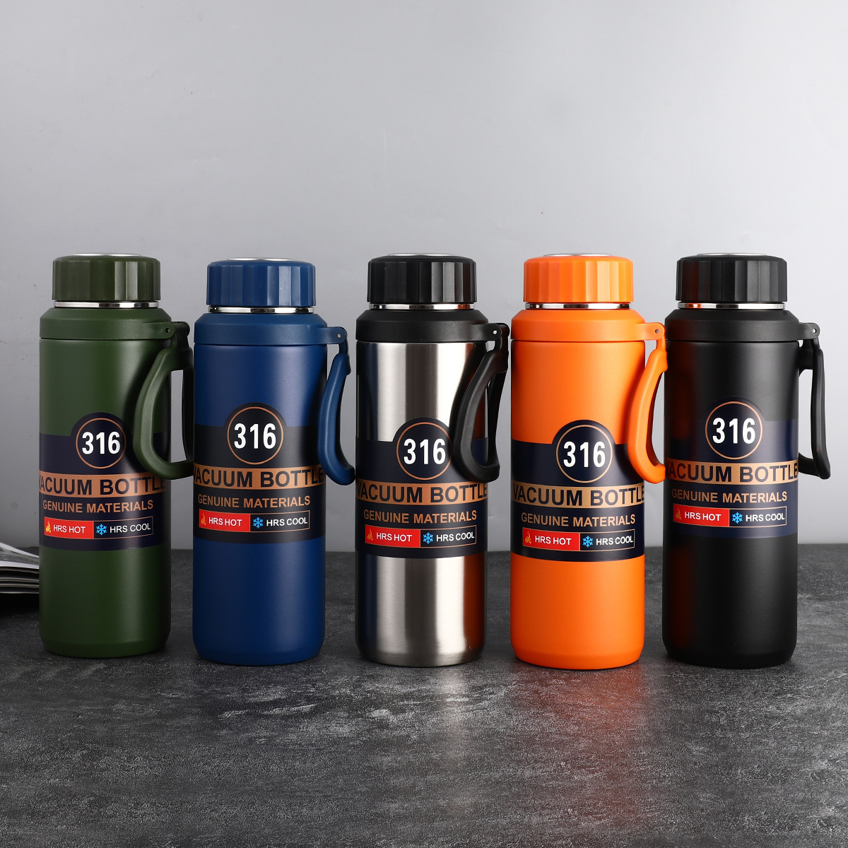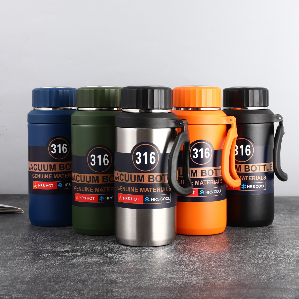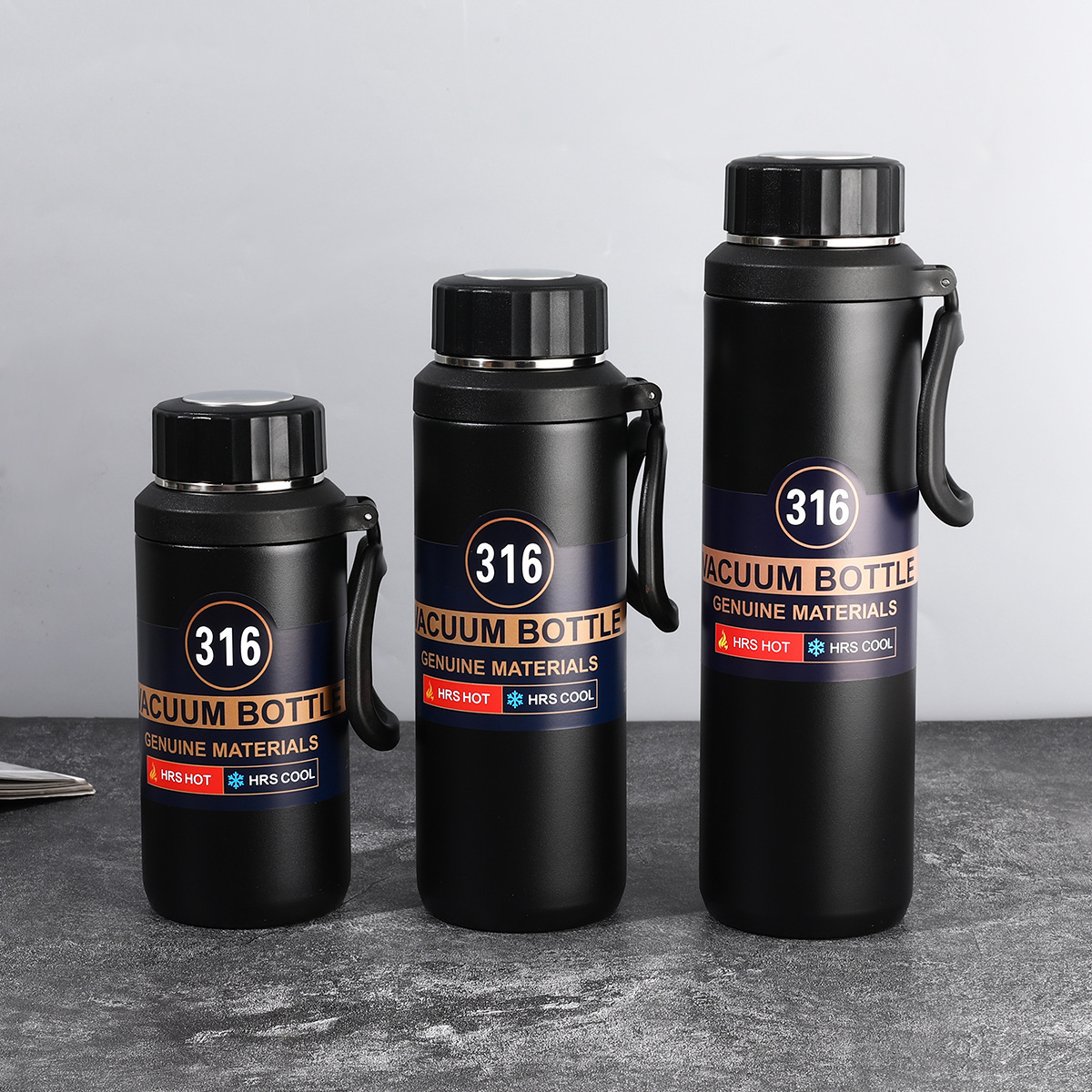 316不锈钢水杯提绳大容量旅行壶商务保温杯登山茶杯吊带壶批发