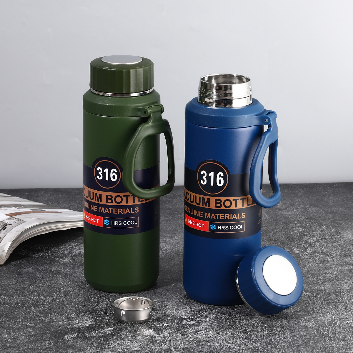 316 스테인레스 스틸 보온병 컵 대용량 차 물 분리 차 주전자 남자 야외 등산 스포츠 주전자스토어 가기