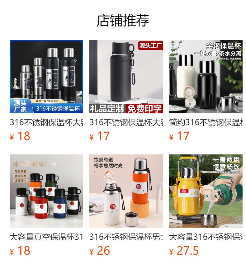 316大容量不锈钢保温杯户外运动水杯便携水壶保冷车载男女焖茶杯