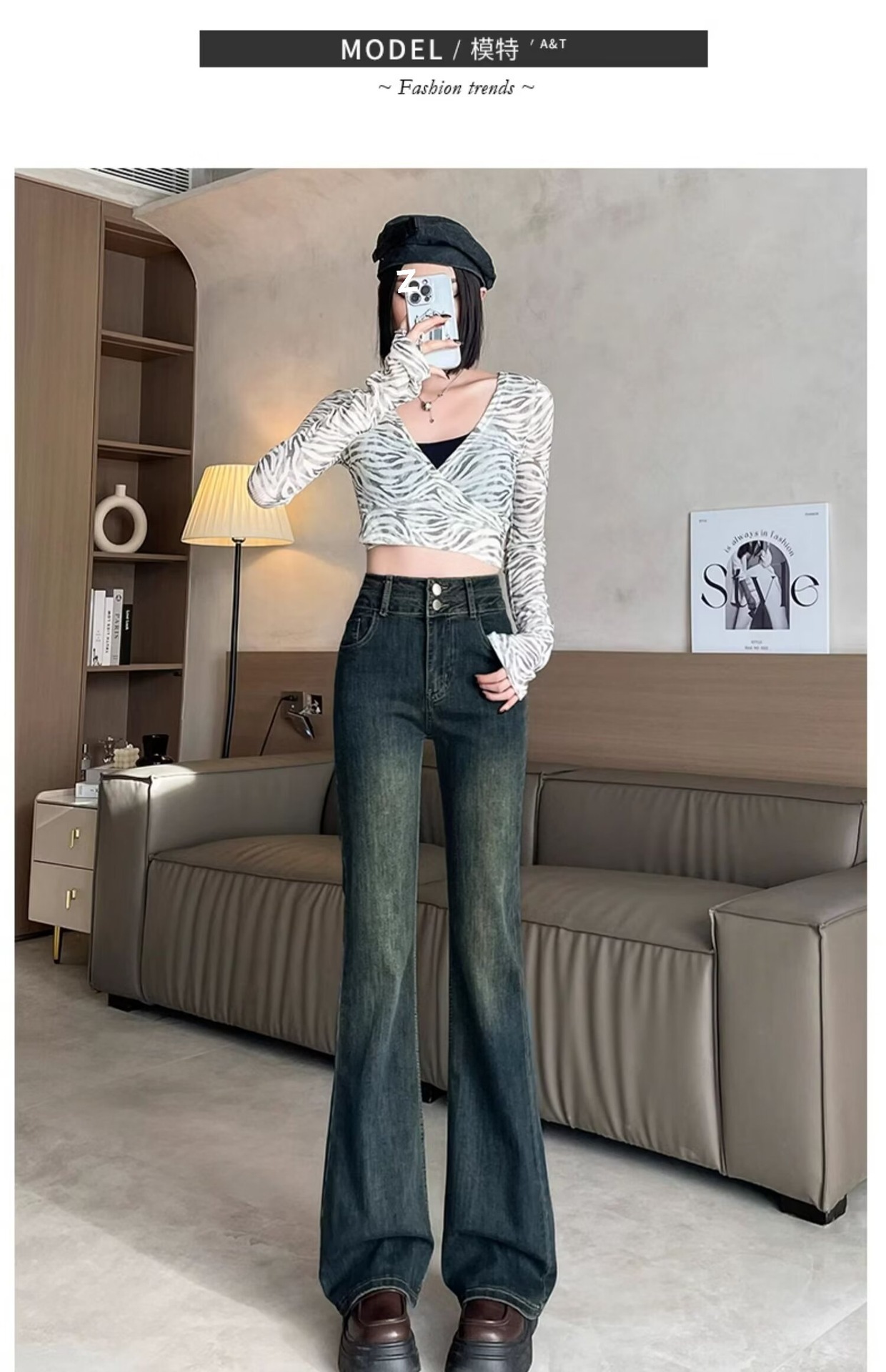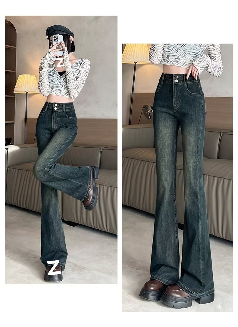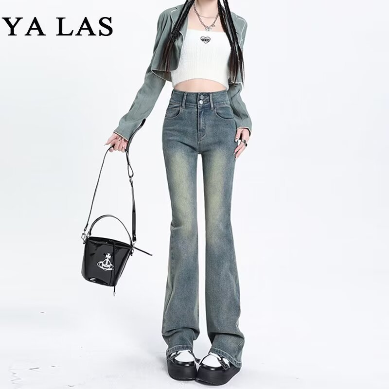 여성을 위한 광저우 여름 신상 마이크로 플레어 청바지, 패셔너블하고 다재다능한 아메리칸 레트로 하이웨이스트 슬리밍 마이크로 플레어 팬츠