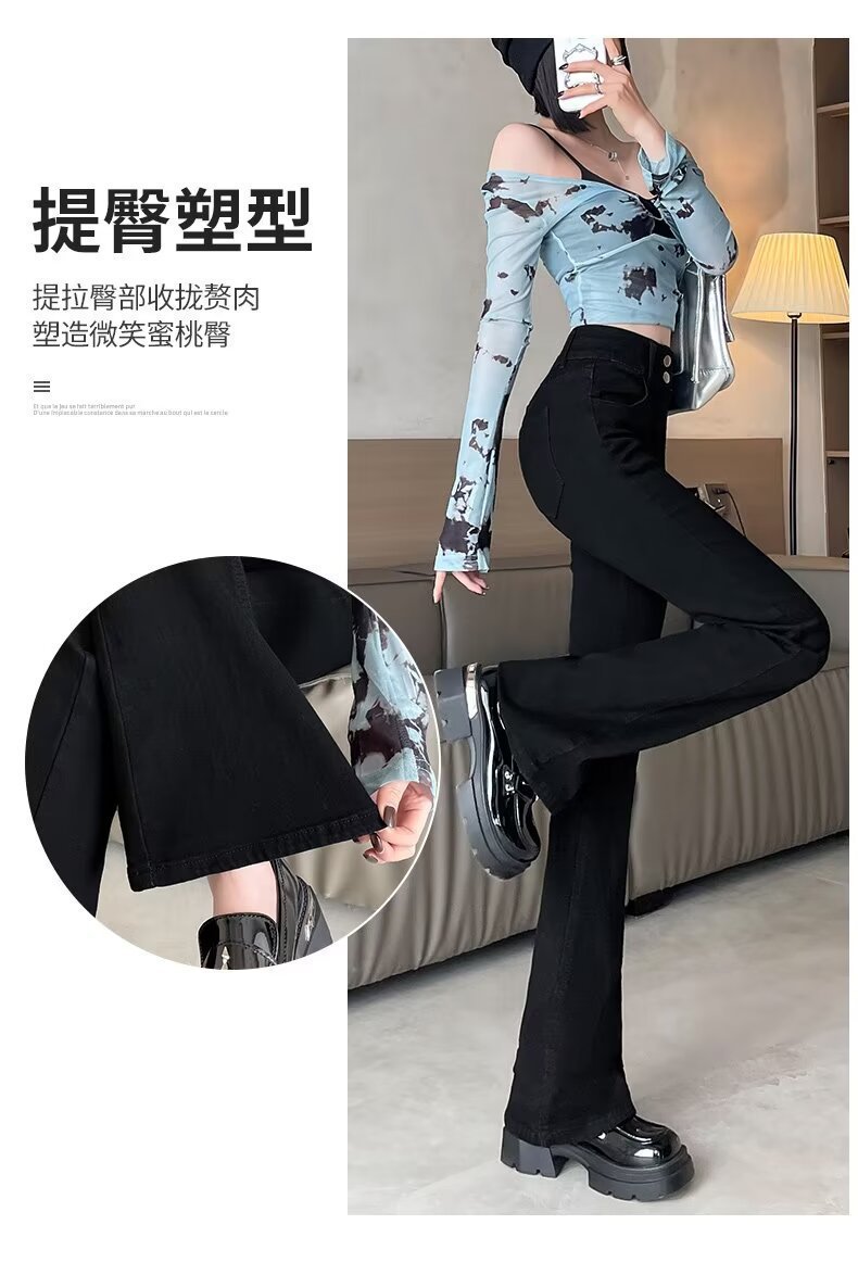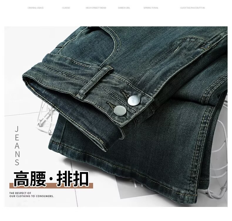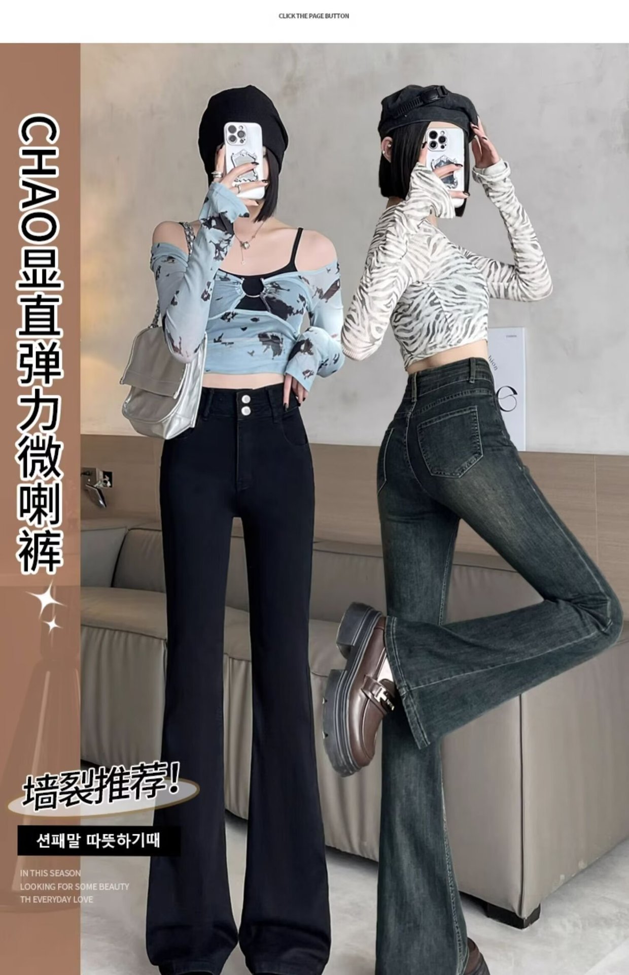 여성을 위한 광저우 여름 신상 마이크로 플레어 청바지, 패셔너블하고 다재다능한 아메리칸 레트로 하이웨이스트 슬리밍 마이크로 플레어 팬츠스토어 가기