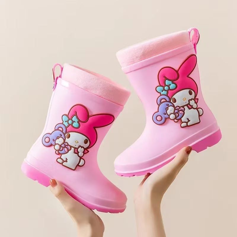 산리오 어린이 장화 소녀 워터 부츠 미끄럼 방지 부드러운 바닥 장화 소녀 멜로디 유치원 어린이 워터 슈즈