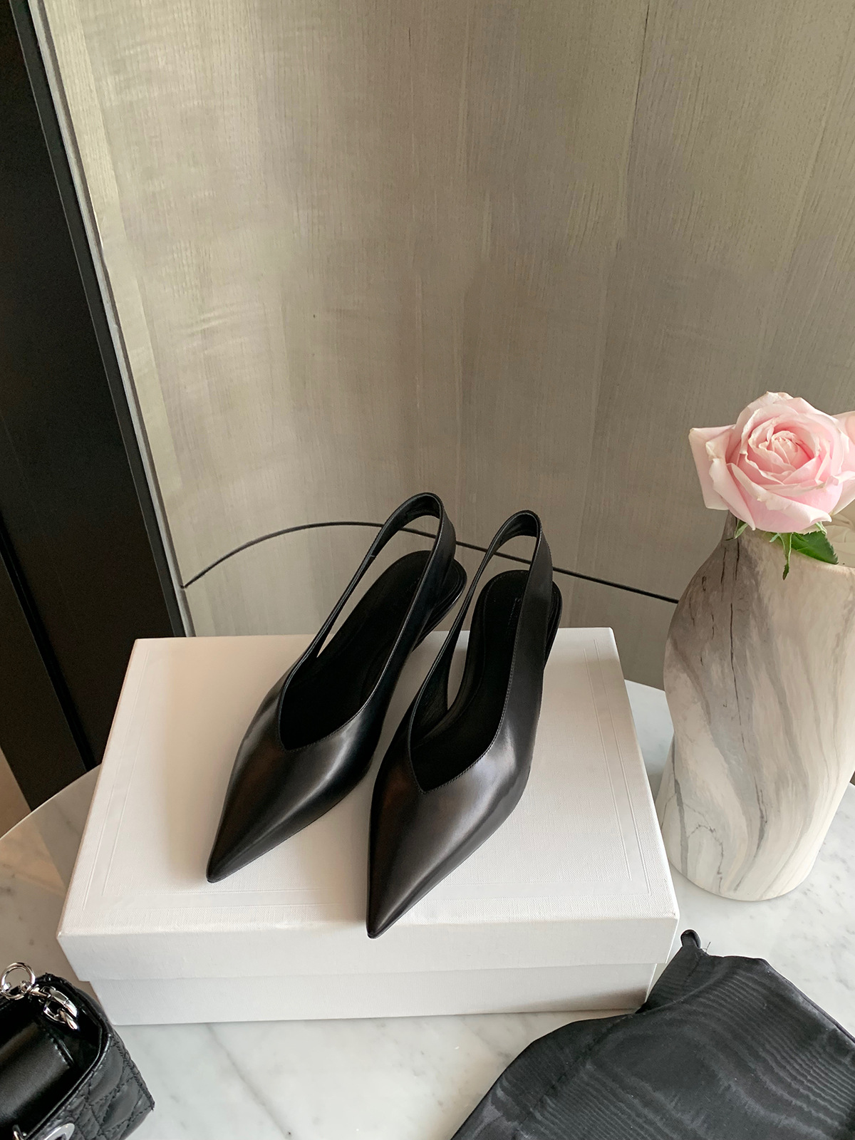 【한정판 블랙 라벨】포도색 엄마님과 같은 스타일, 바로 배송 가능~ 우아한 뾰족코, 다용도, 얕은 굽, 송아지 가죽, 뒷굽 없는 여성용 슈즈