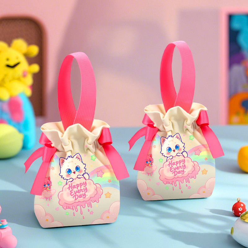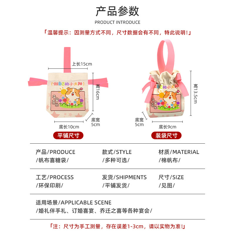 생일 캔버스 가방, 기념품 가방, 만월 선물 가방, 유치원 졸업 선물 가방, 손잡이가 달린 조임끈 가방