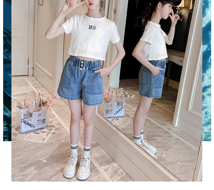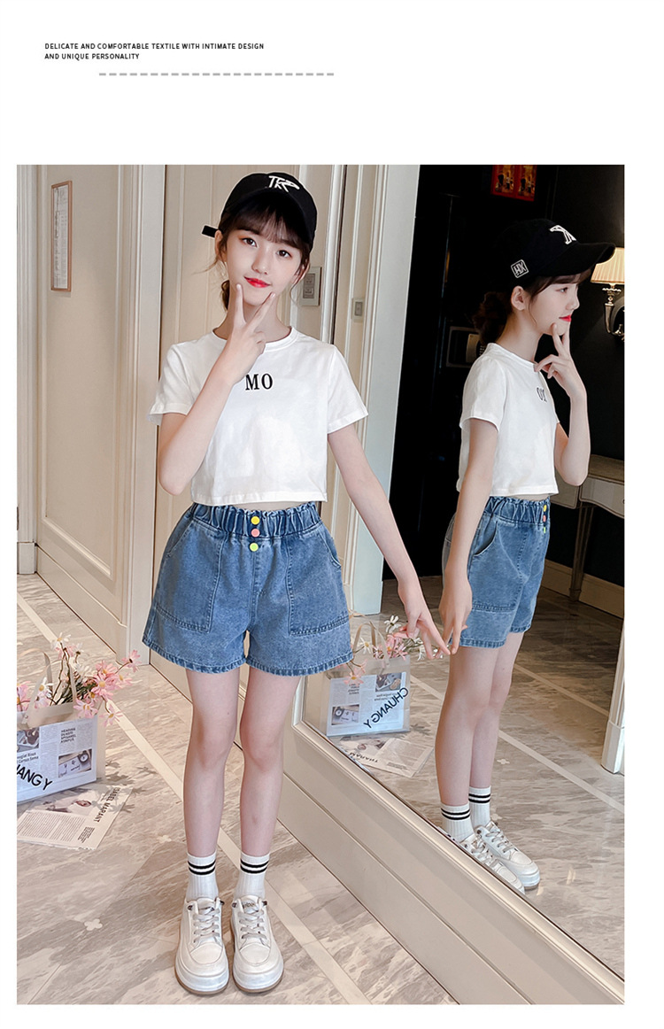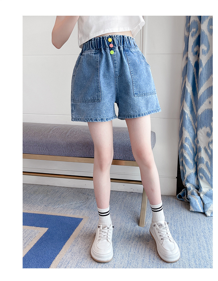 여아 데님 반바지 여름 옷 한국 스타일 2025 새로운 여름 얇은 바지 어린이 핫 팬츠 유행