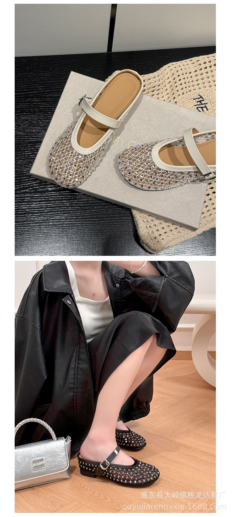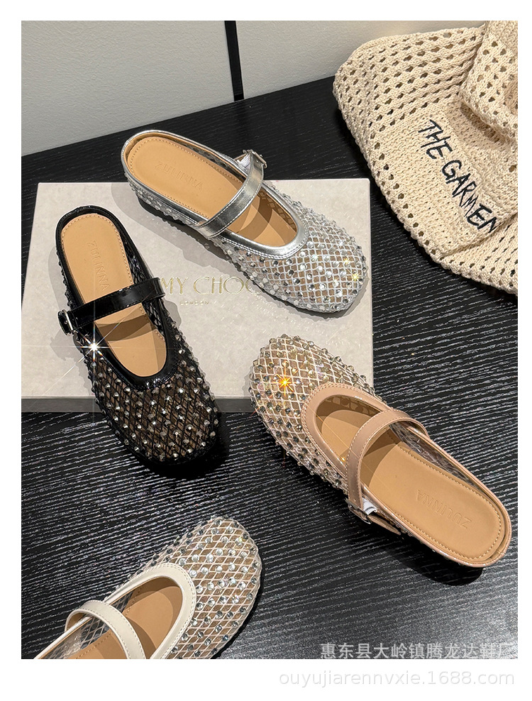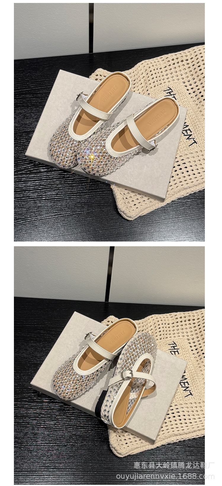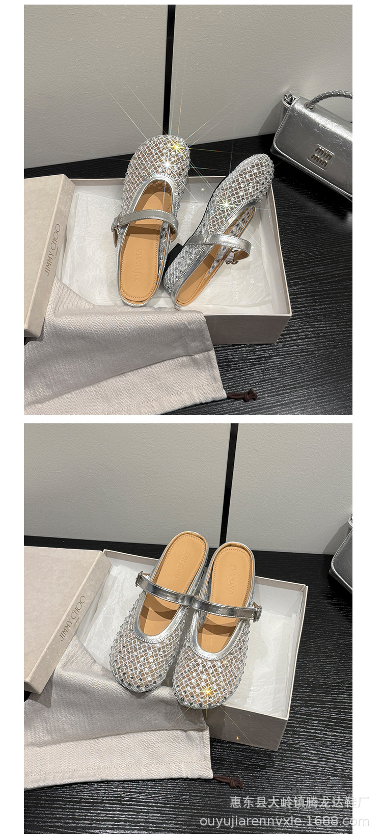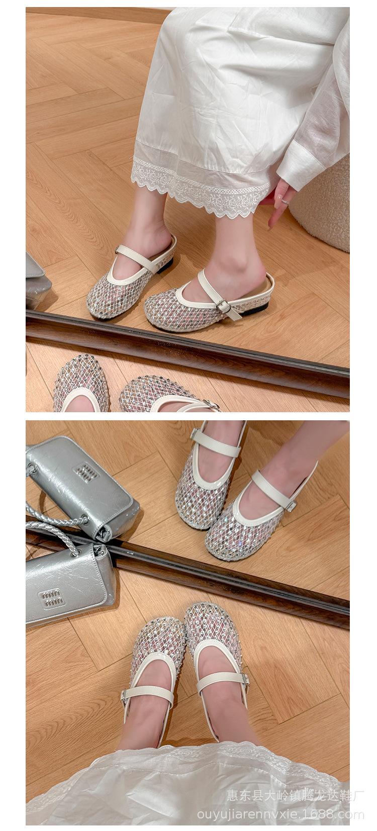 sheii Su Yinyin ~ 라운드 토 메쉬 여름 신상 반짝이는 다이아몬드 메쉬 통기성 내부 키높이 여성용 반슬리퍼스토어 가기