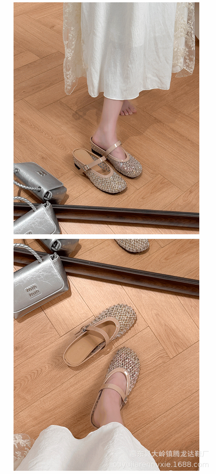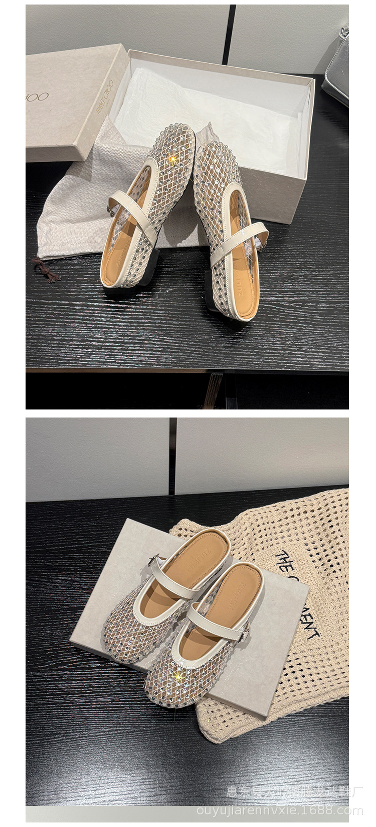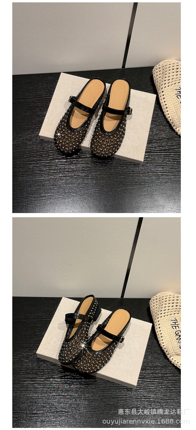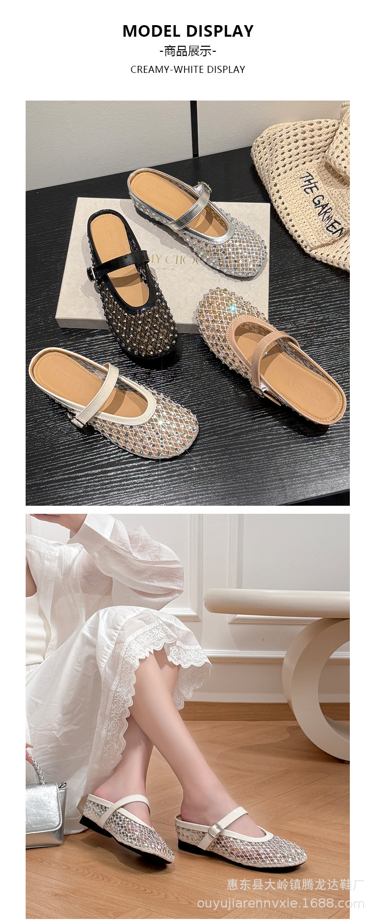 sheii Su Yinyin ~ 라운드 토 메쉬 여름 신상 반짝이는 다이아몬드 메쉬 통기성 내부 키높이 여성용 반슬리퍼스토어 가기