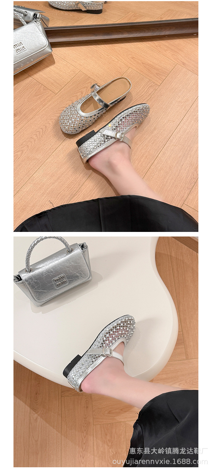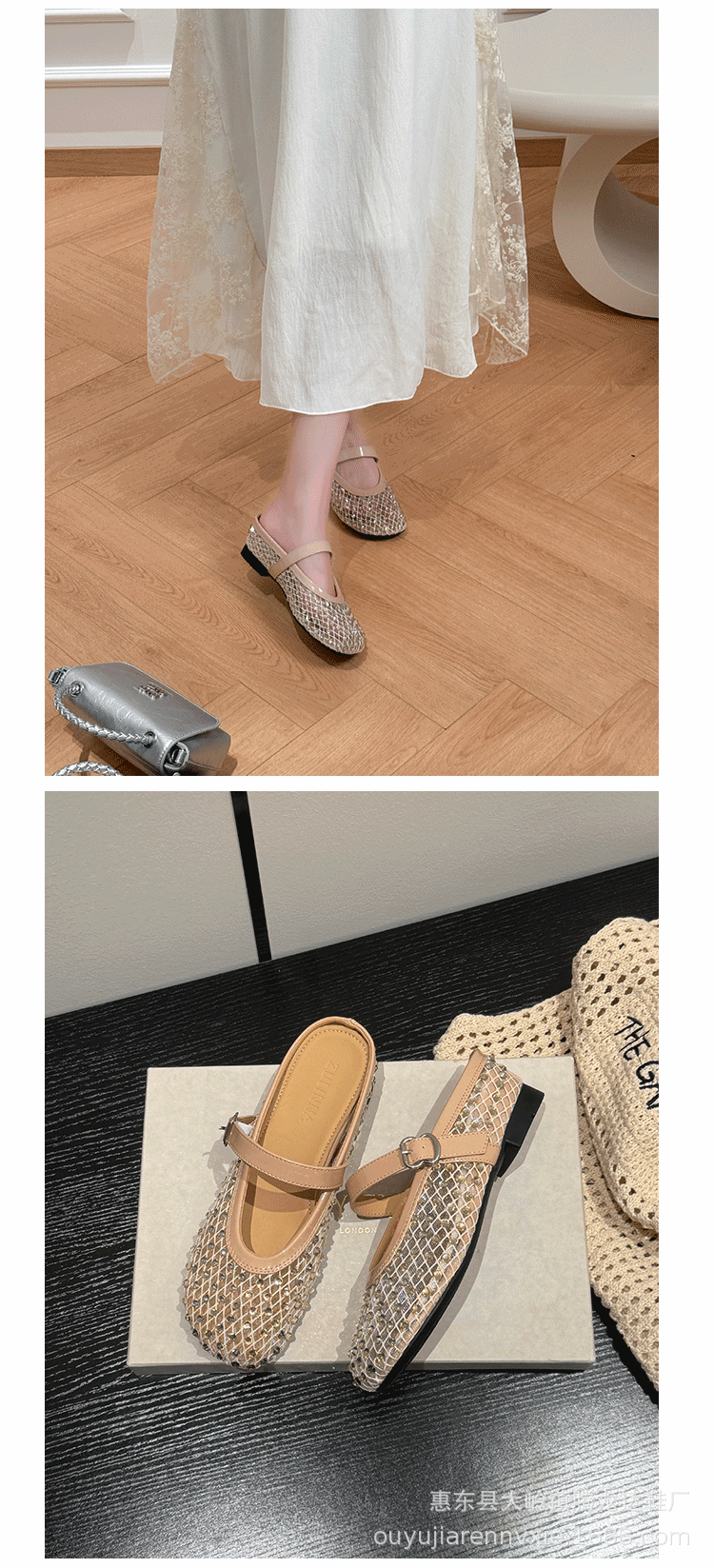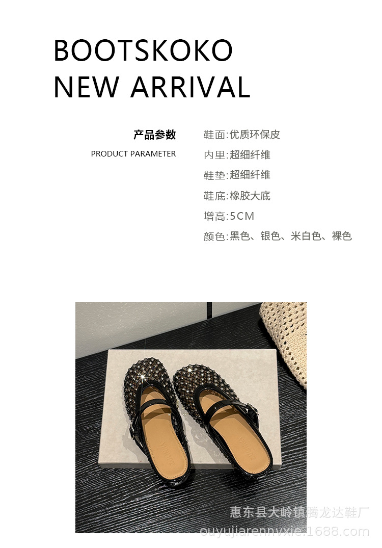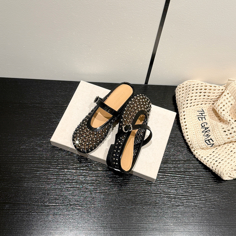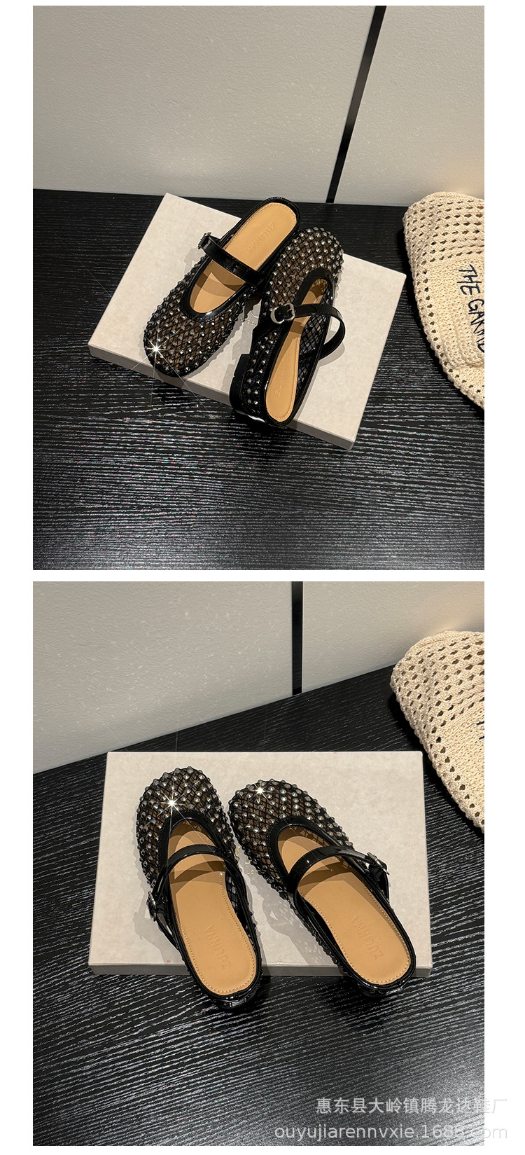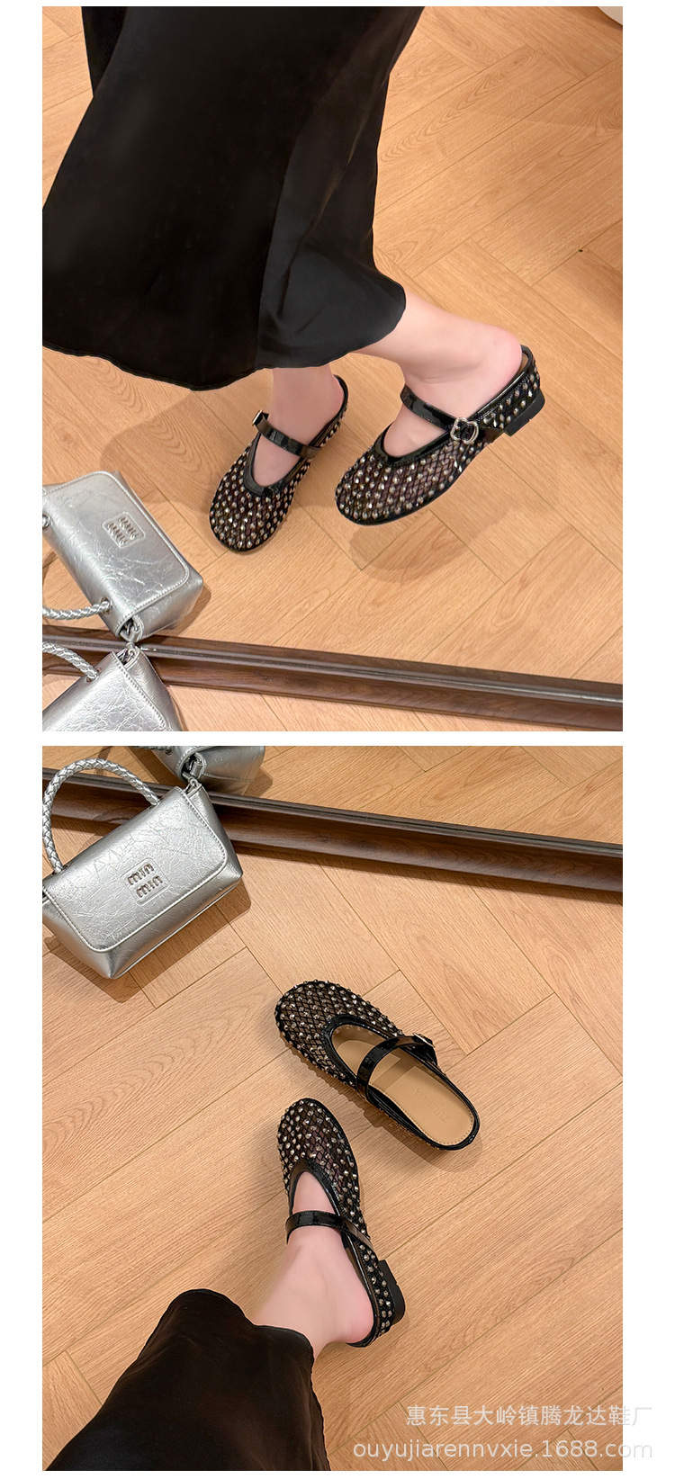 sheii Su Yinyin ~ 라운드 토 메쉬 여름 신상 반짝이는 다이아몬드 메쉬 통기성 내부 키높이 여성용 반슬리퍼스토어 가기