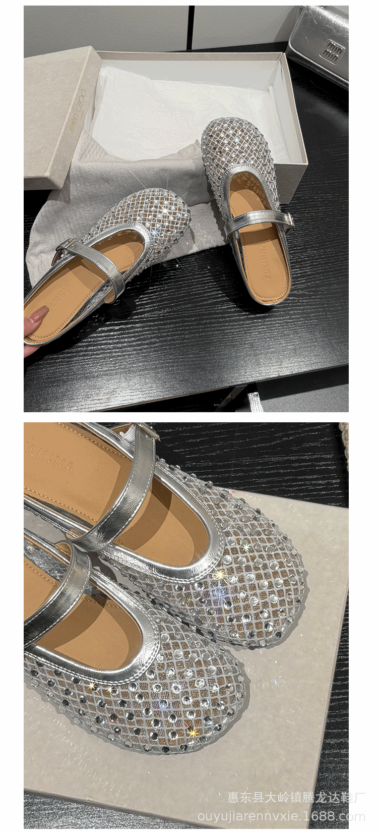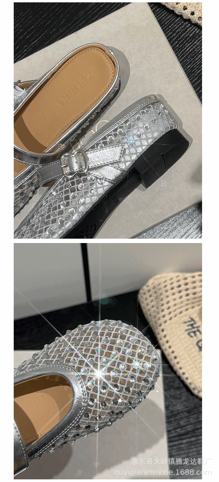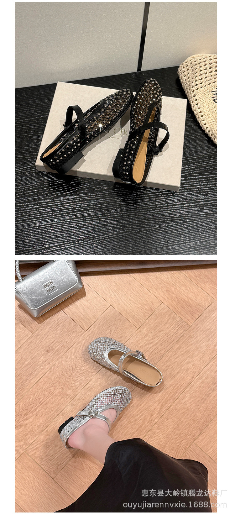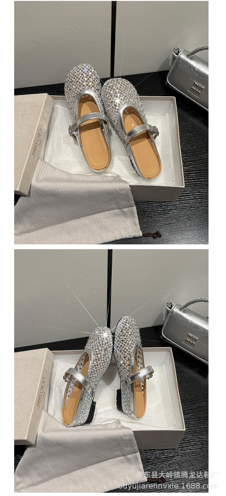 sheii Su Yinyin ~ 라운드 토 메쉬 여름 신상 반짝이는 다이아몬드 메쉬 통기성 내부 키높이 여성용 반슬리퍼스토어 가기