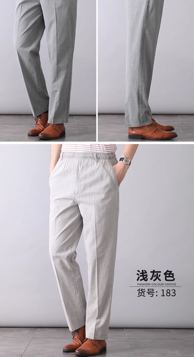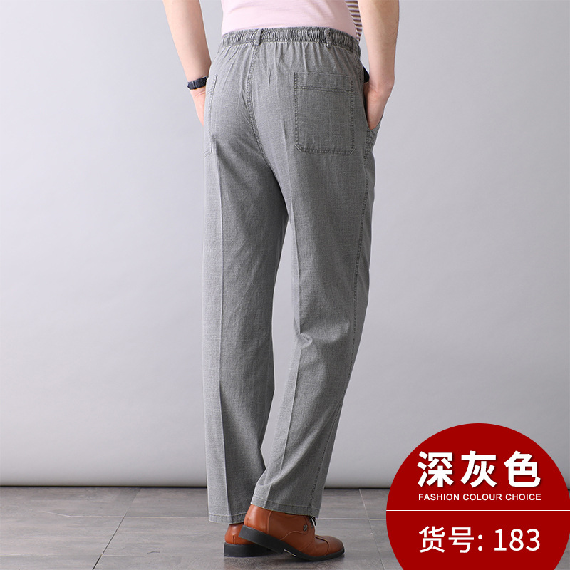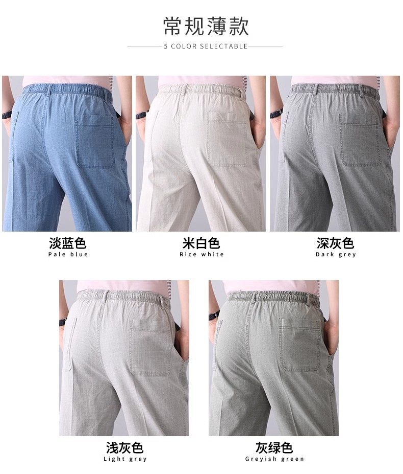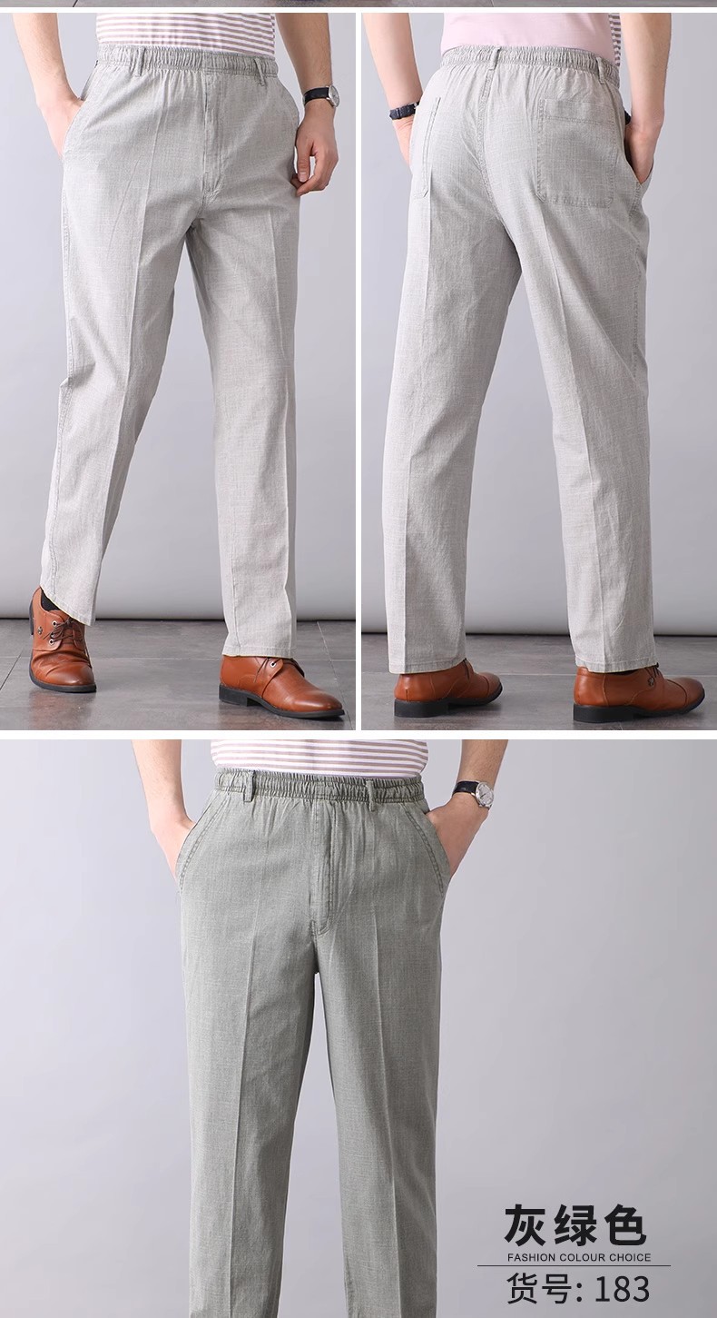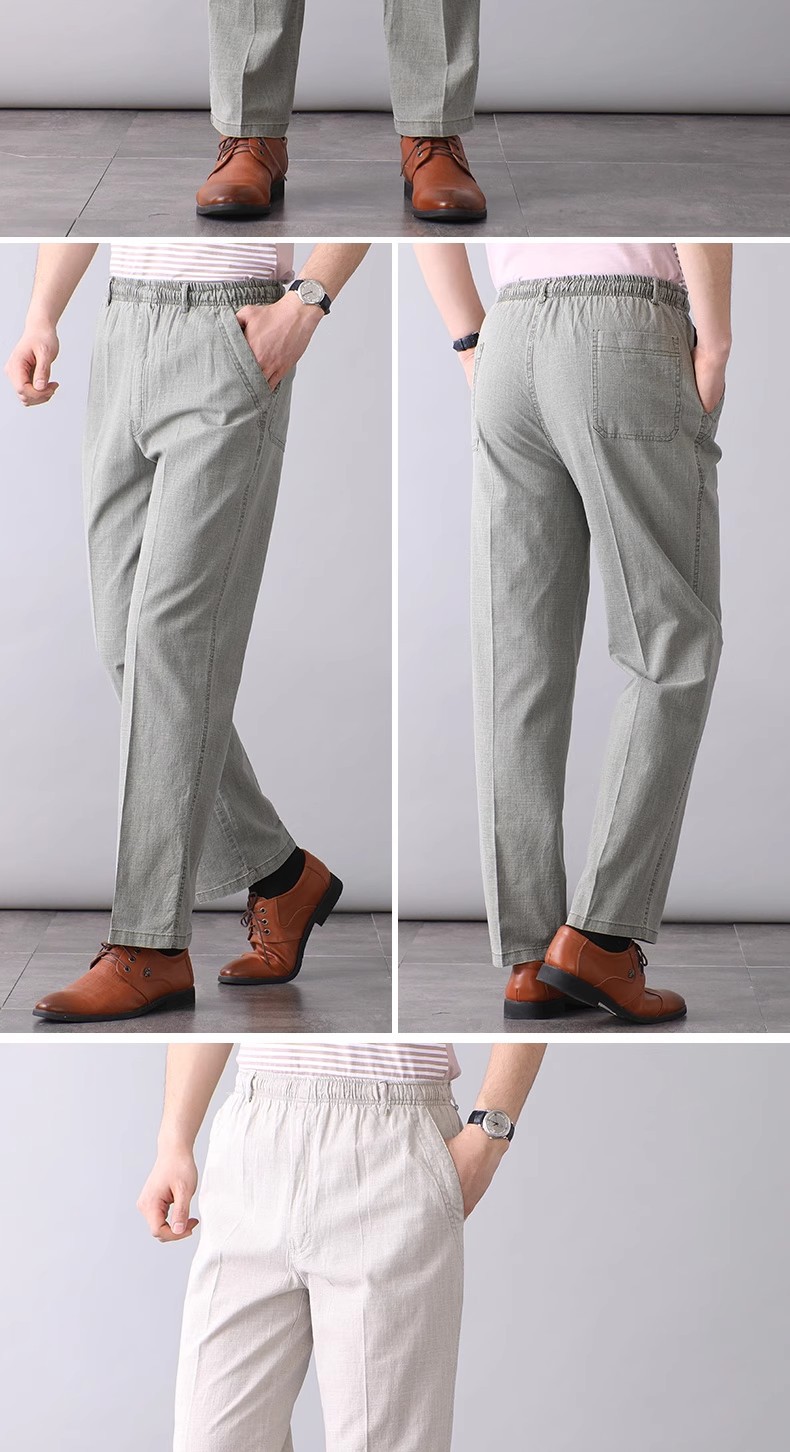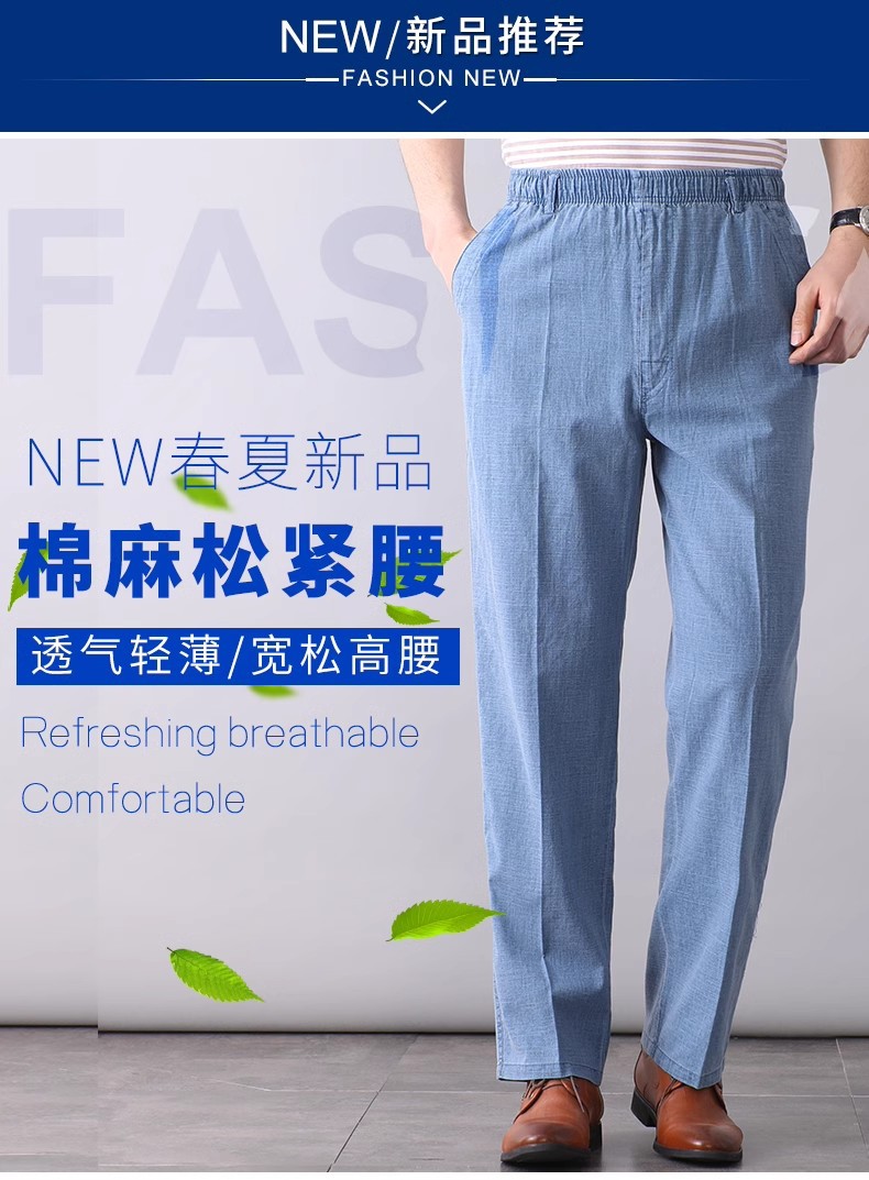 중년 및 노인 남성 여름 얇은 면 및 린넨 바지 남성 봄 아빠 착용 느슨한 하이 웨이스트 린넨 남성 바지스토어 가기