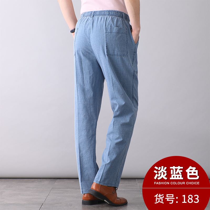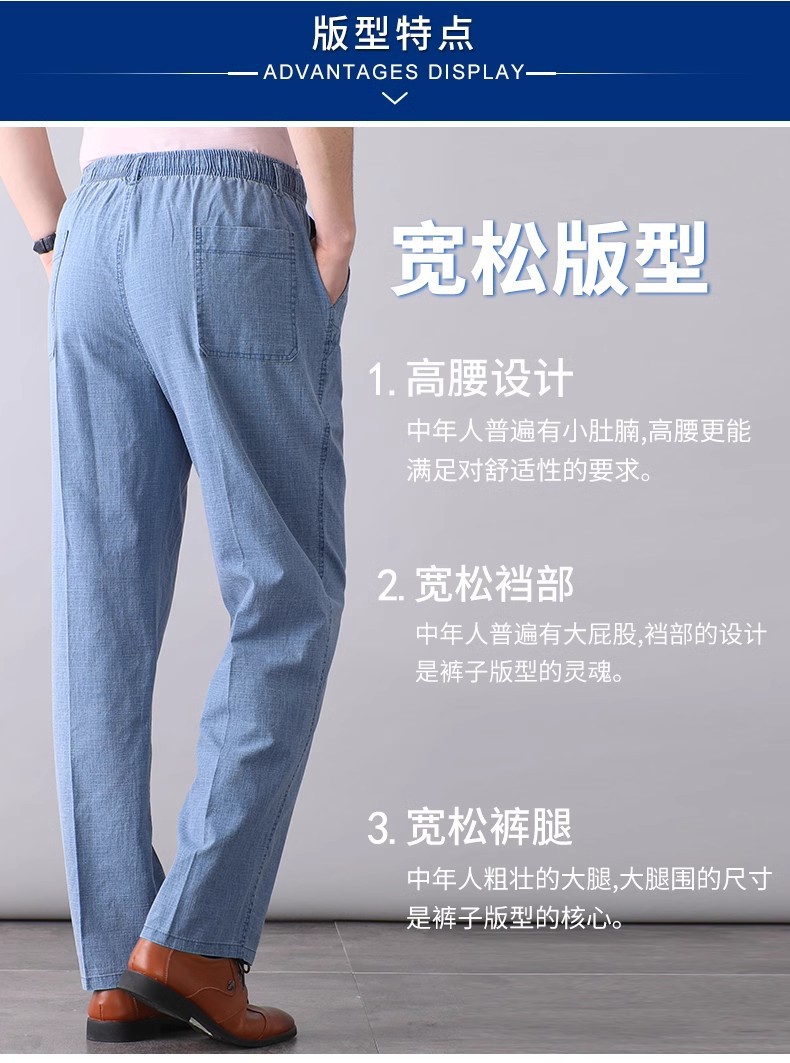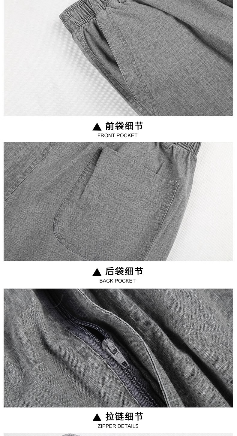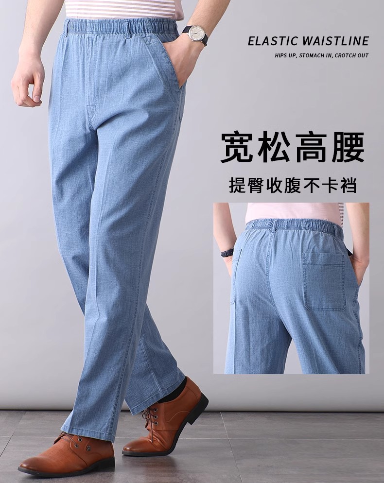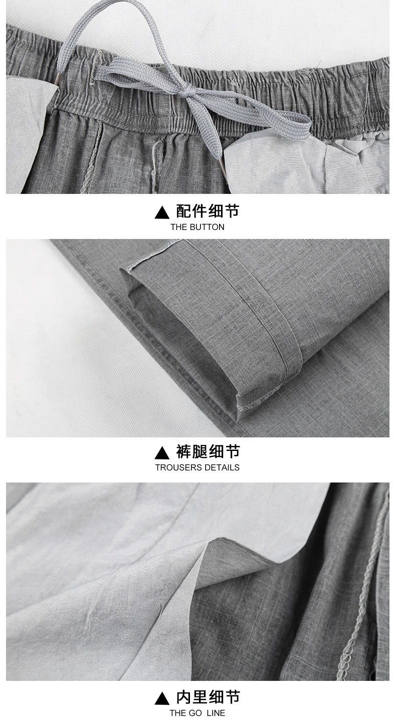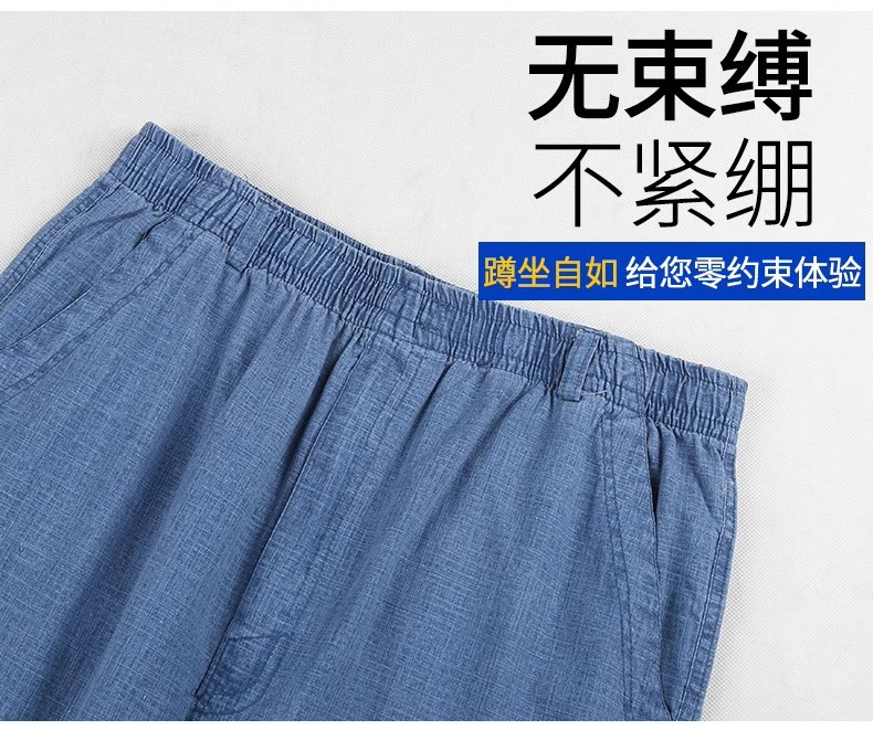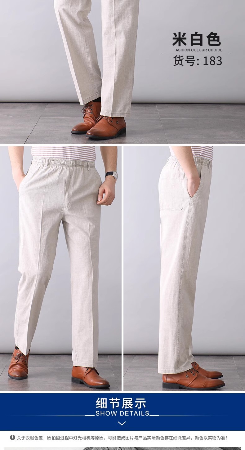 중년 및 노인 남성 여름 얇은 면 및 린넨 바지 남성 봄 아빠 착용 느슨한 하이 웨이스트 린넨 남성 바지스토어 가기
