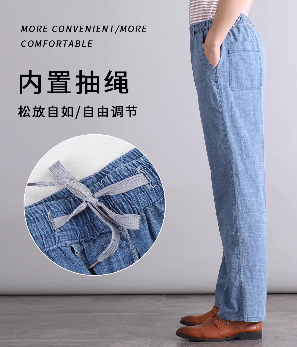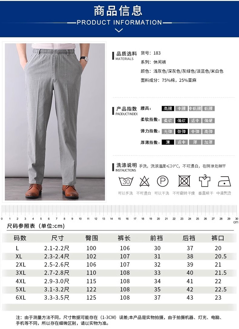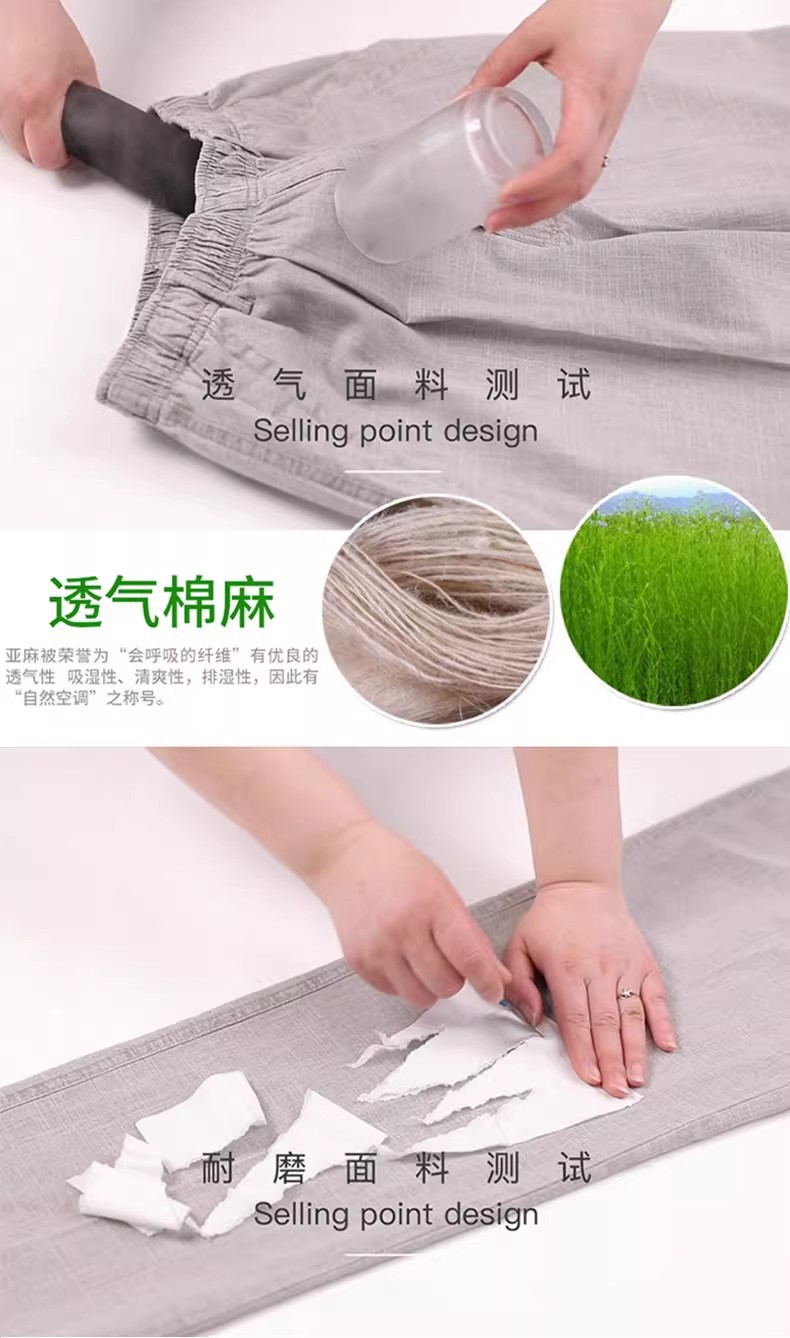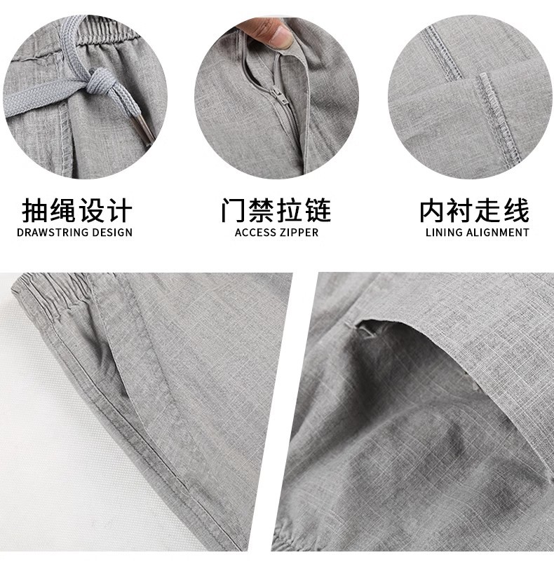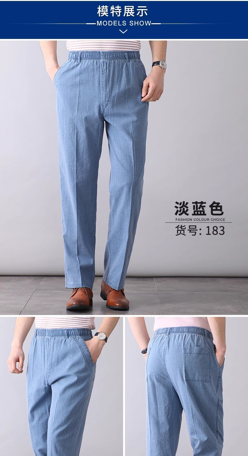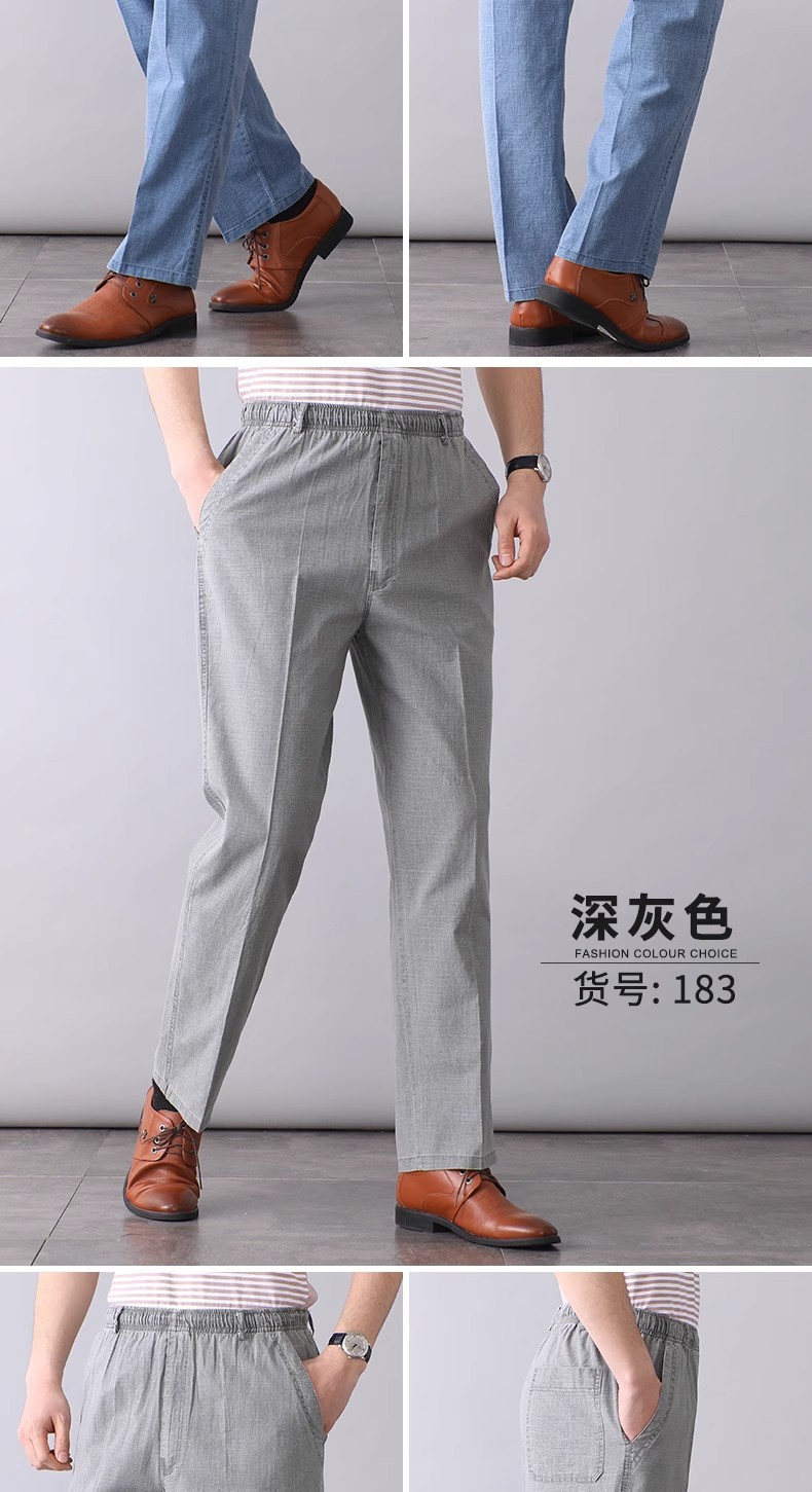 중년 및 노인 남성 여름 얇은 면 및 린넨 바지 남성 봄 아빠 착용 느슨한 하이 웨이스트 린넨 남성 바지스토어 가기