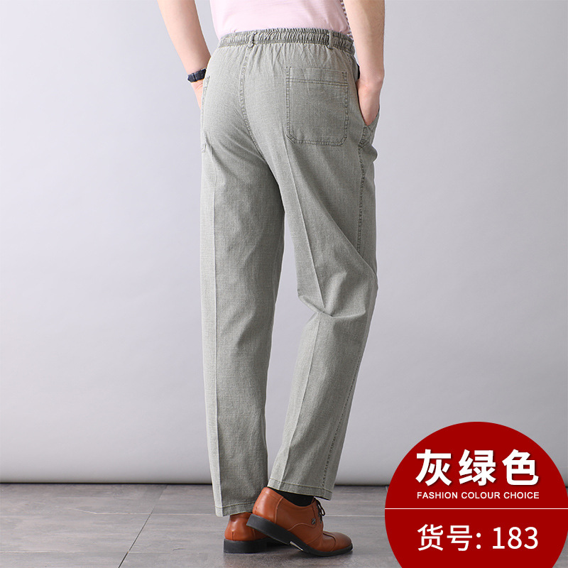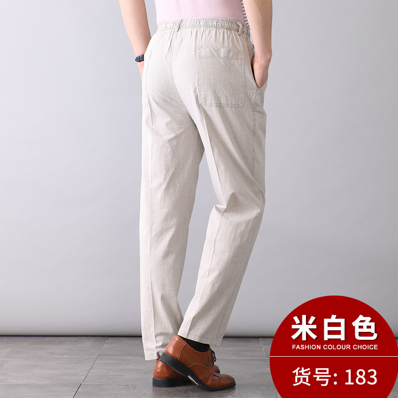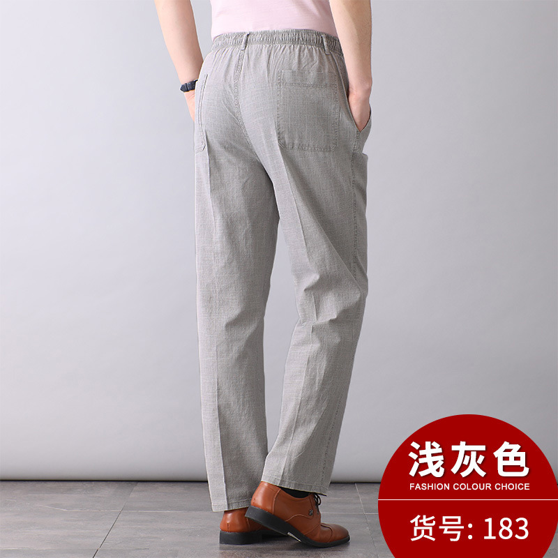 중년 및 노인 남성 여름 얇은 면 및 린넨 바지 남성 봄 아빠 착용 느슨한 하이 웨이스트 린넨 남성 바지
