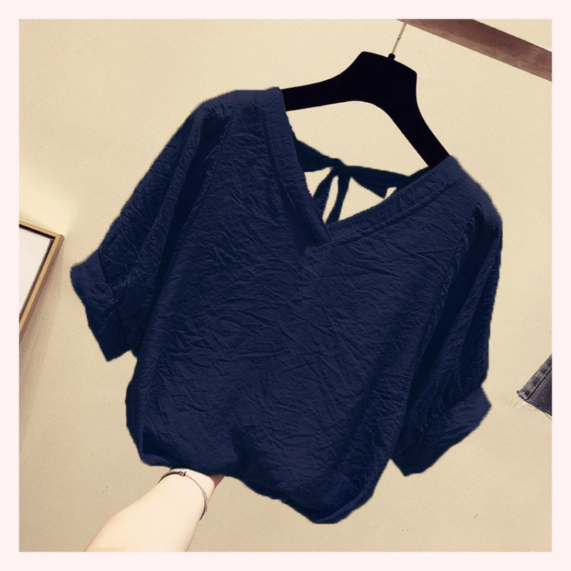 여성용 칼라 백리스 쉬폰 셔츠 반팔 2025 새로운 한국 스타일 요정 달콤한 루즈 슬리밍 배 커버 탑