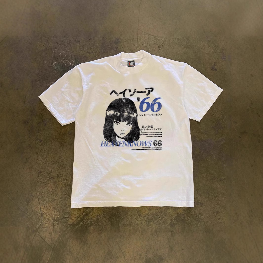 무거운 면화 250 그램! 미국 오버 사이즈 만화 시부야 소녀 프린트 커플 느슨한 반팔 티셔츠 남성용스토어 가기