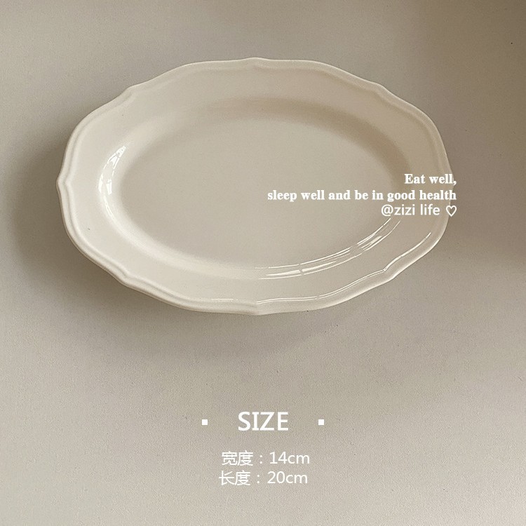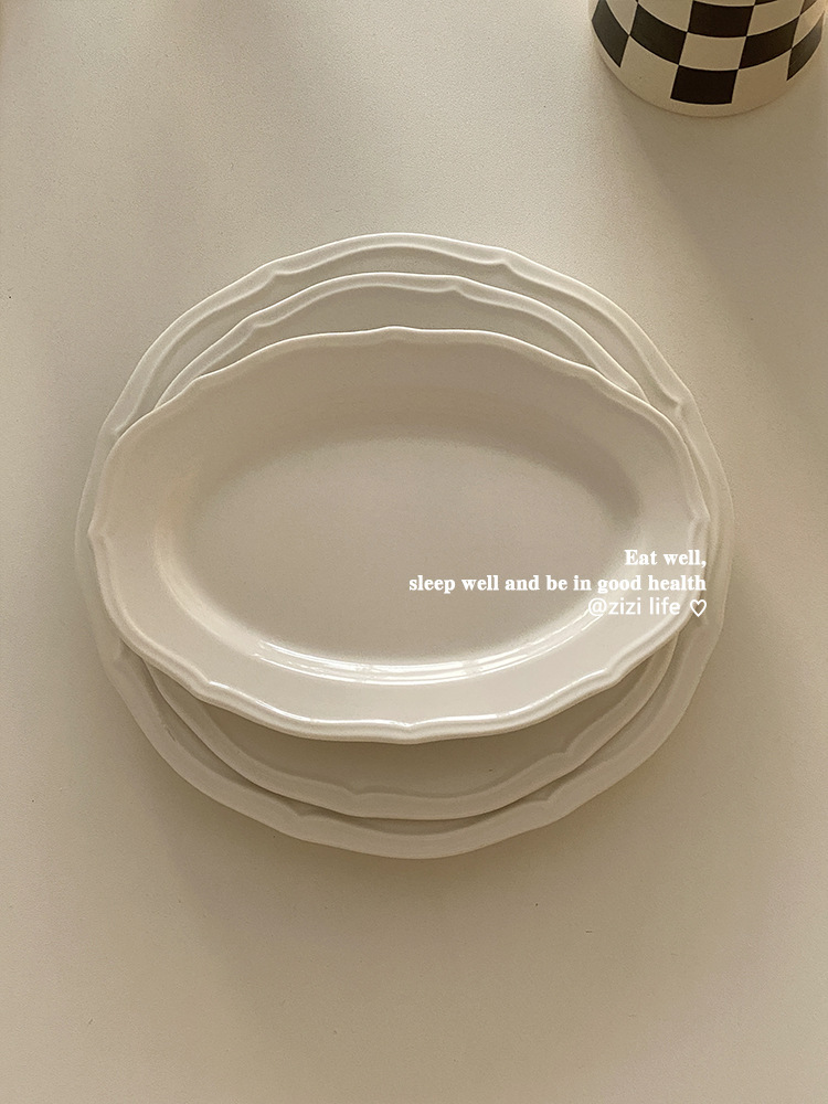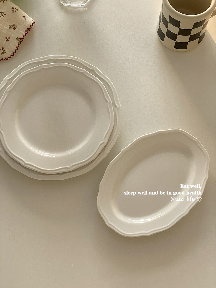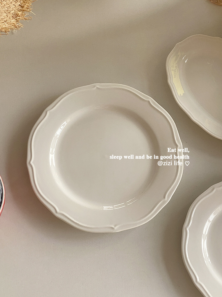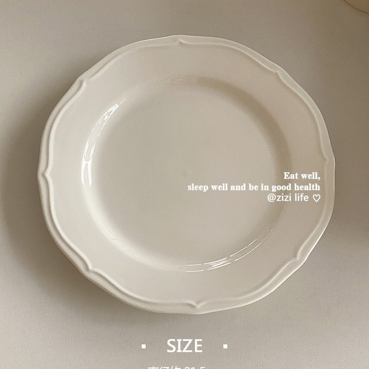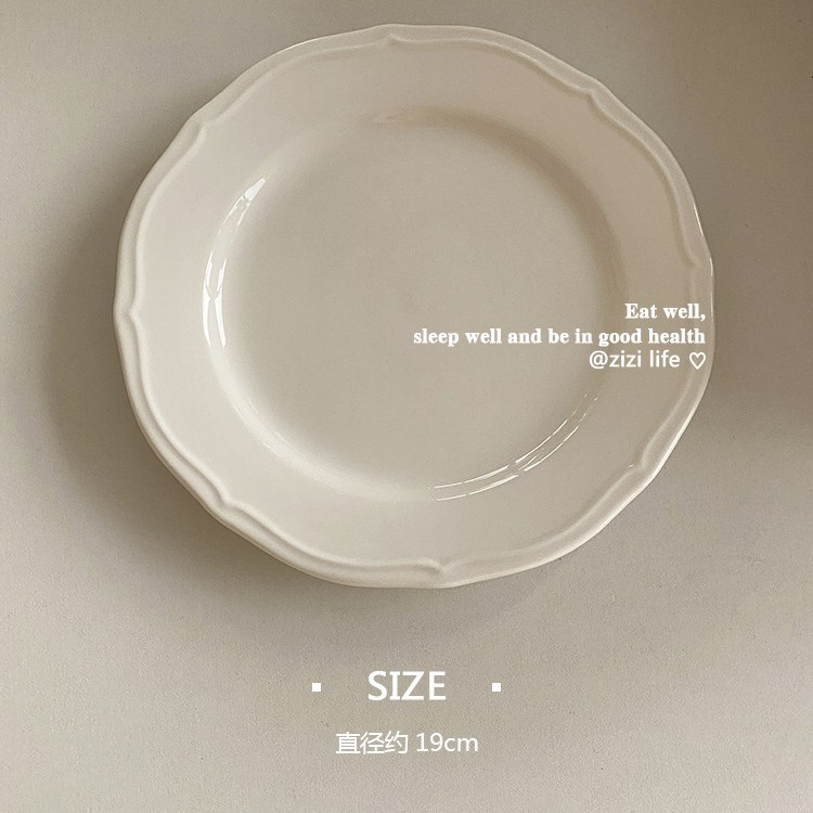 인스 스타일 복고풍 양각 라인 레이스 접시 순수한 흰색 세라믹 접시 프랑스 양각 가장자리 서양 음식 접시 디저트 아침 식사 접시스토어 가기