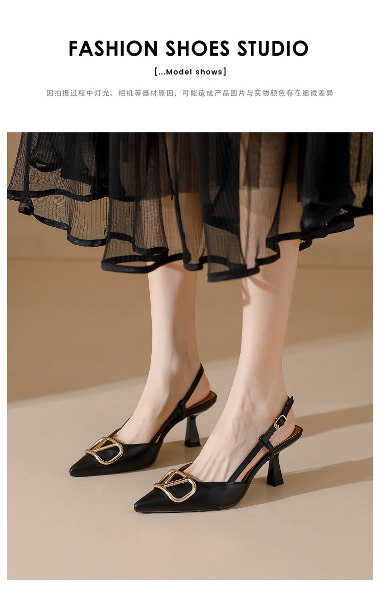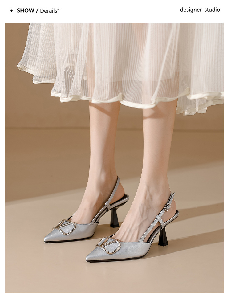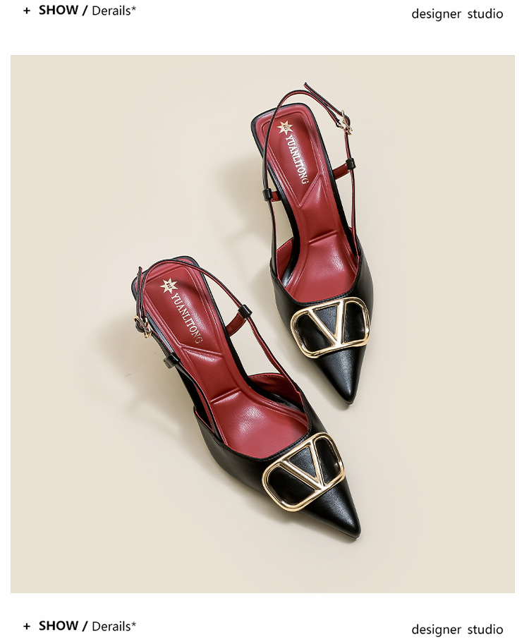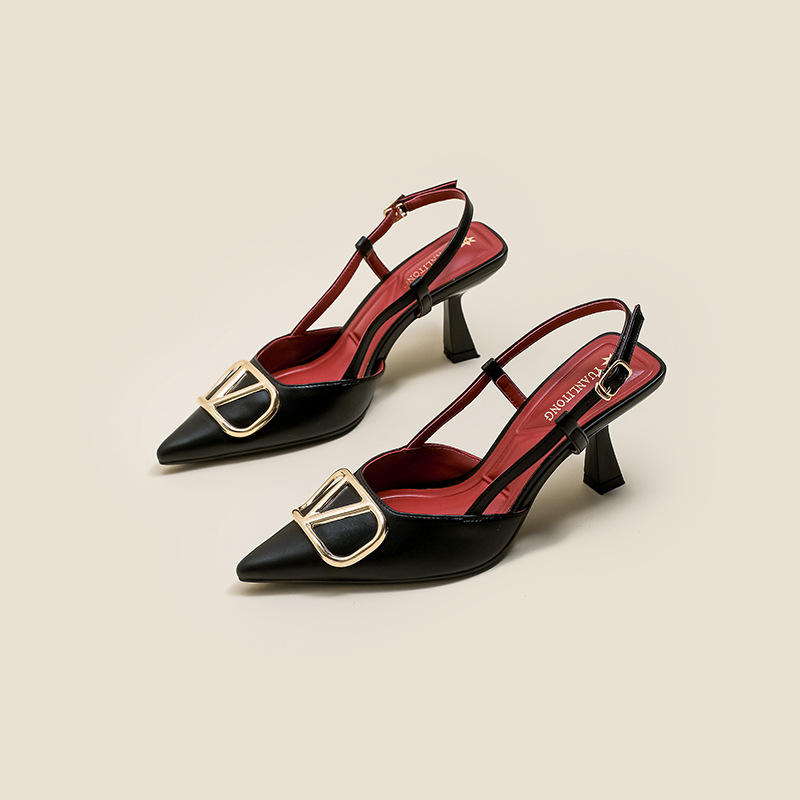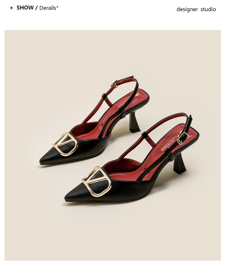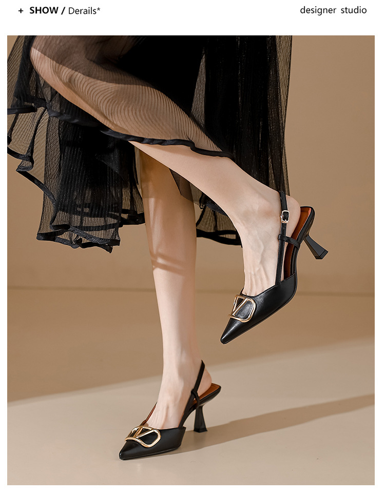 양가죽 버전~ 발이 피곤하지 않은 하이힐, 고급스러운 느낌, 화렌과 같은 스타일의 V 버클, 뒷굽이 없는 슈즈, 2025년 프렌치 라이트 럭셔리 여성화스토어 가기