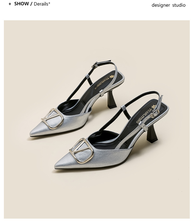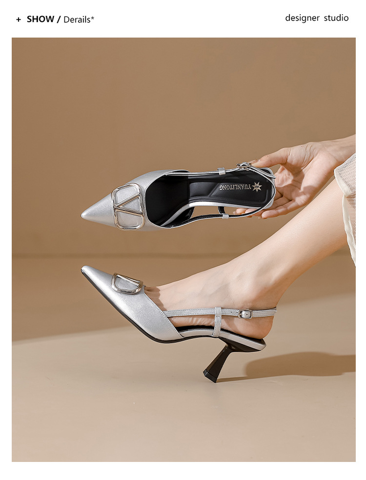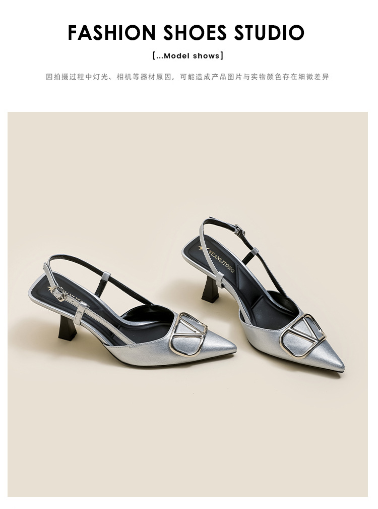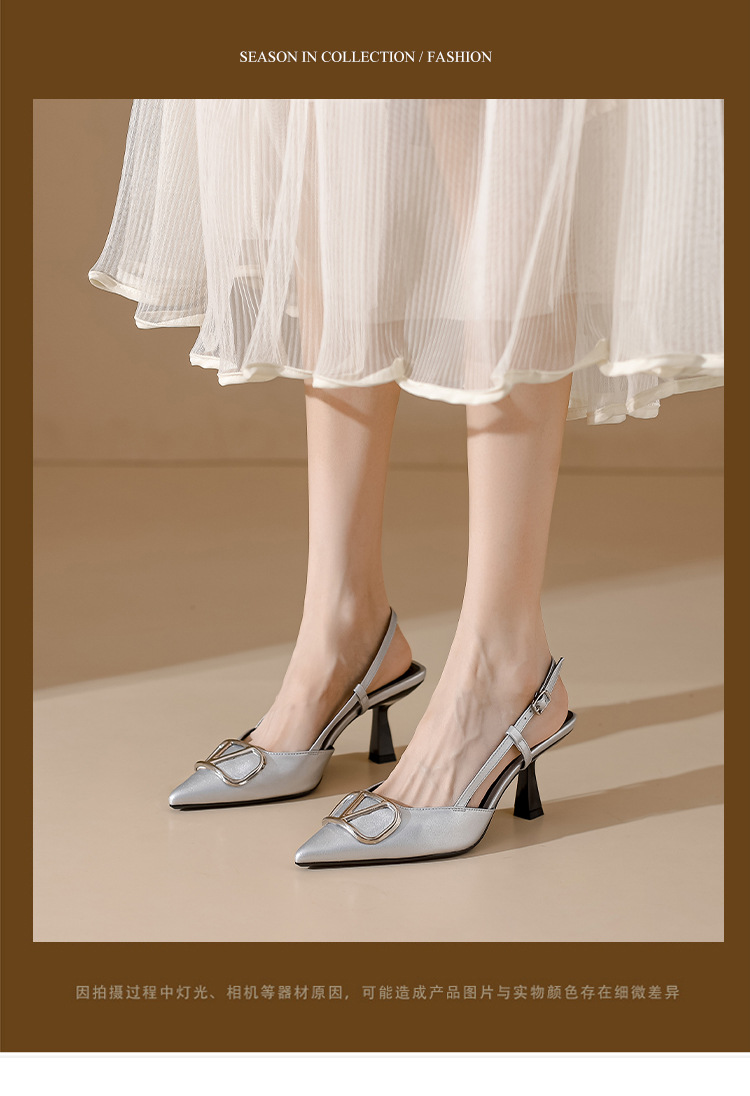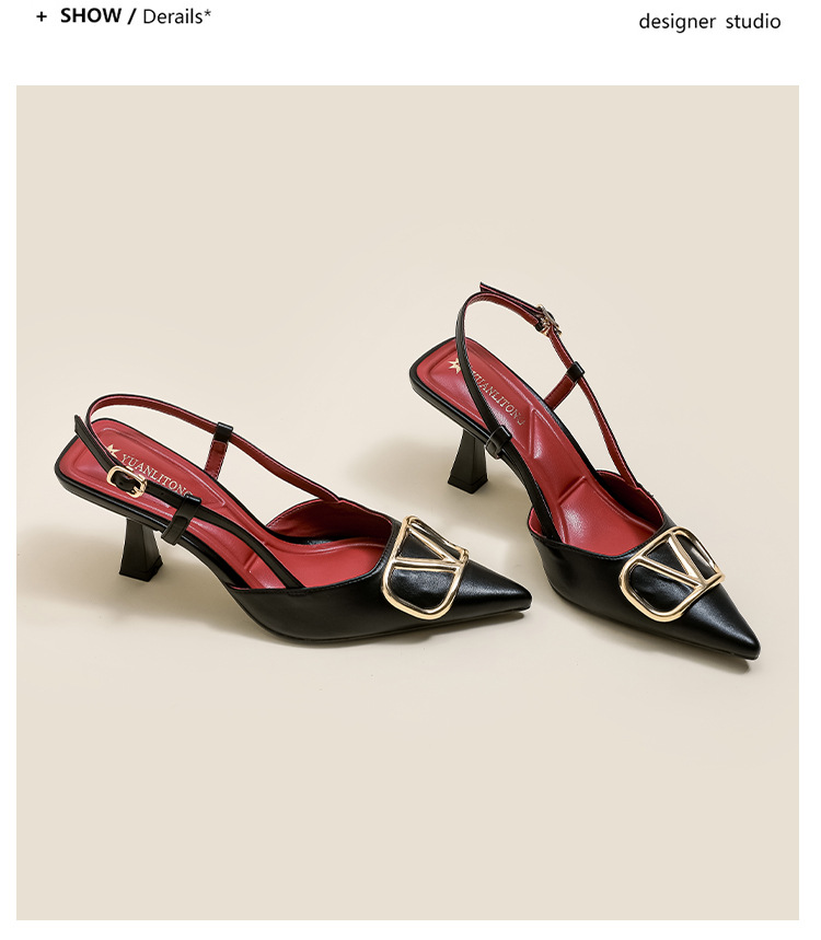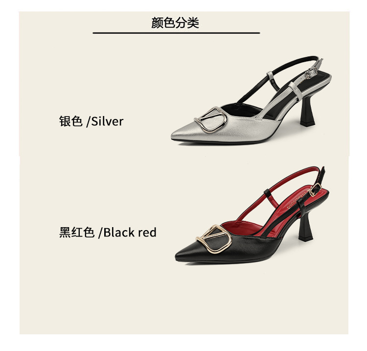 양가죽 버전~ 발이 피곤하지 않은 하이힐, 고급스러운 느낌, 화렌과 같은 스타일의 V 버클, 뒷굽이 없는 슈즈, 2025년 프렌치 라이트 럭셔리 여성화스토어 가기