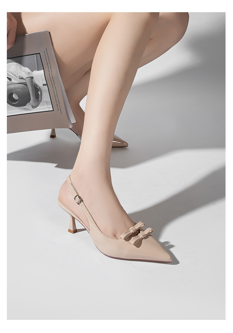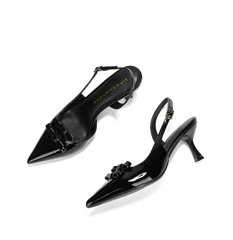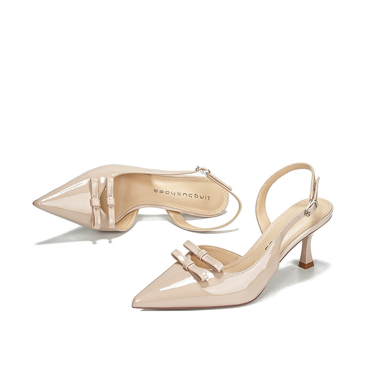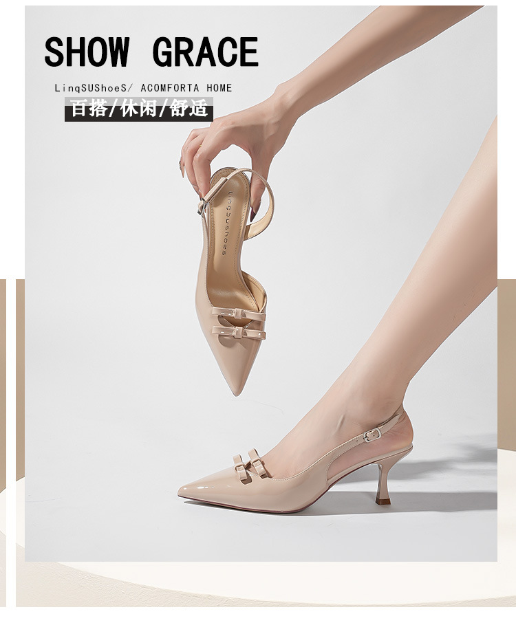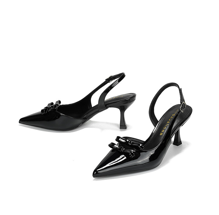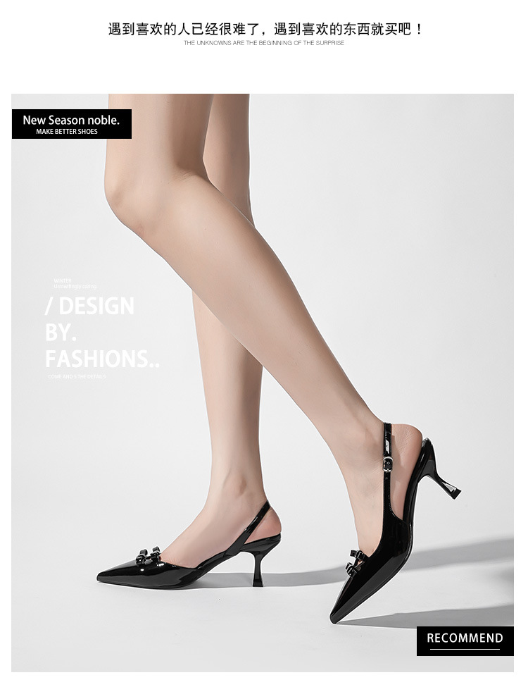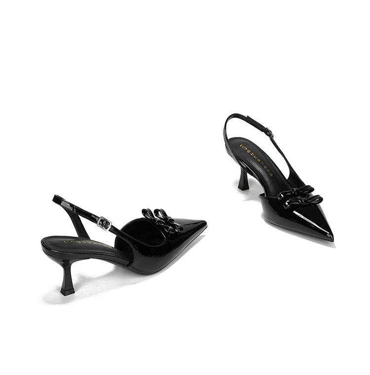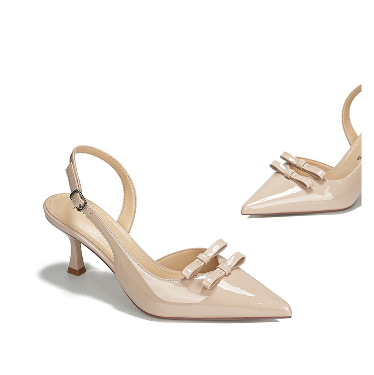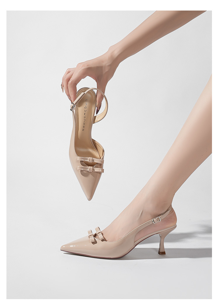613-75 새로운 2025 나비 매듭 얇은 스트랩 뾰족한 하이힐 신발 여성을위한 새로운 패션 뒤에 빈 얇은 힐 신발스토어 가기