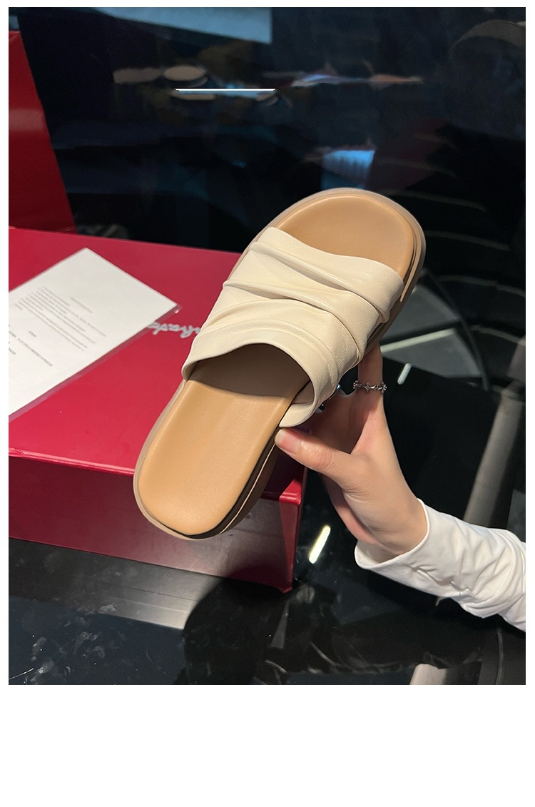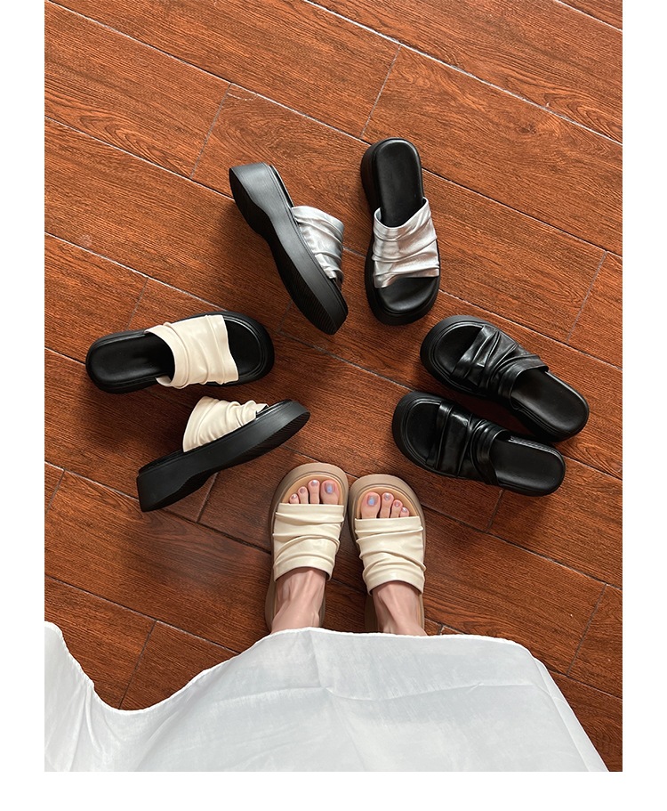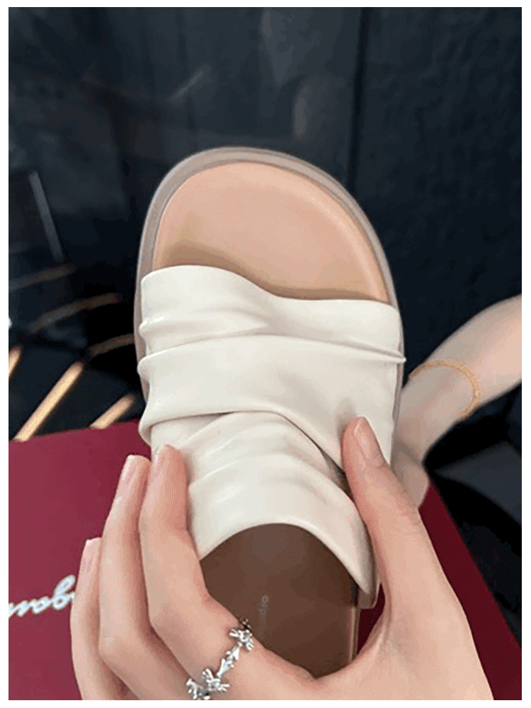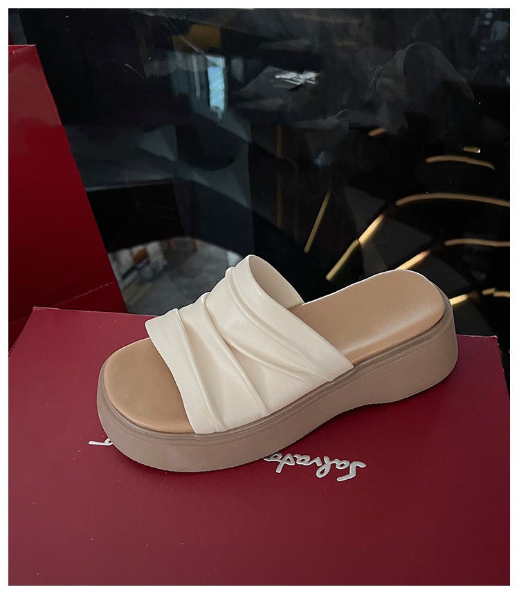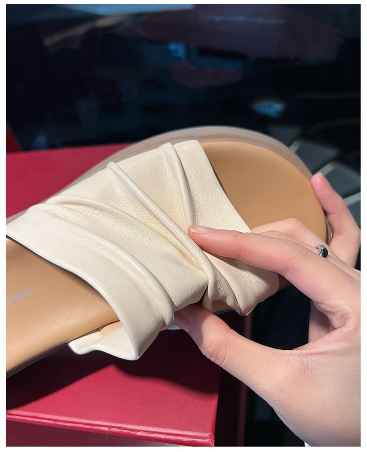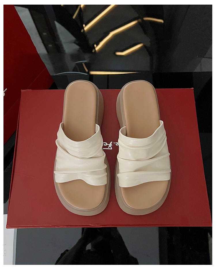 재고! 두꺼운 밑창 슬리퍼 여성 여름 새로운 방콕 드래그 주름 캐주얼 홀리데이 스타일 플랫 슬리퍼 샌들