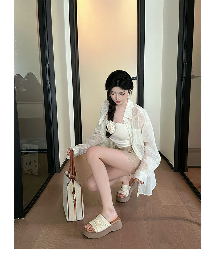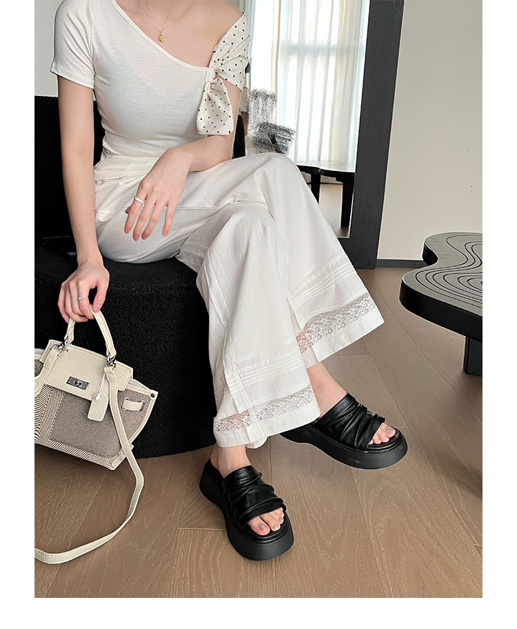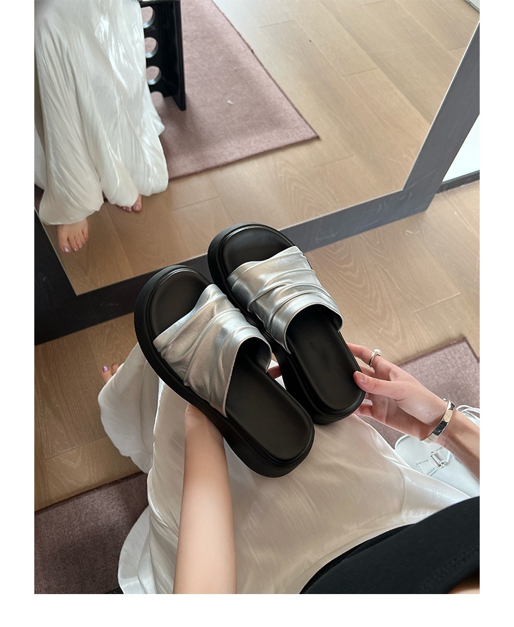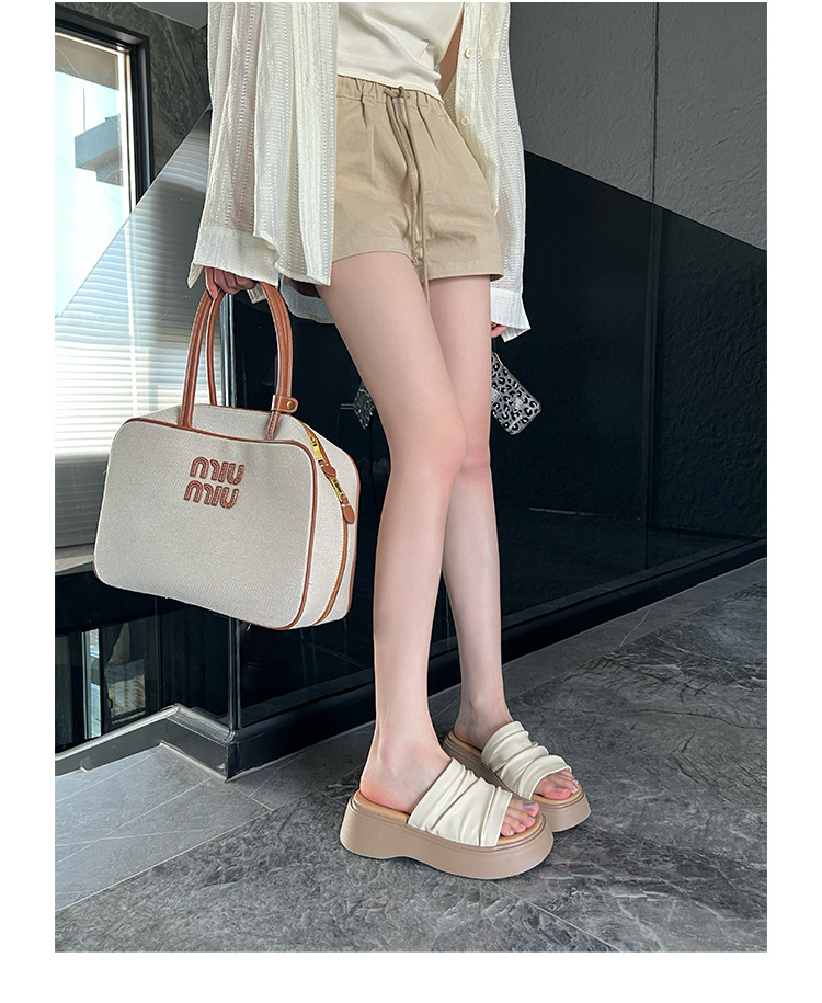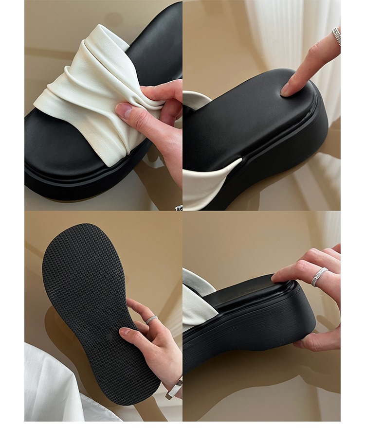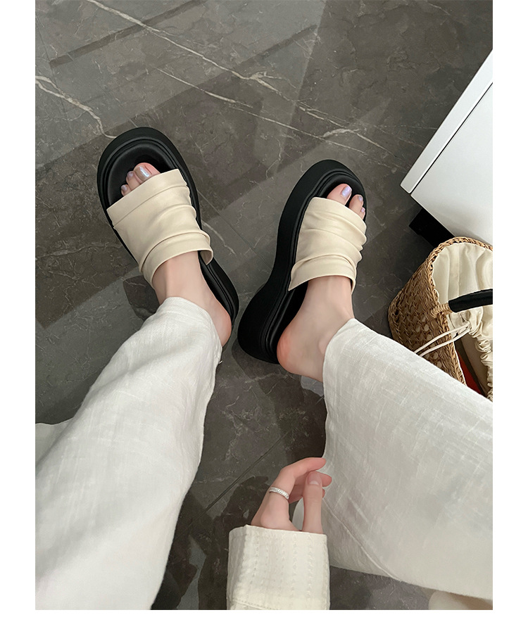 재고! 두꺼운 밑창 슬리퍼 여성 여름 새로운 방콕 드래그 주름 캐주얼 홀리데이 스타일 플랫 슬리퍼 샌들