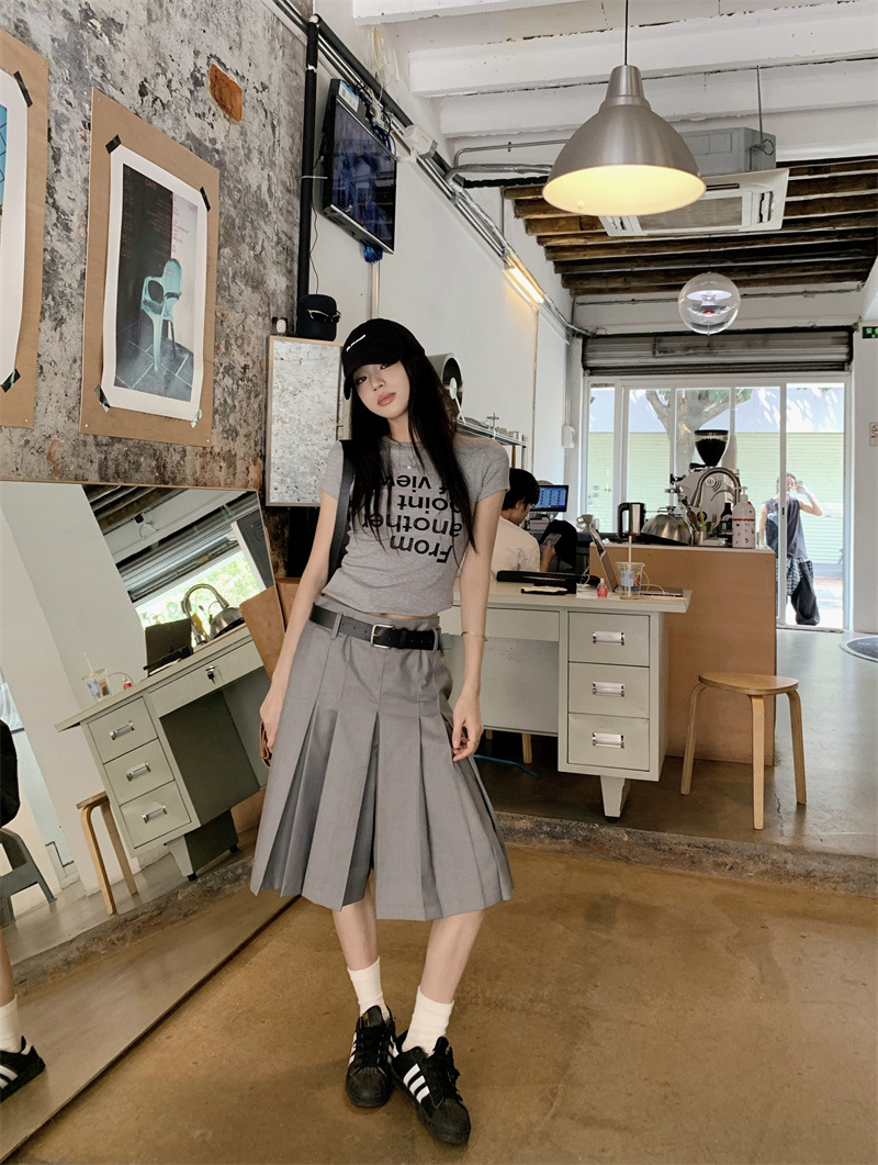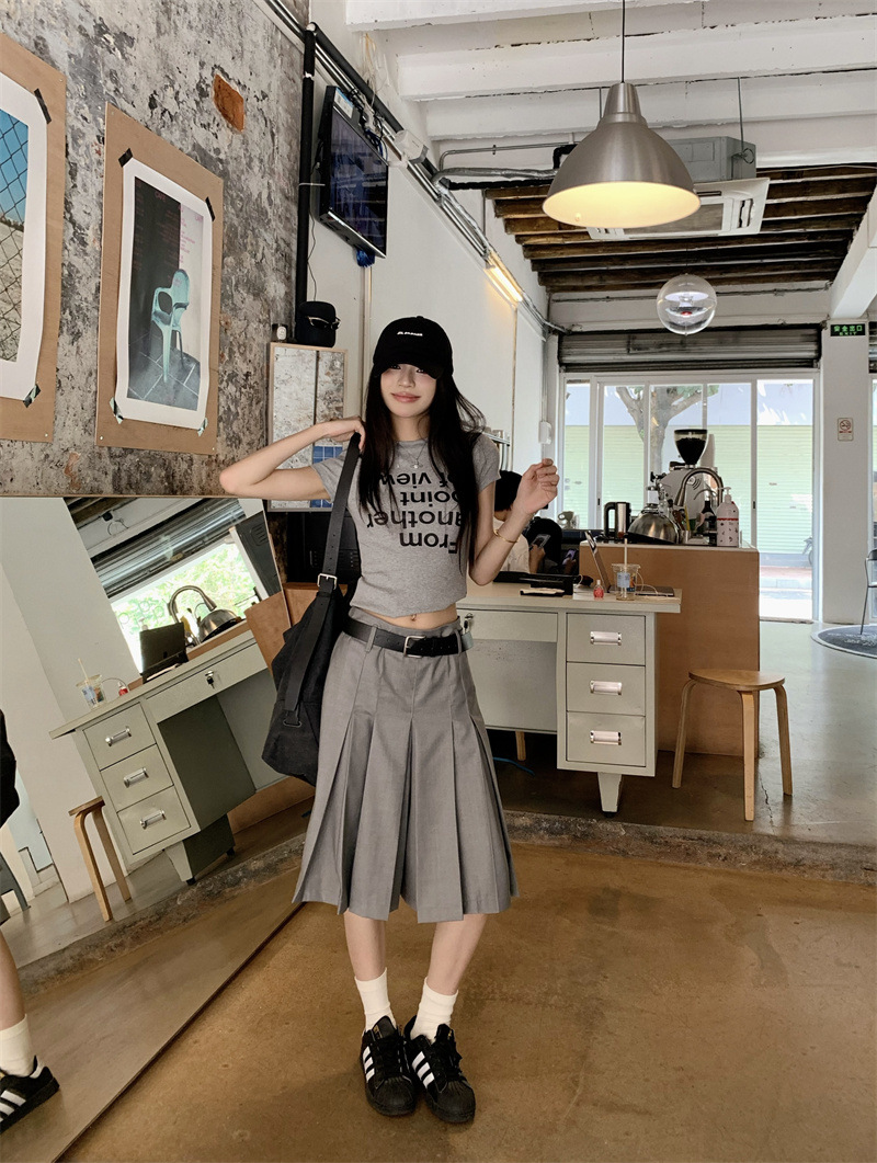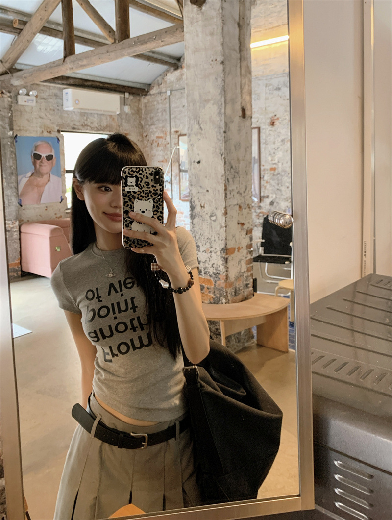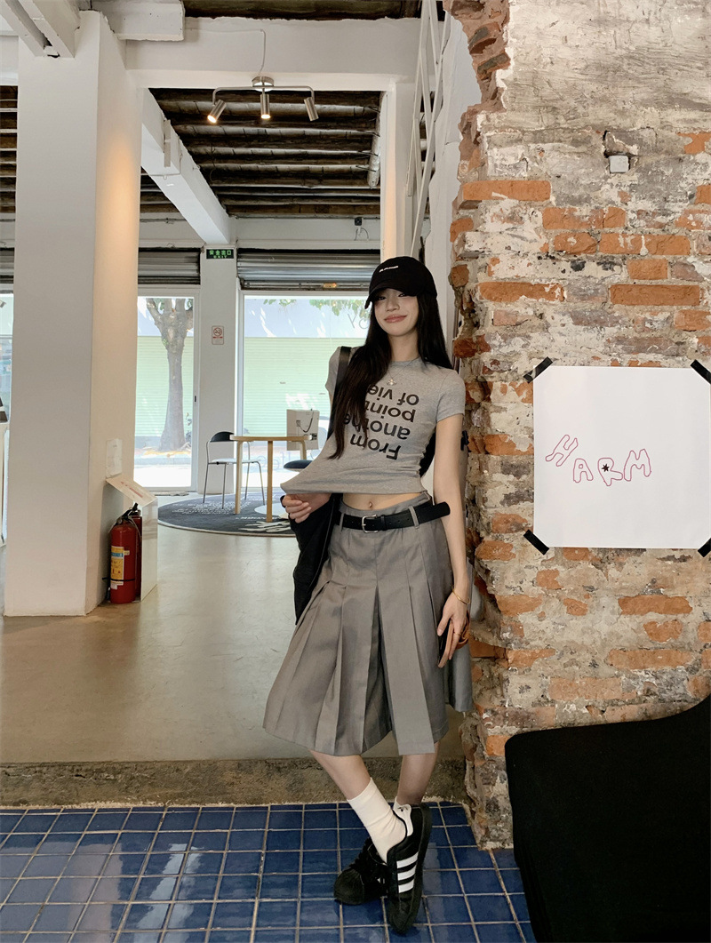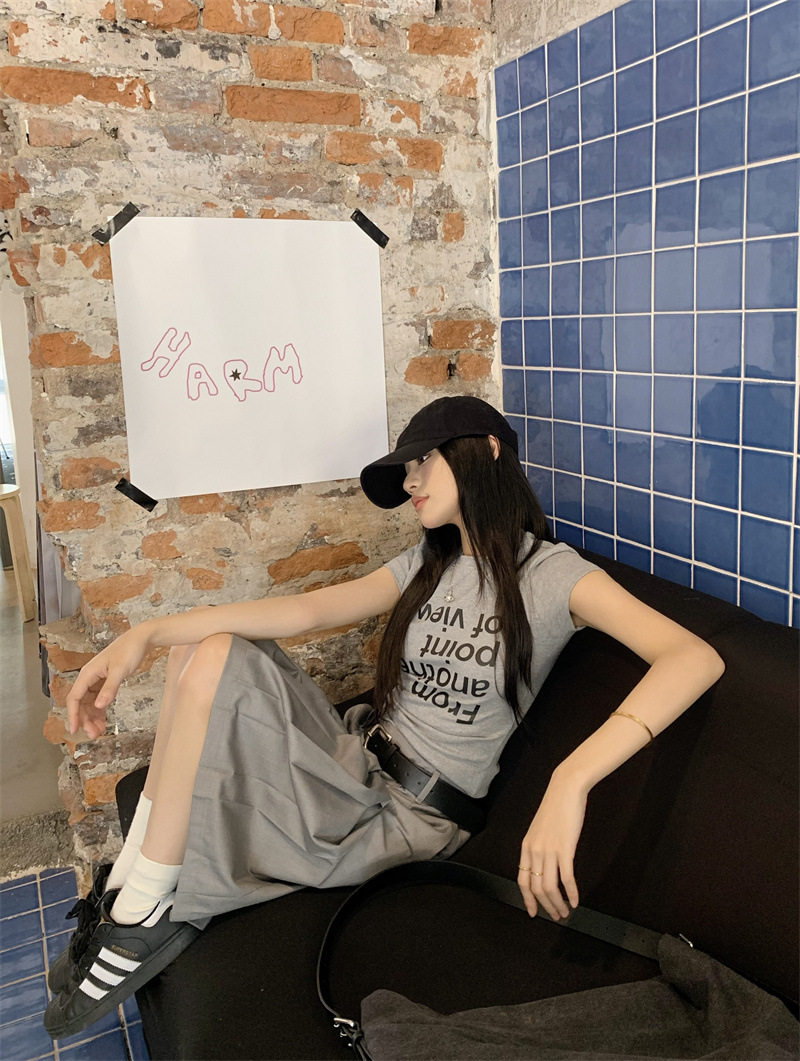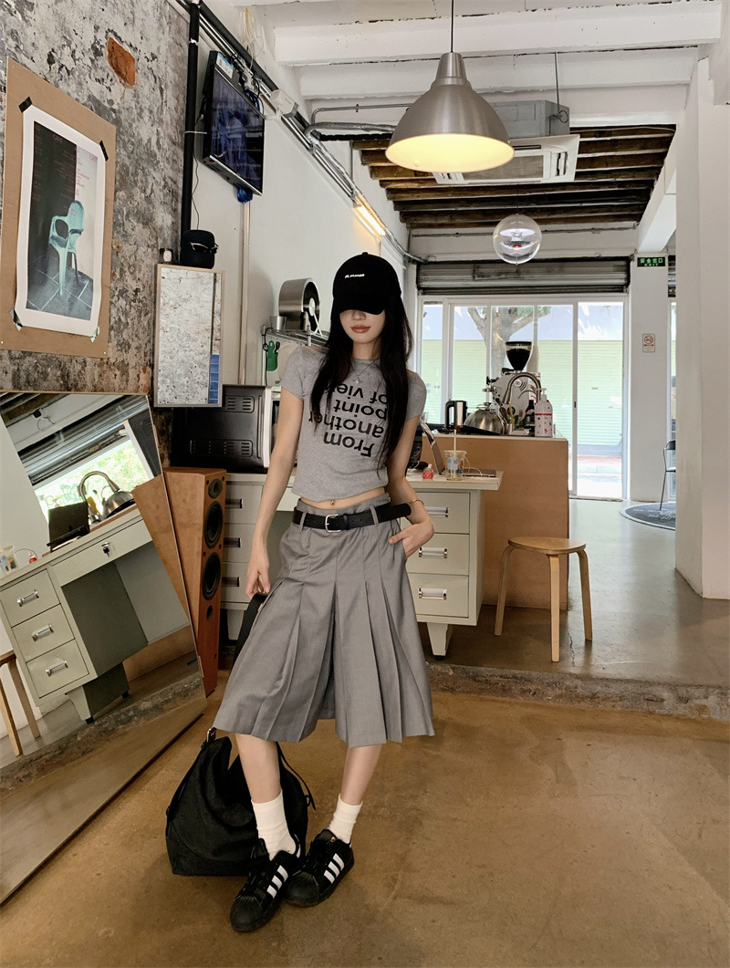 편지 인쇄 반팔 티셔츠 디자인 센스 높은 허리 주름 5 장 바지 여성 2025 여름 새로운 패션 세트스토어 가기