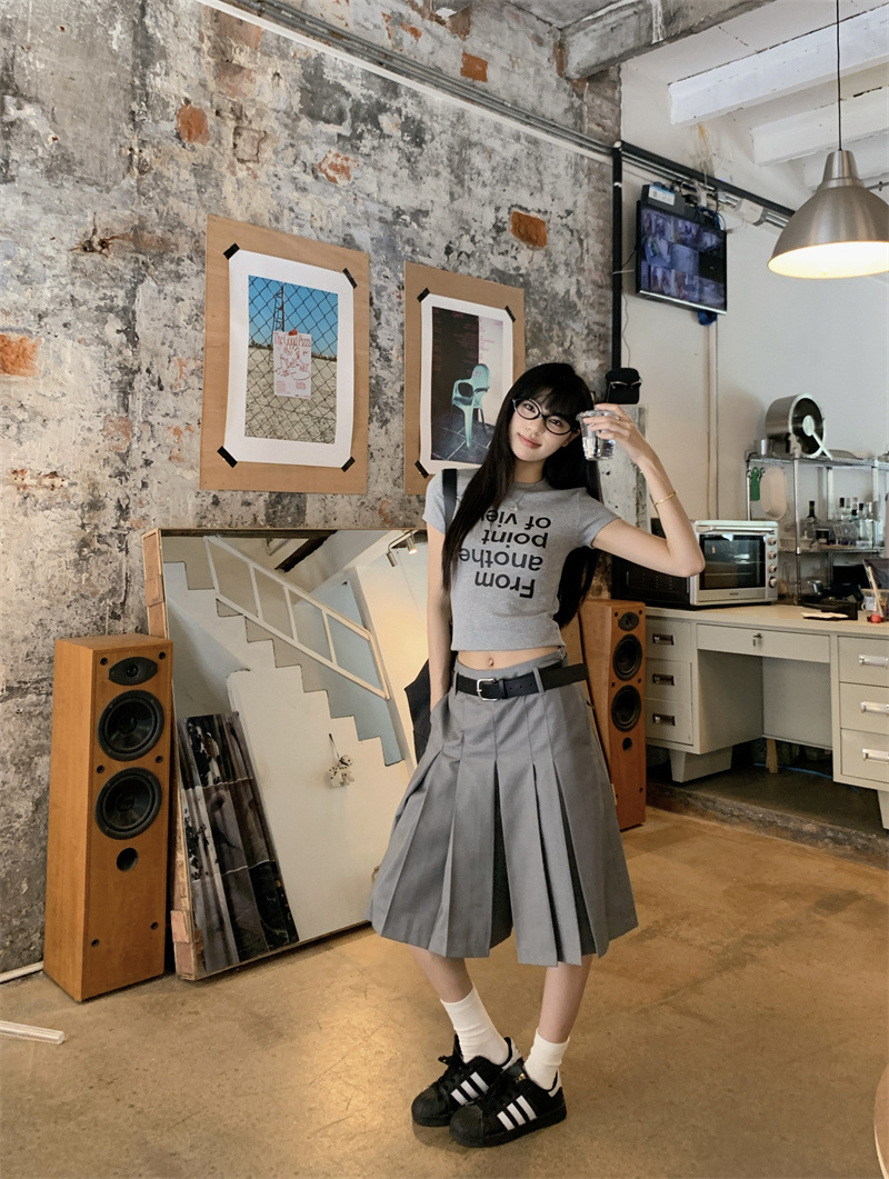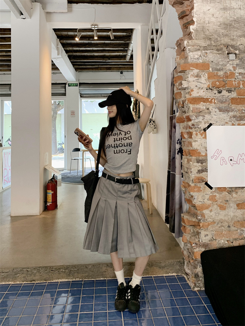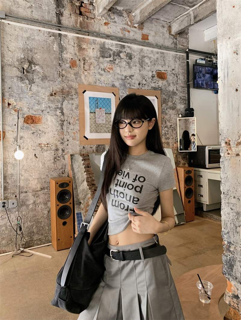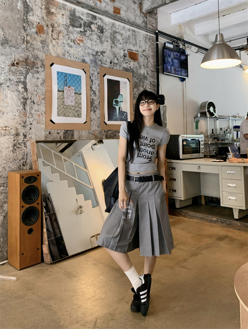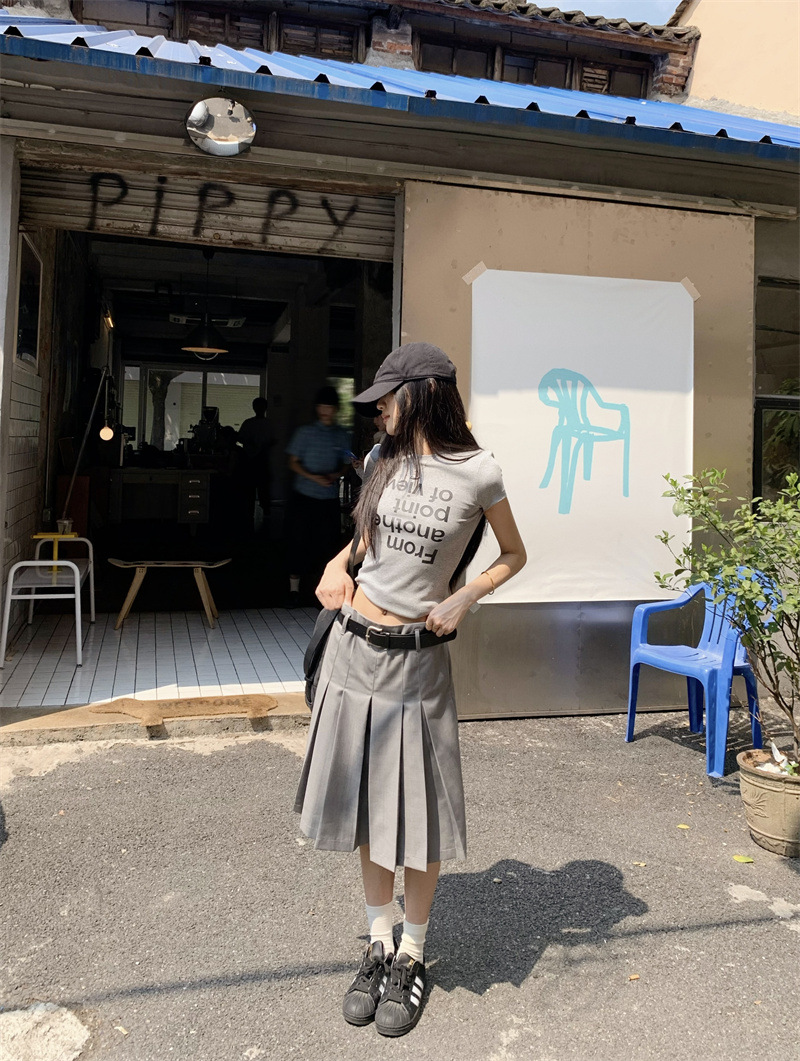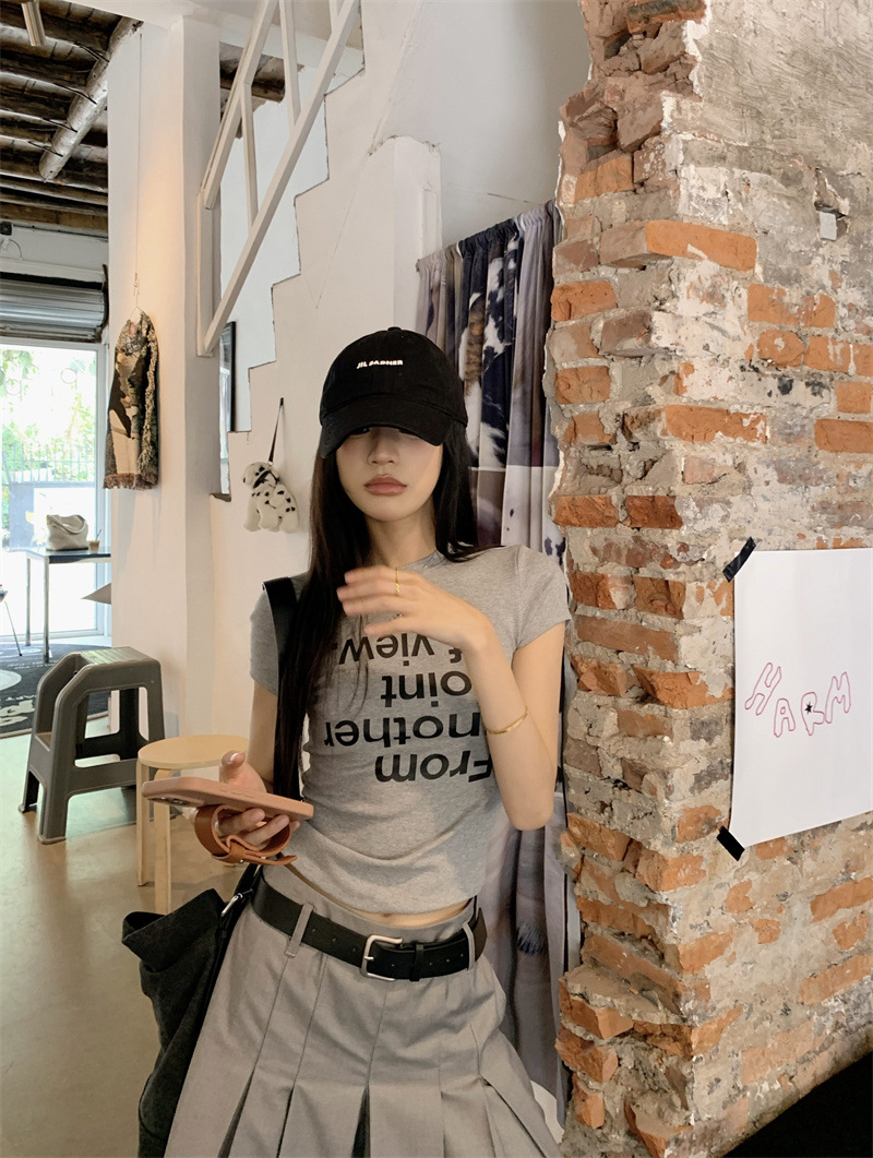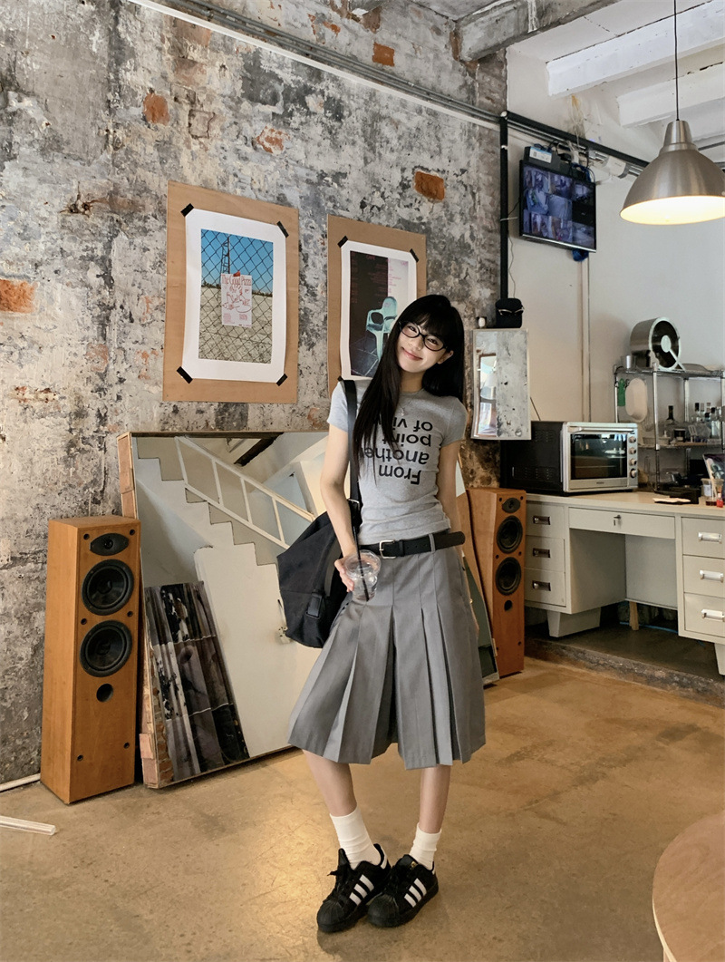 편지 인쇄 반팔 티셔츠 디자인 센스 높은 허리 주름 5 장 바지 여성 2025 여름 새로운 패션 세트스토어 가기