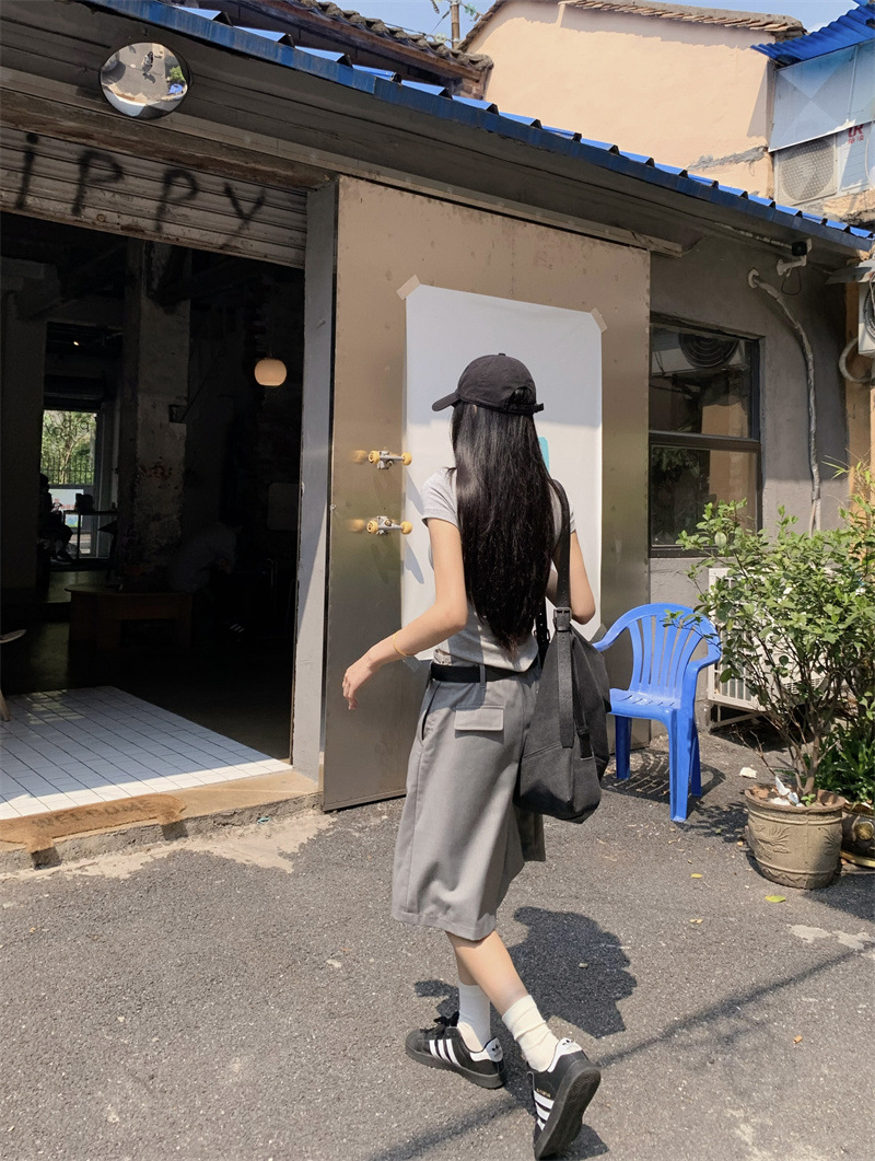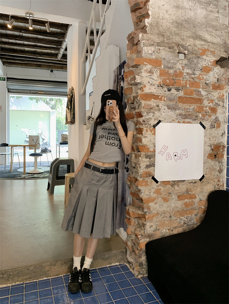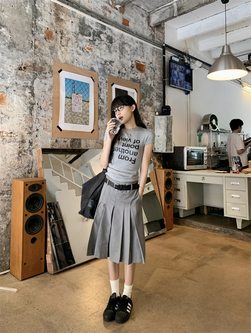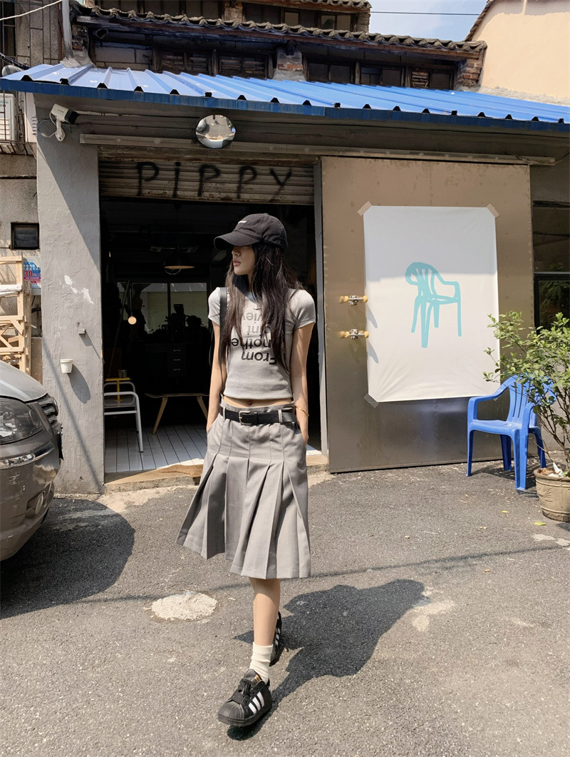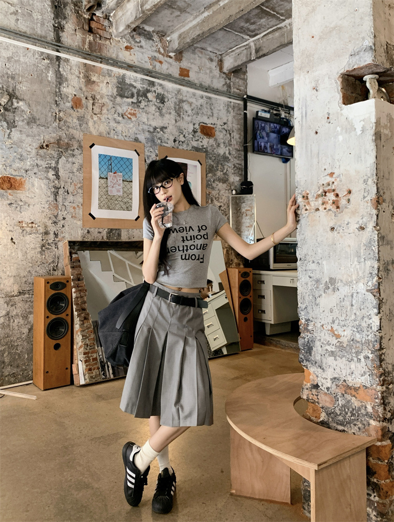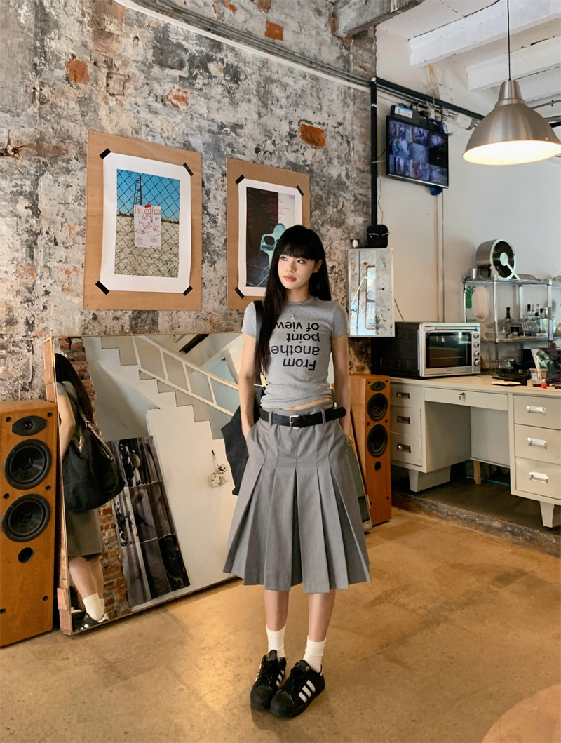 편지 인쇄 반팔 티셔츠 디자인 센스 높은 허리 주름 5 장 바지 여성 2025 여름 새로운 패션 세트스토어 가기