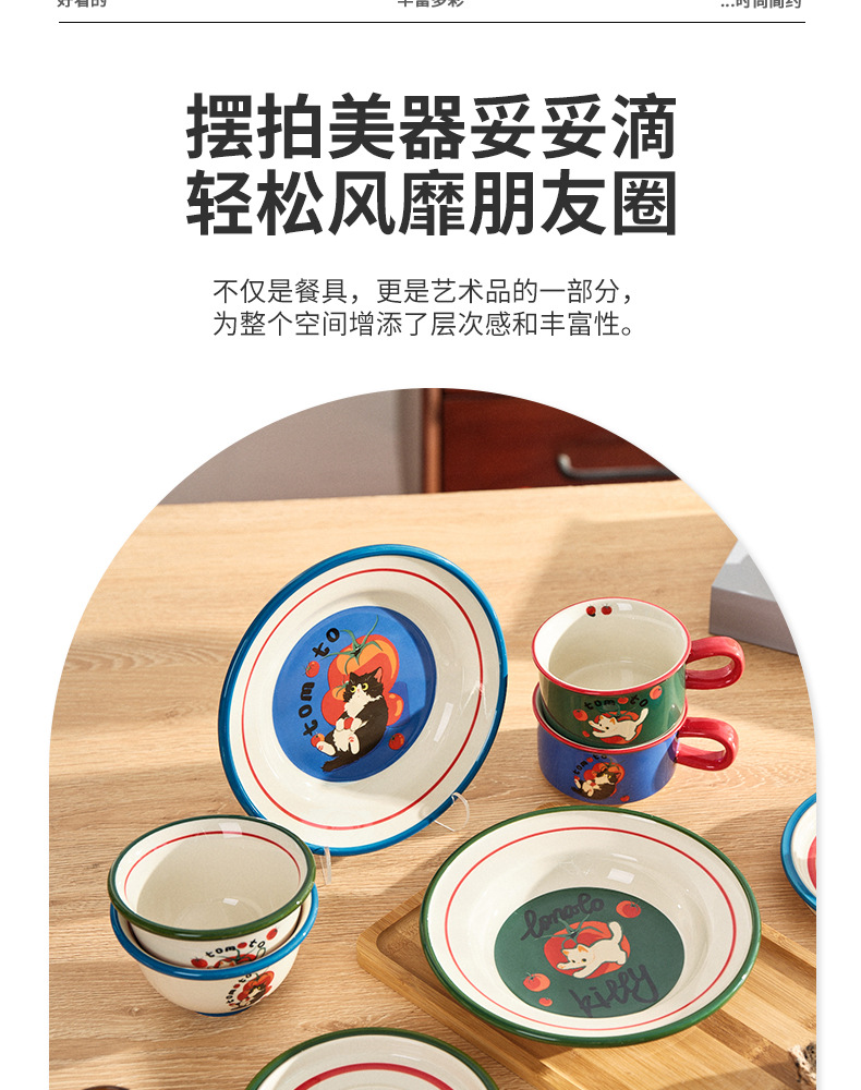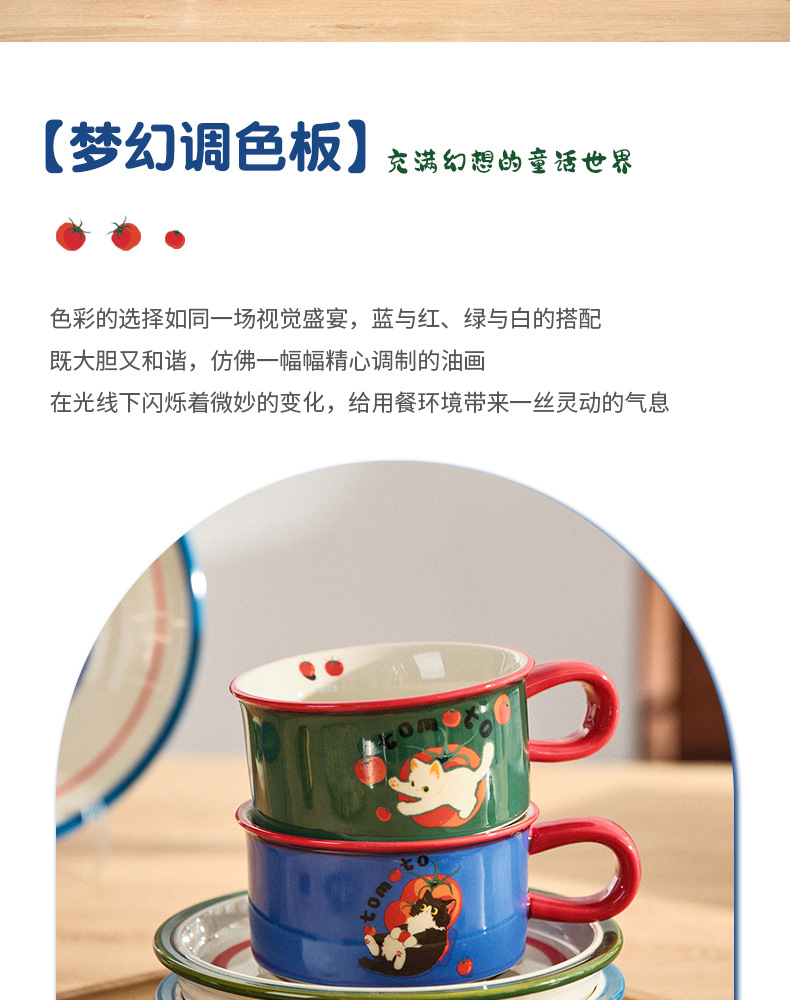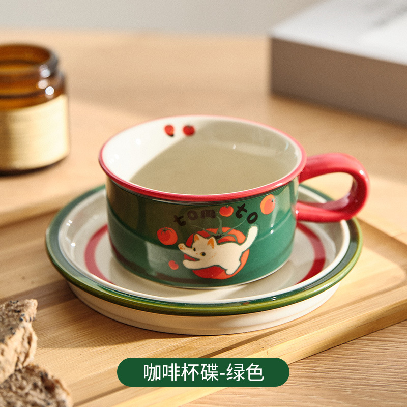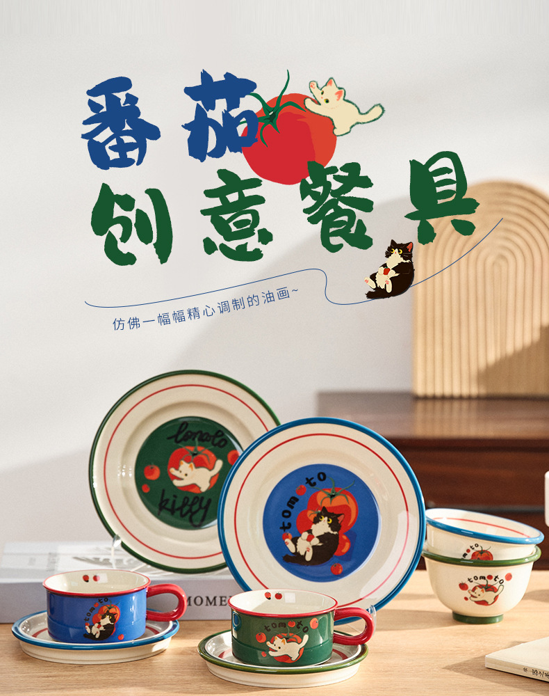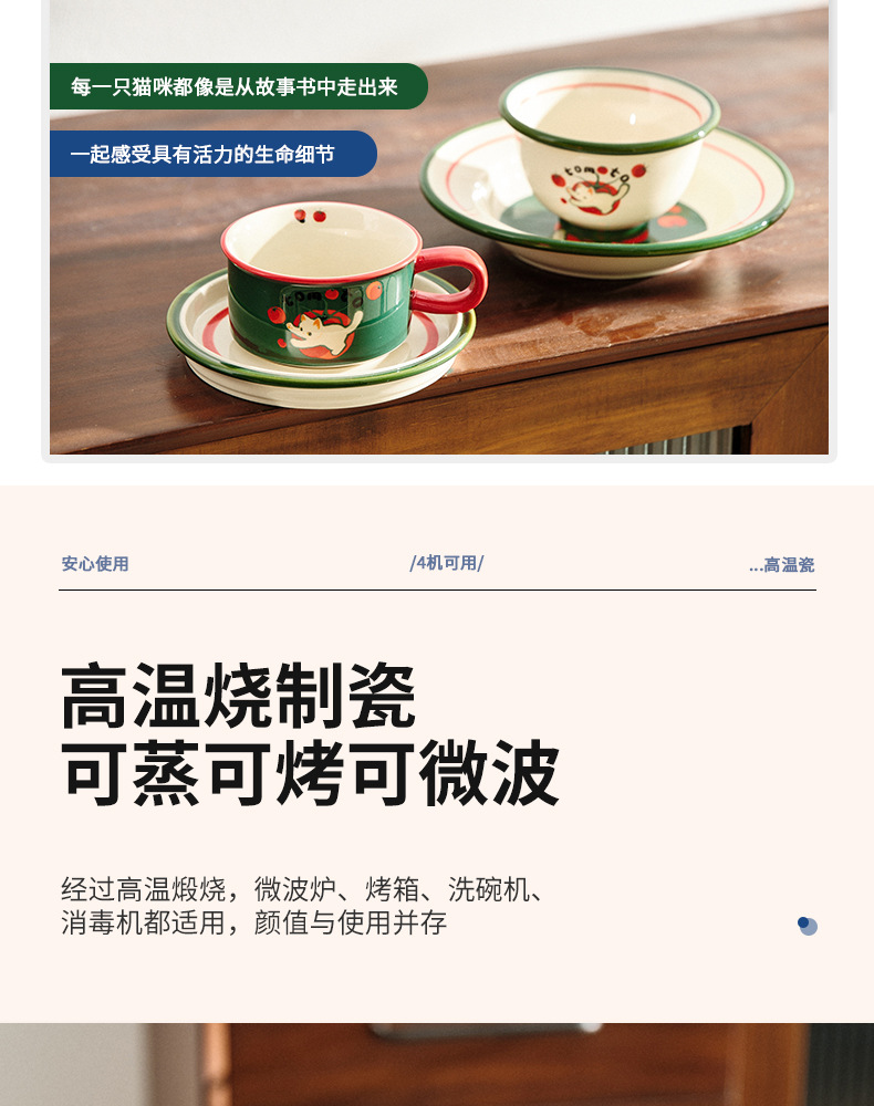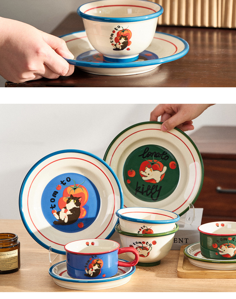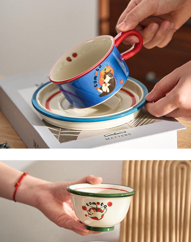 만화 고양이 귀여운 세라믹 식기 세트 가정용 밥 그릇 수프 접시 고가 커피 컵 한 컵과 접시스토어 가기