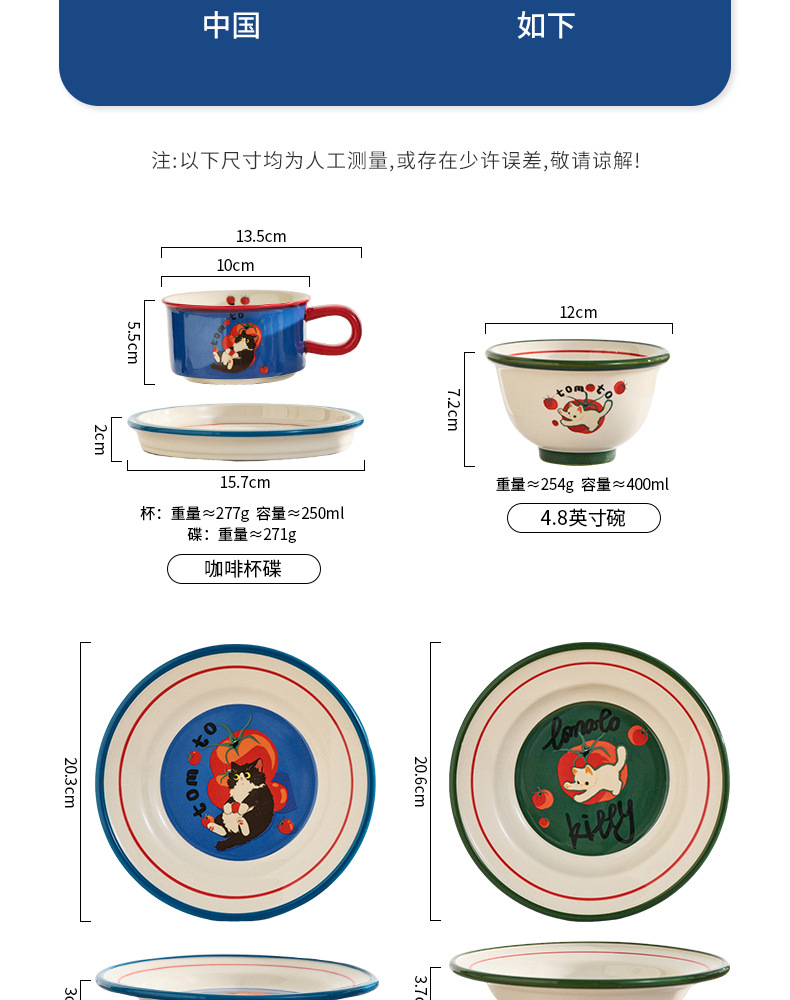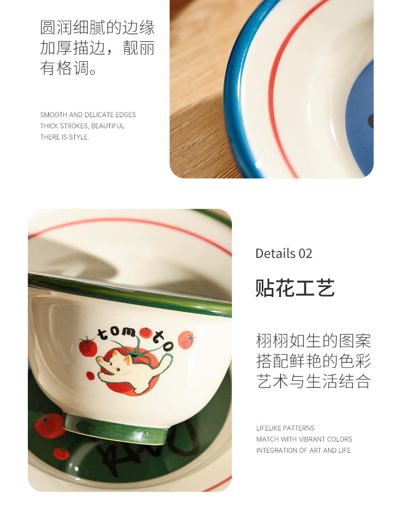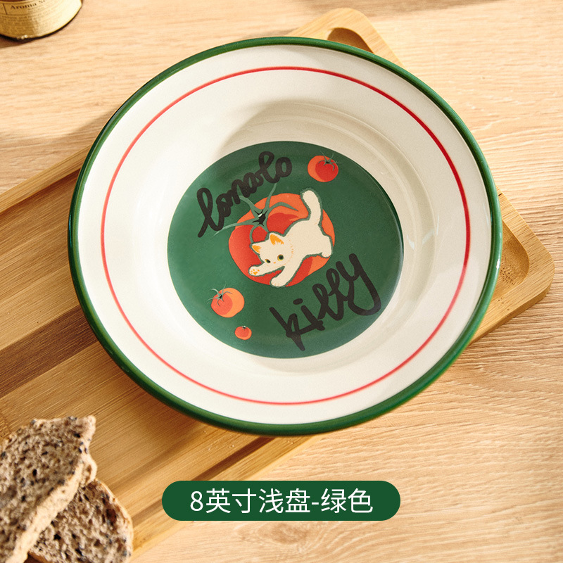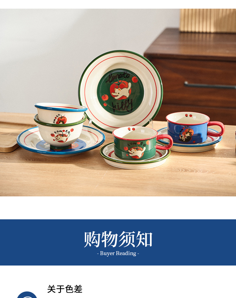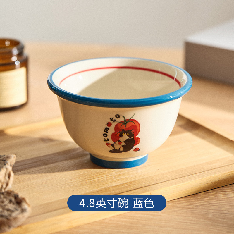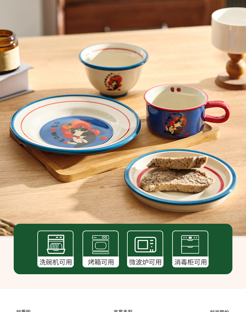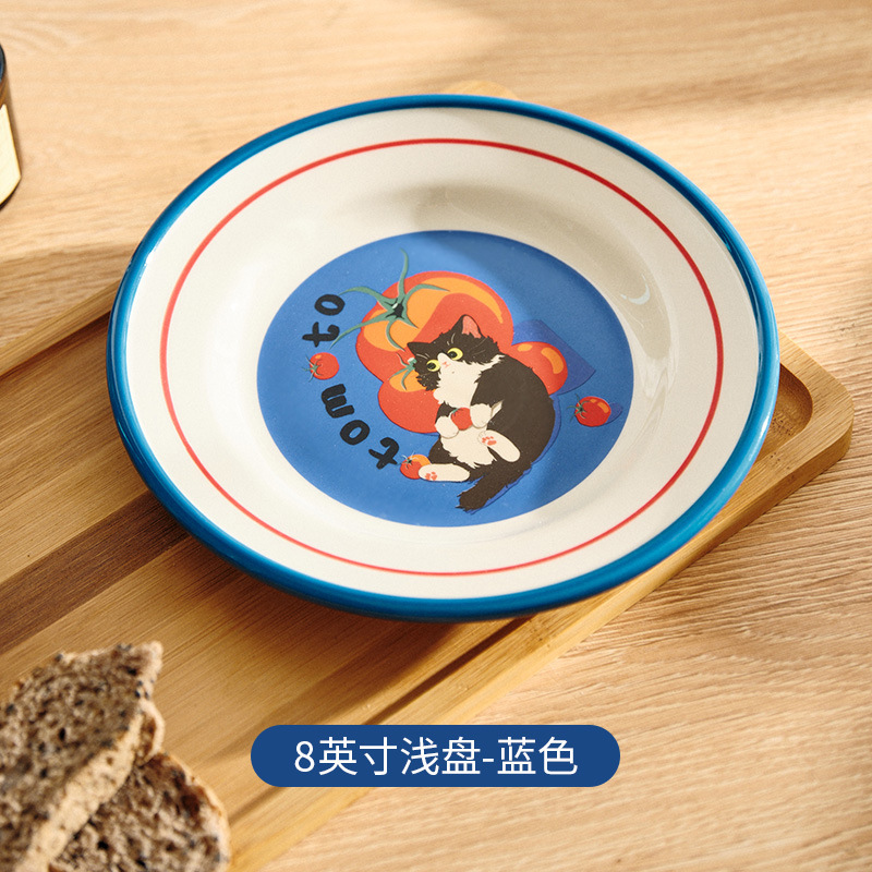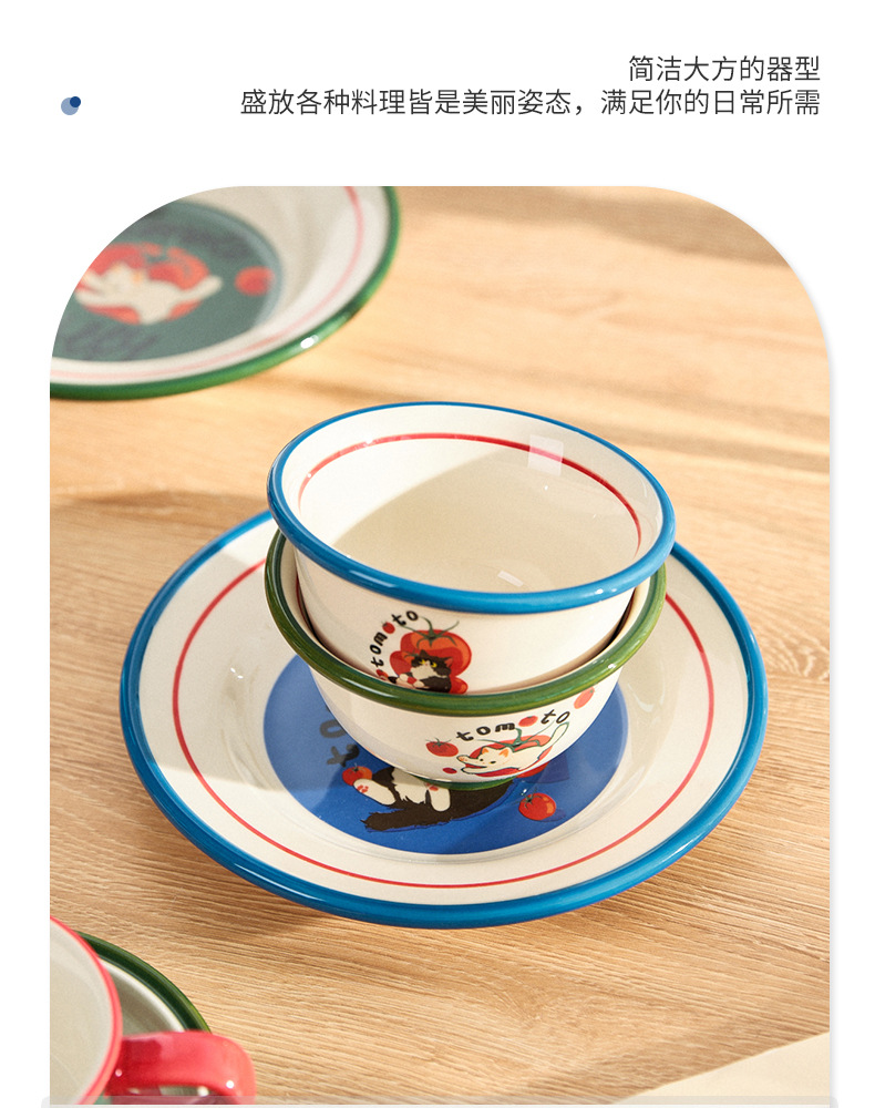 만화 고양이 귀여운 세라믹 식기 세트 가정용 밥 그릇 수프 접시 고가 커피 컵 한 컵과 접시스토어 가기