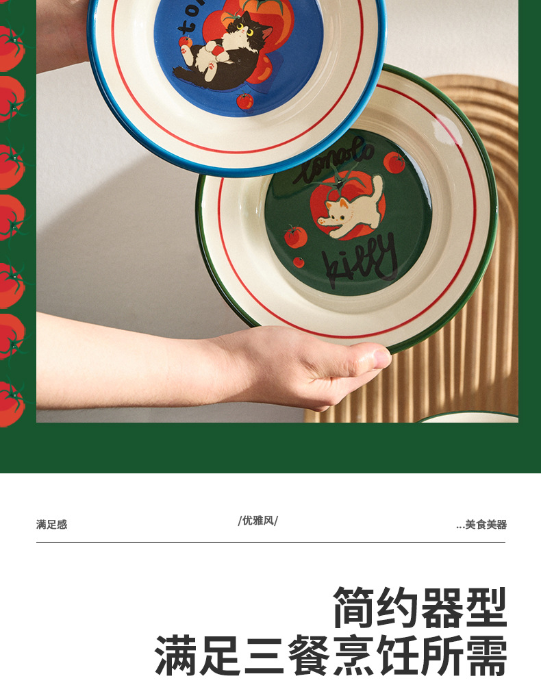 만화 고양이 귀여운 세라믹 식기 세트 가정용 밥 그릇 수프 접시 고가 커피 컵 한 컵과 접시