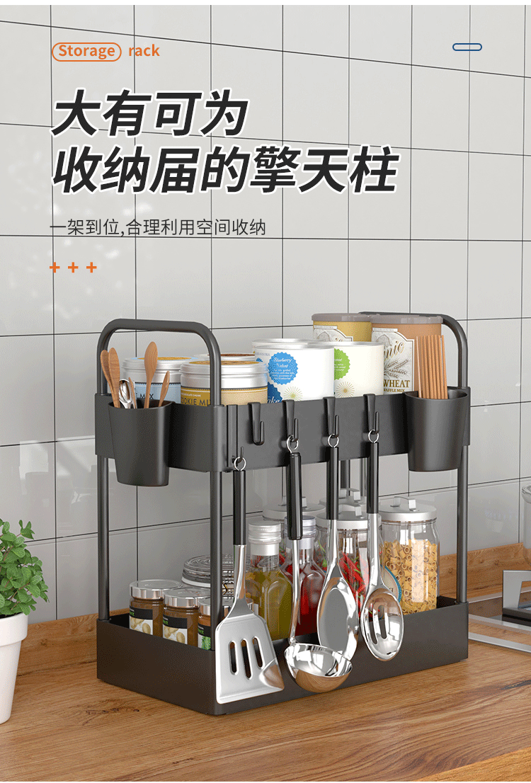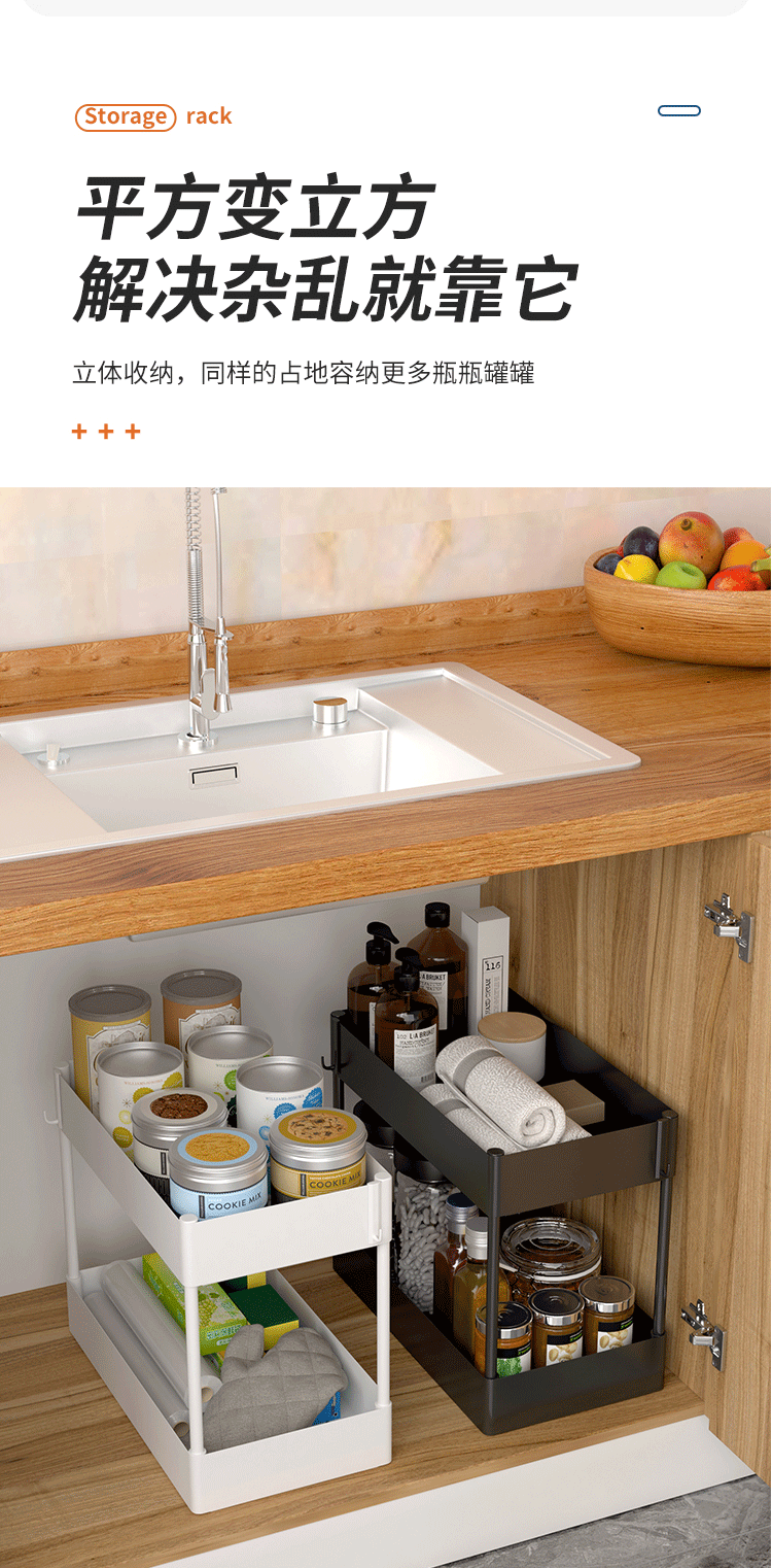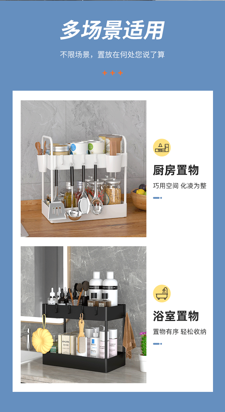 Amazon 더블 레이어 주방 욕실 선반 싱크대 아래 보관함 데스크탑 조미료 보관함 잡다한 보관함
