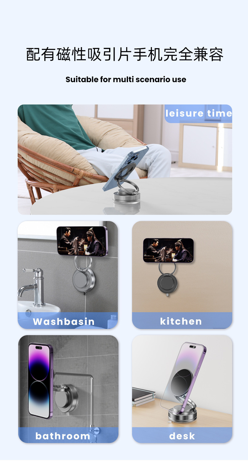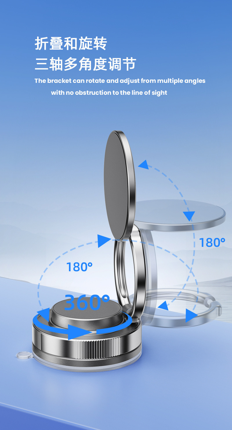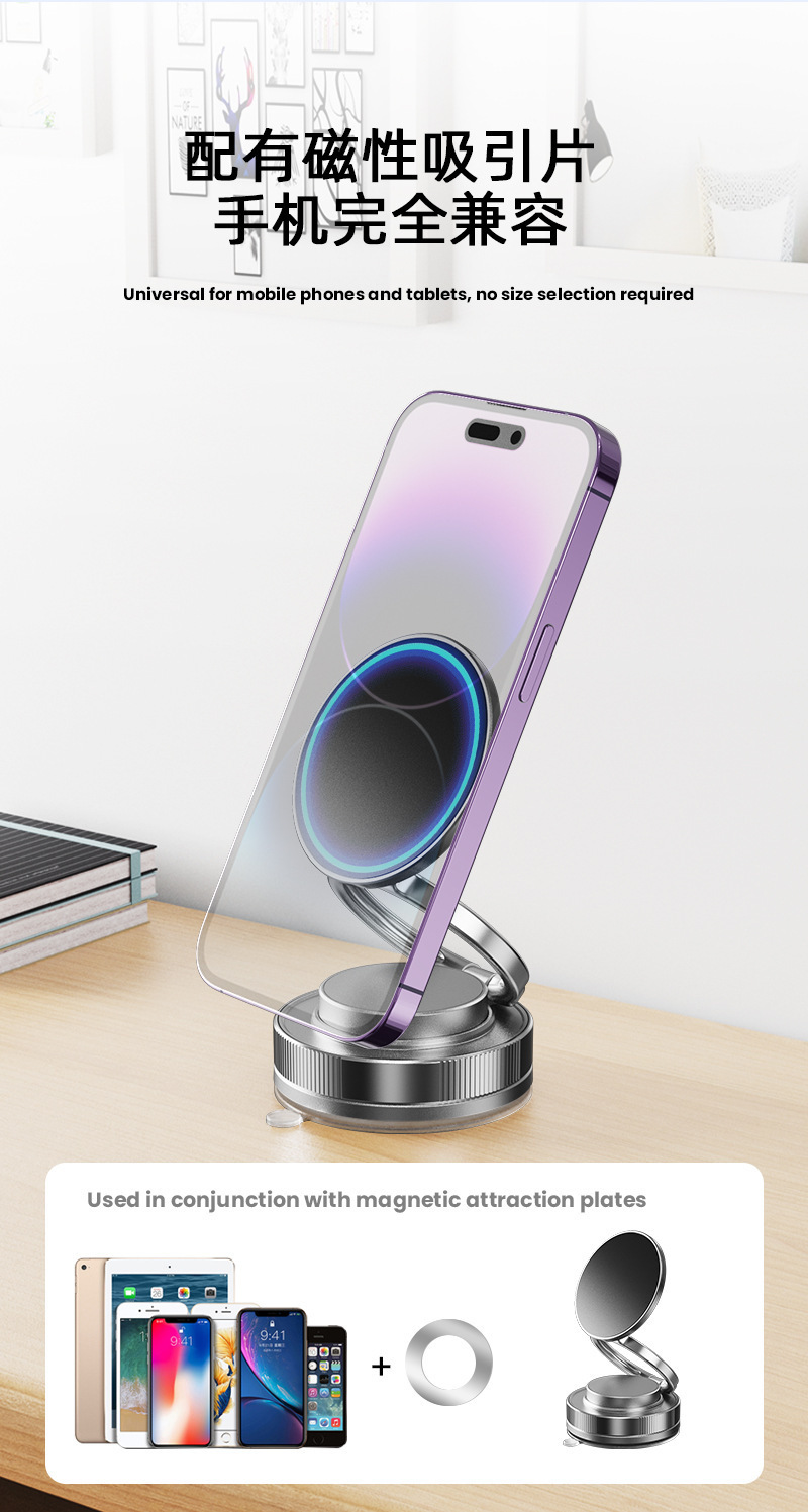 새로운 자기 휴대 전화 브래킷 회전 접는 진공 흡입 컵 자동차 셀카 라이브 오피스 데스크탑 벽 중앙 콘솔