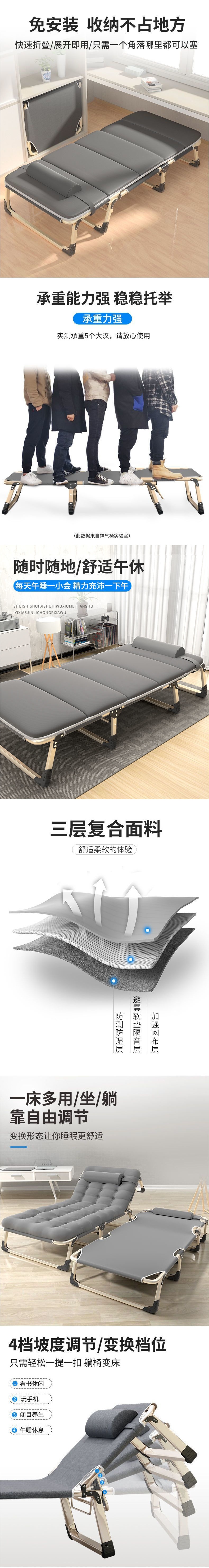 간단하고 실용적인 접이식 침대 싱글 사무실 의자 간단한 새 스타일 홈 거실 라이트 럭셔리 침실 점심 시간 야외스토어 가기
