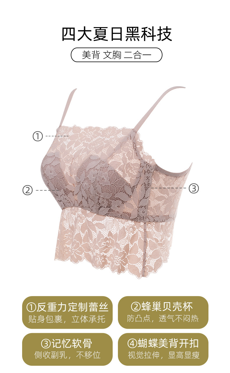 프렌치 버클 튜브탑, 노출방지, 큰가슴, 작은쉘컵, 통기성 레이스, 반중력 슬링, 여성용 아름다운 등스토어 가기