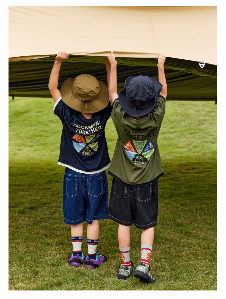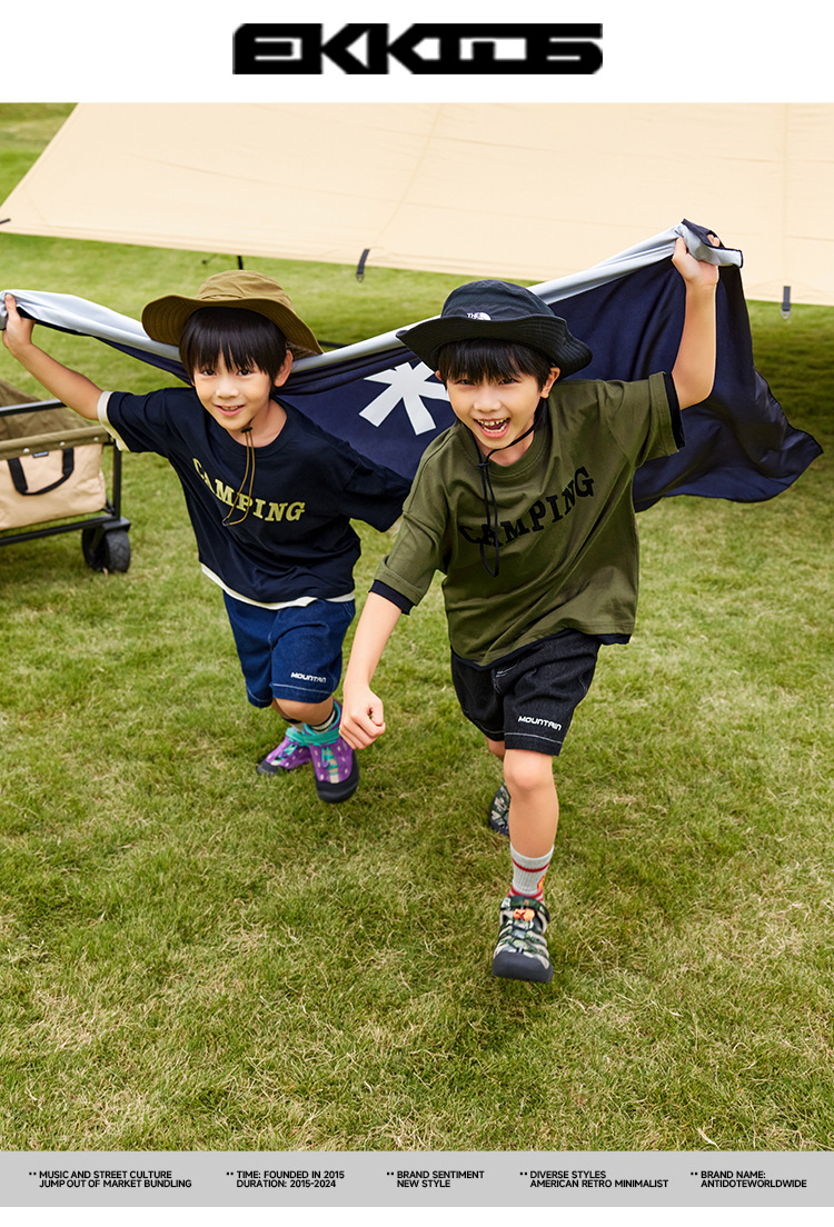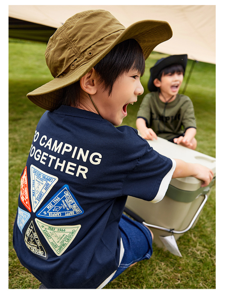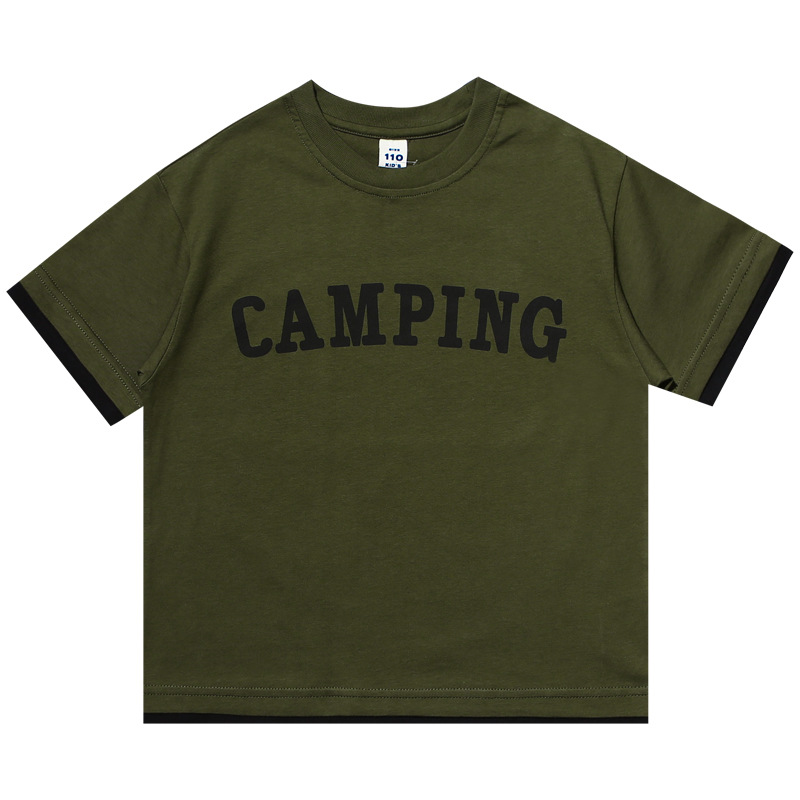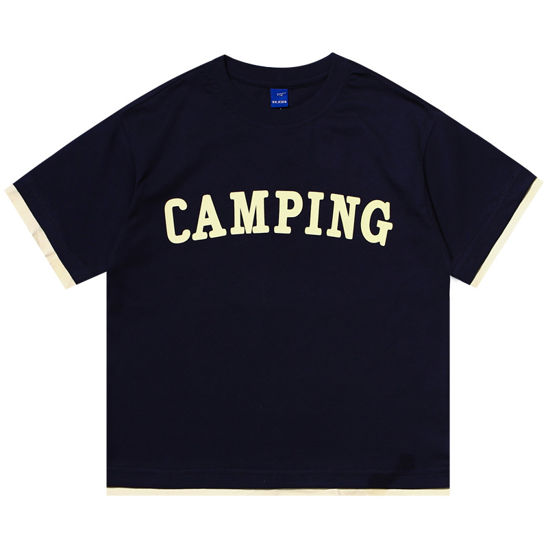 EK 아동복 일본 복고풍 소년 가짜 투피스 순면 느슨한 반팔 티셔츠 중대형 아동 패션 탑 t스토어 가기
