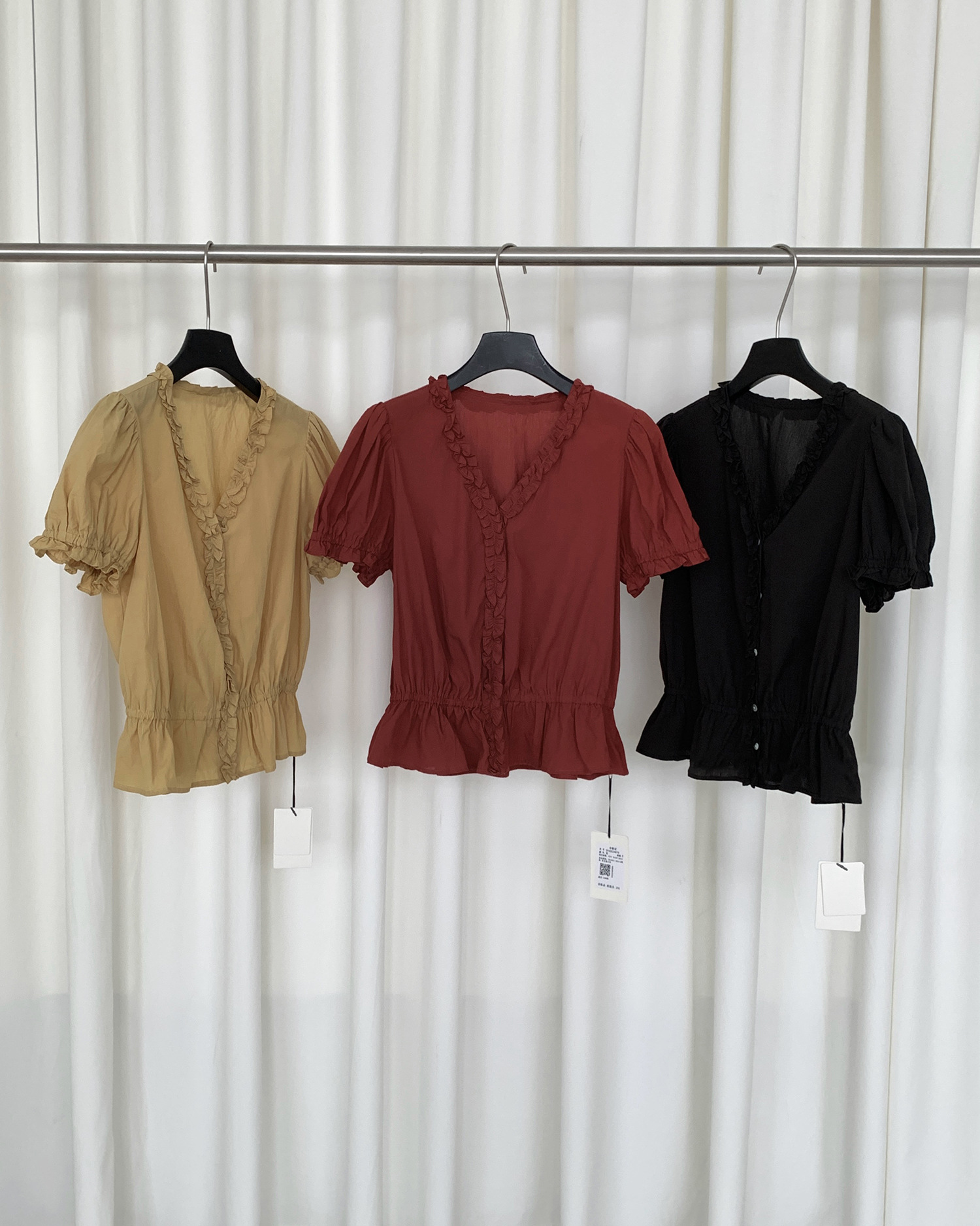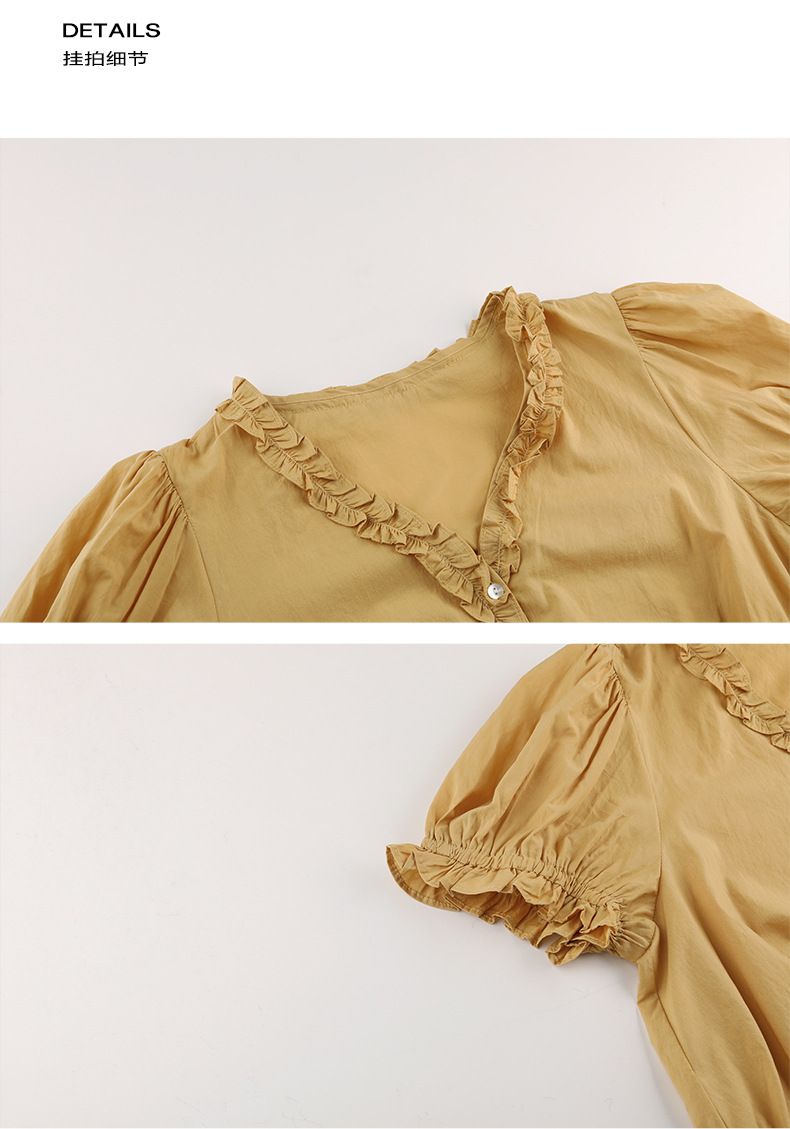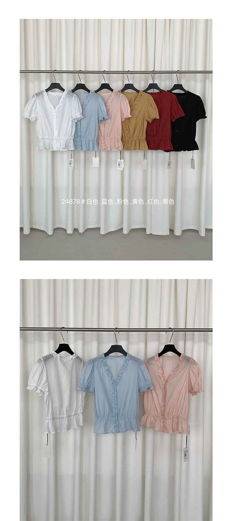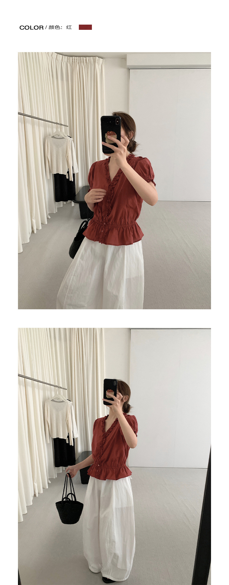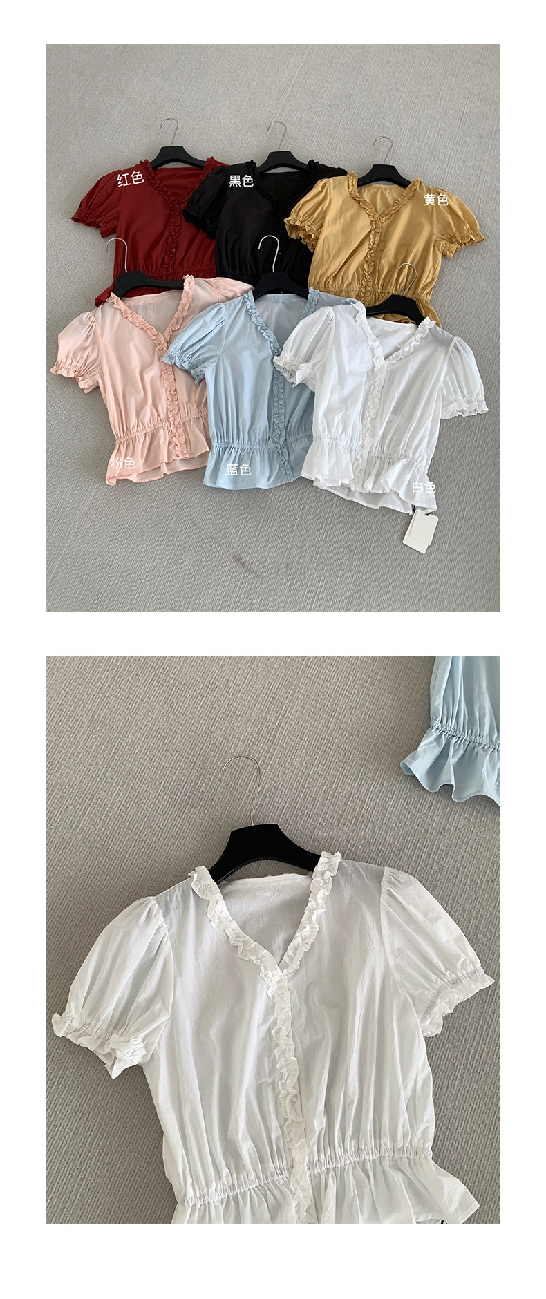 TG 프랑스 장난기 많은 곰팡이 레이스 주름 거품 소매 셔츠 여성의 2025 년 여름 새로운 V 넥 탑 24878스토어 가기