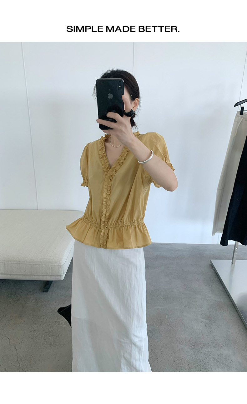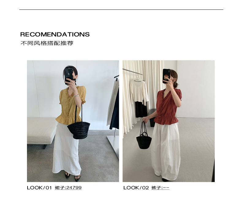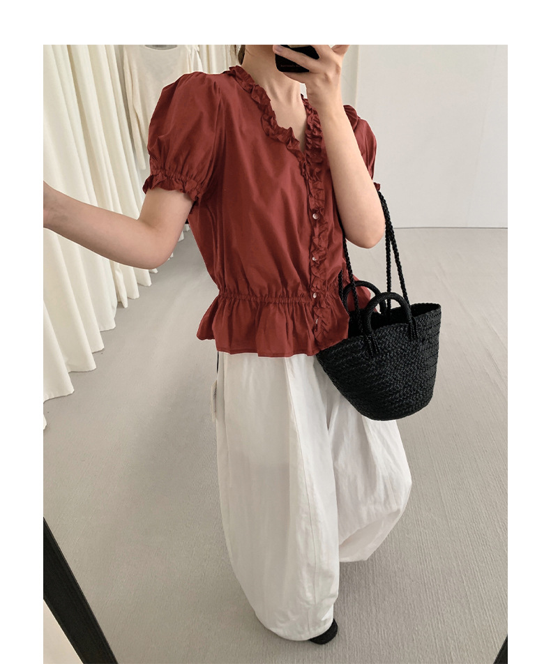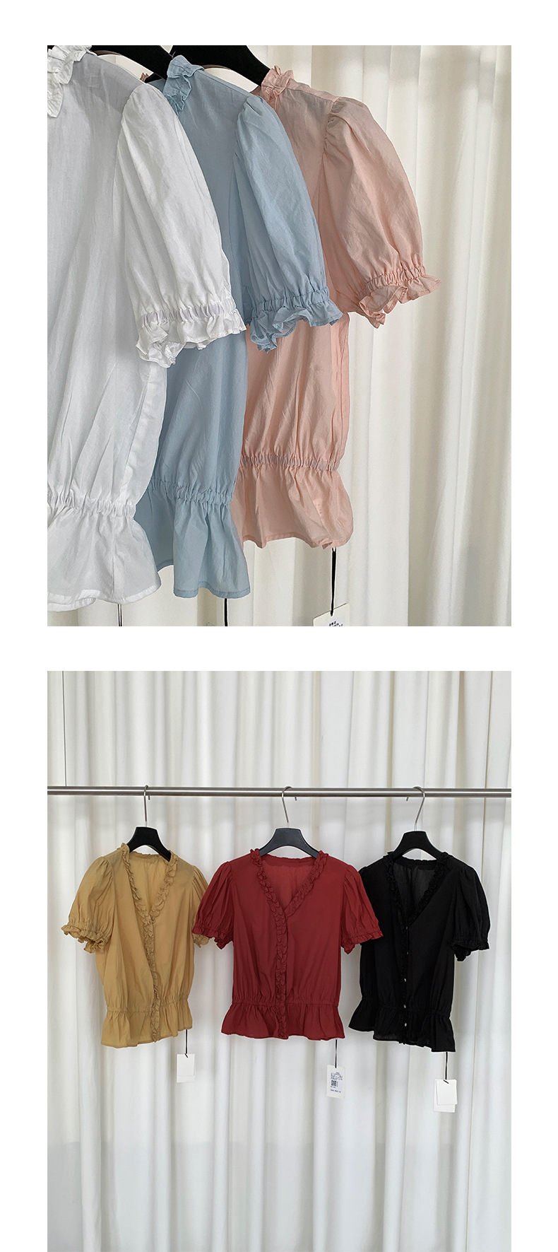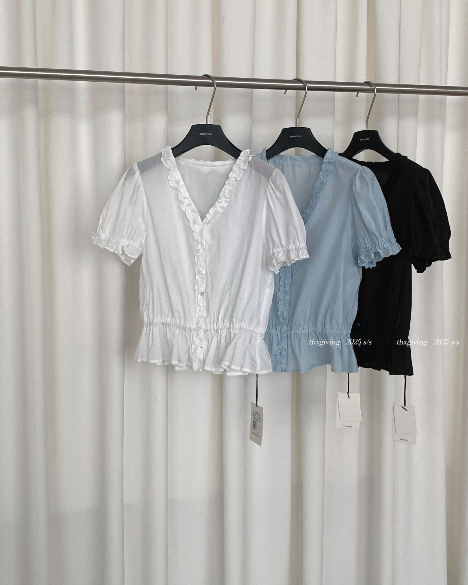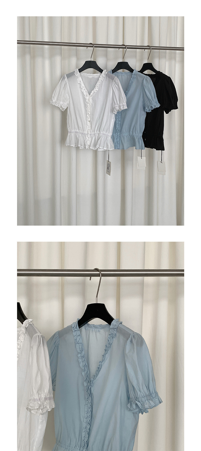 TG 프랑스 장난기 많은 곰팡이 레이스 주름 거품 소매 셔츠 여성의 2025 년 여름 새로운 V 넥 탑 24878스토어 가기
