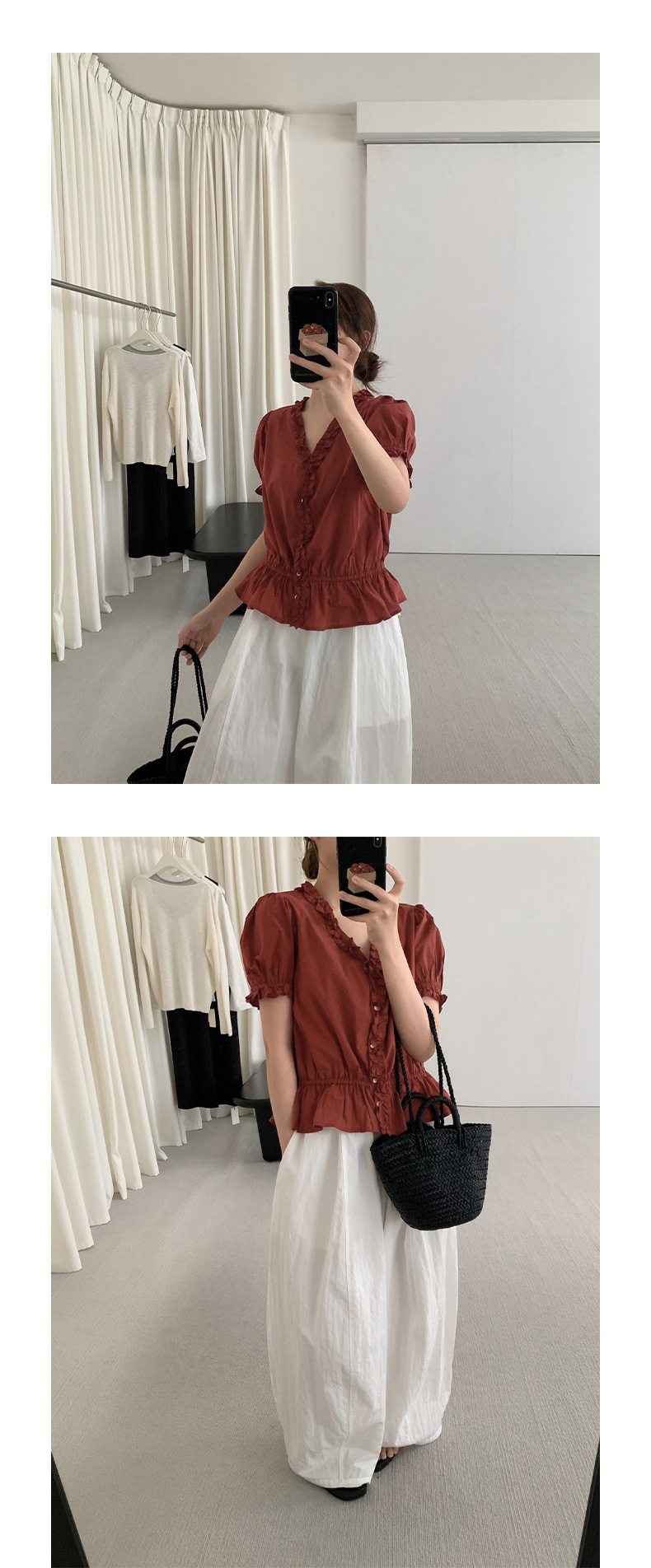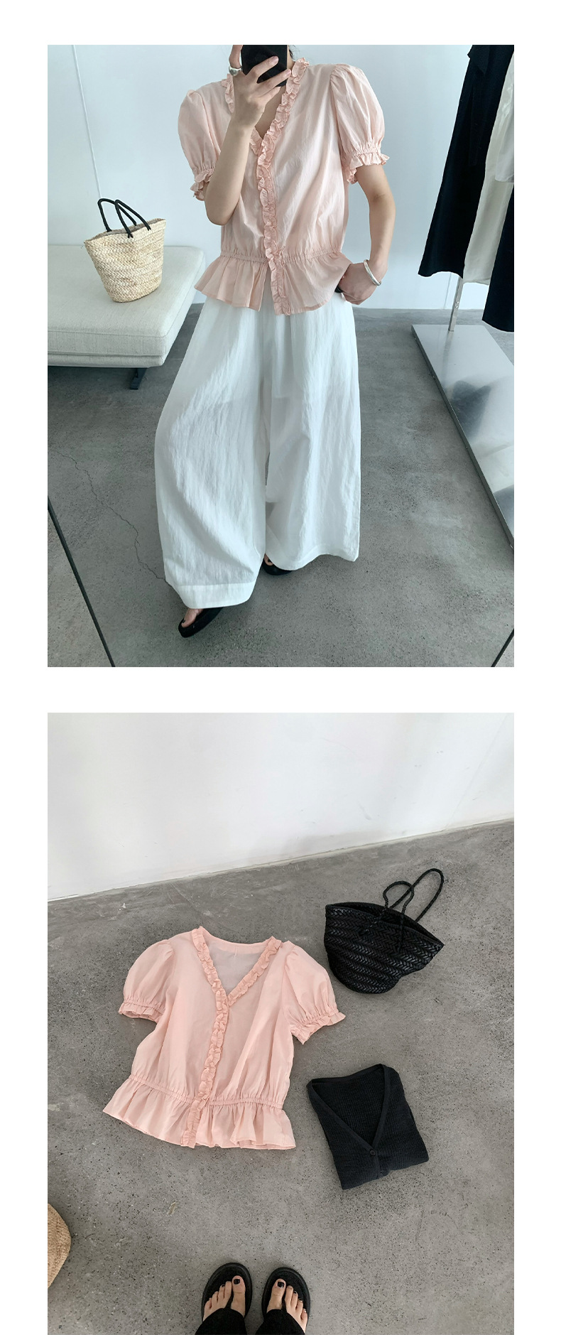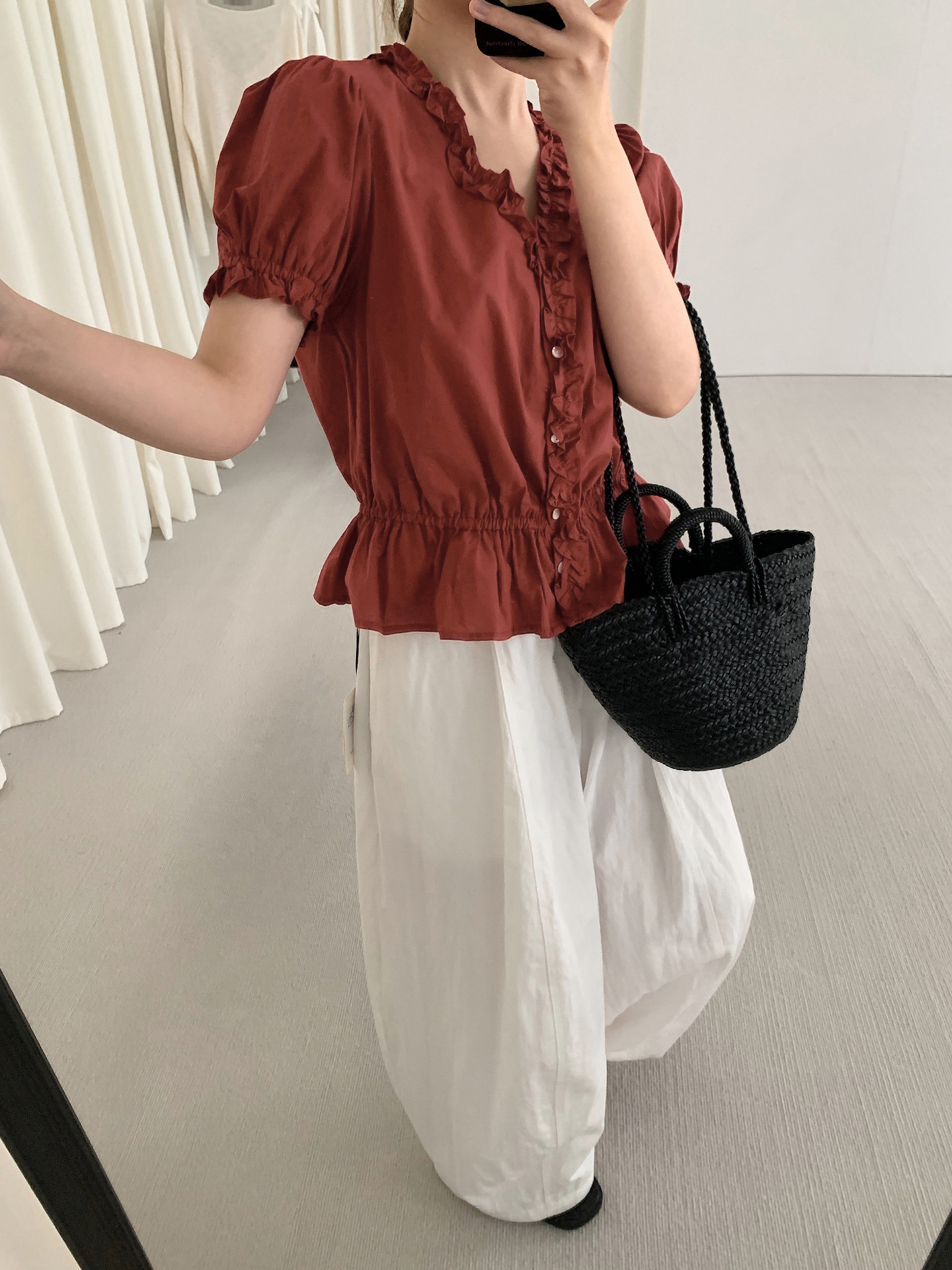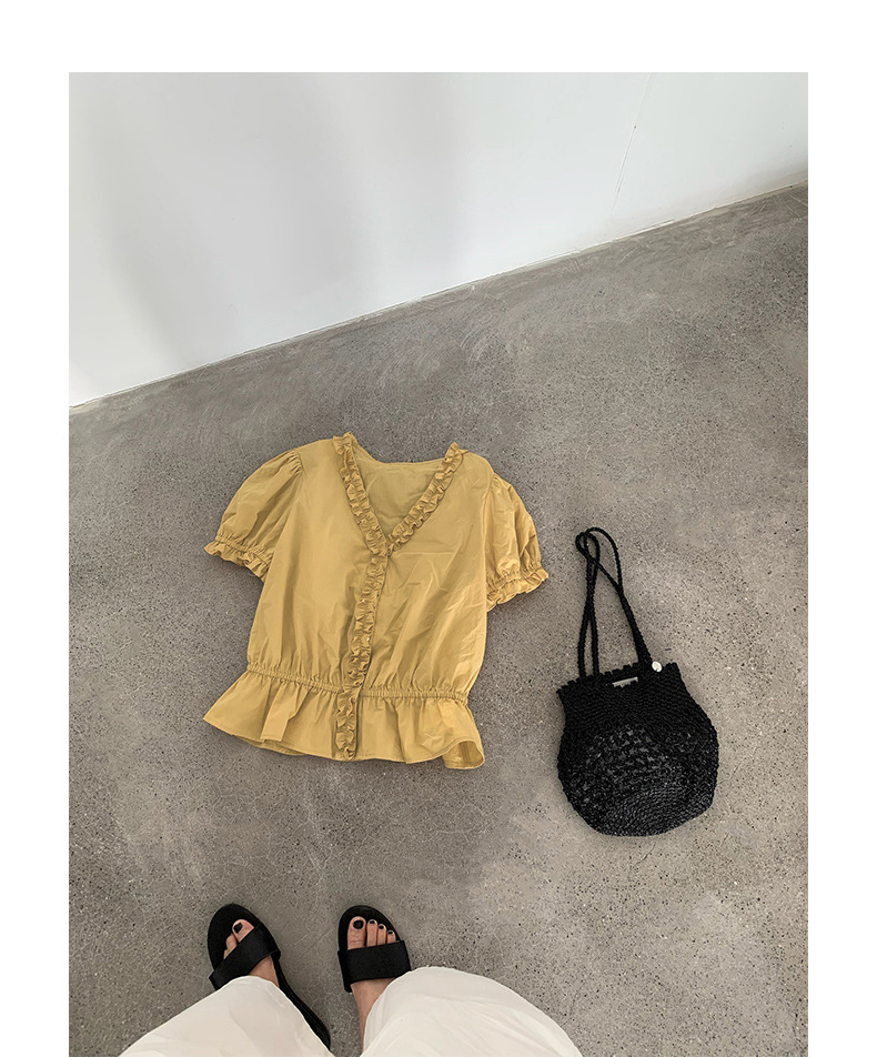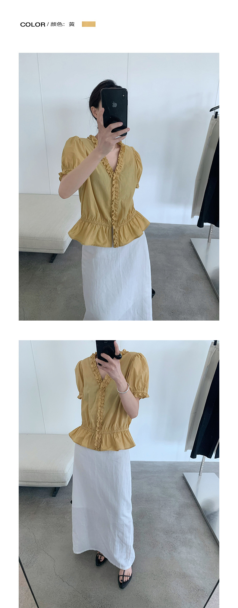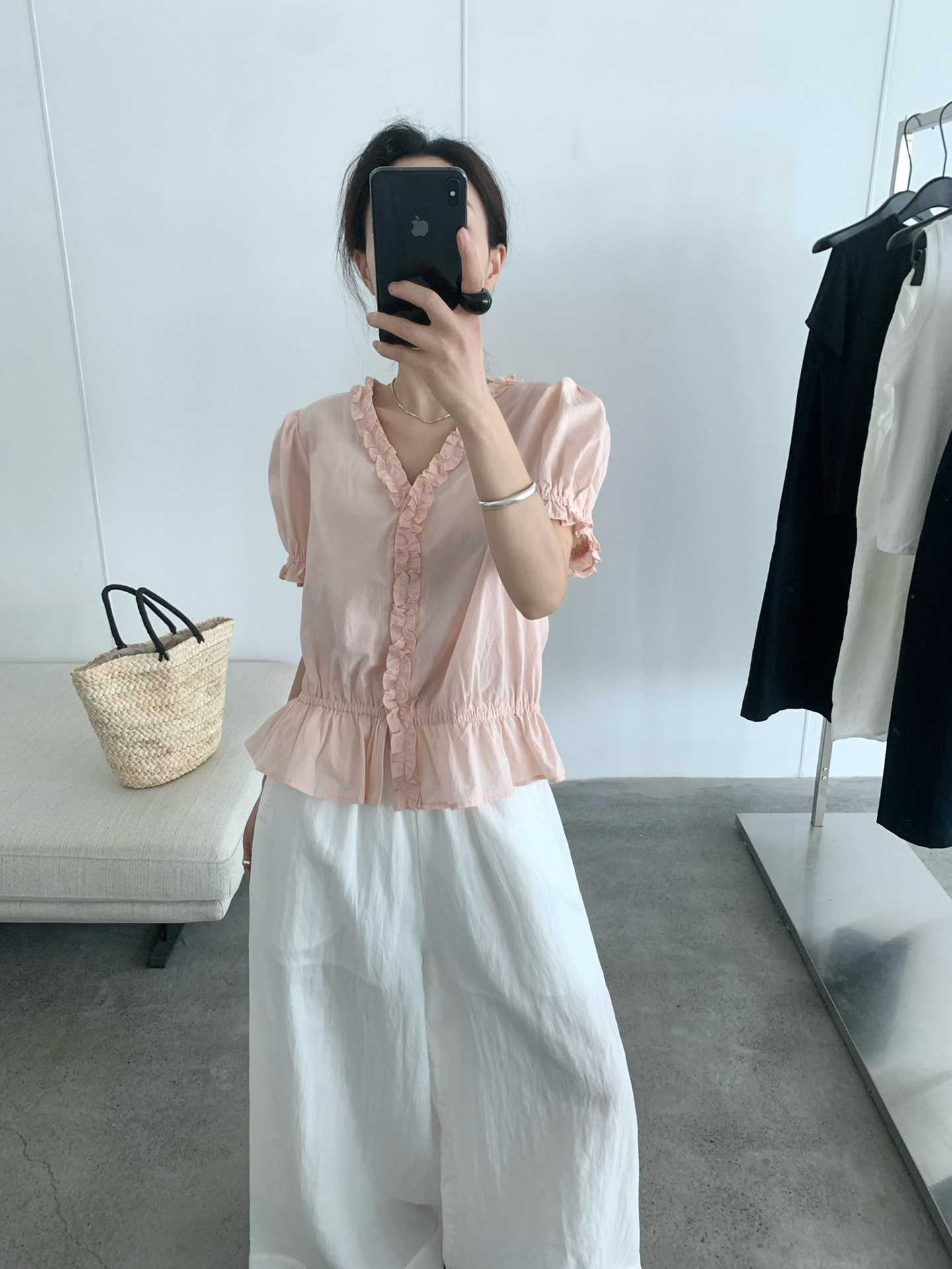 TG 프랑스 장난기 많은 곰팡이 레이스 주름 거품 소매 셔츠 여성의 2025 년 여름 새로운 V 넥 탑 24878스토어 가기