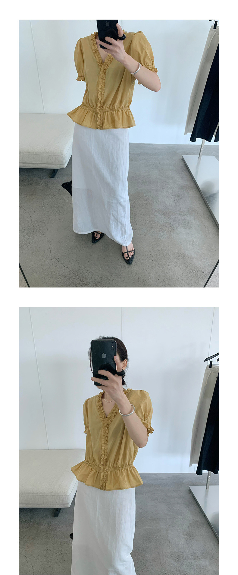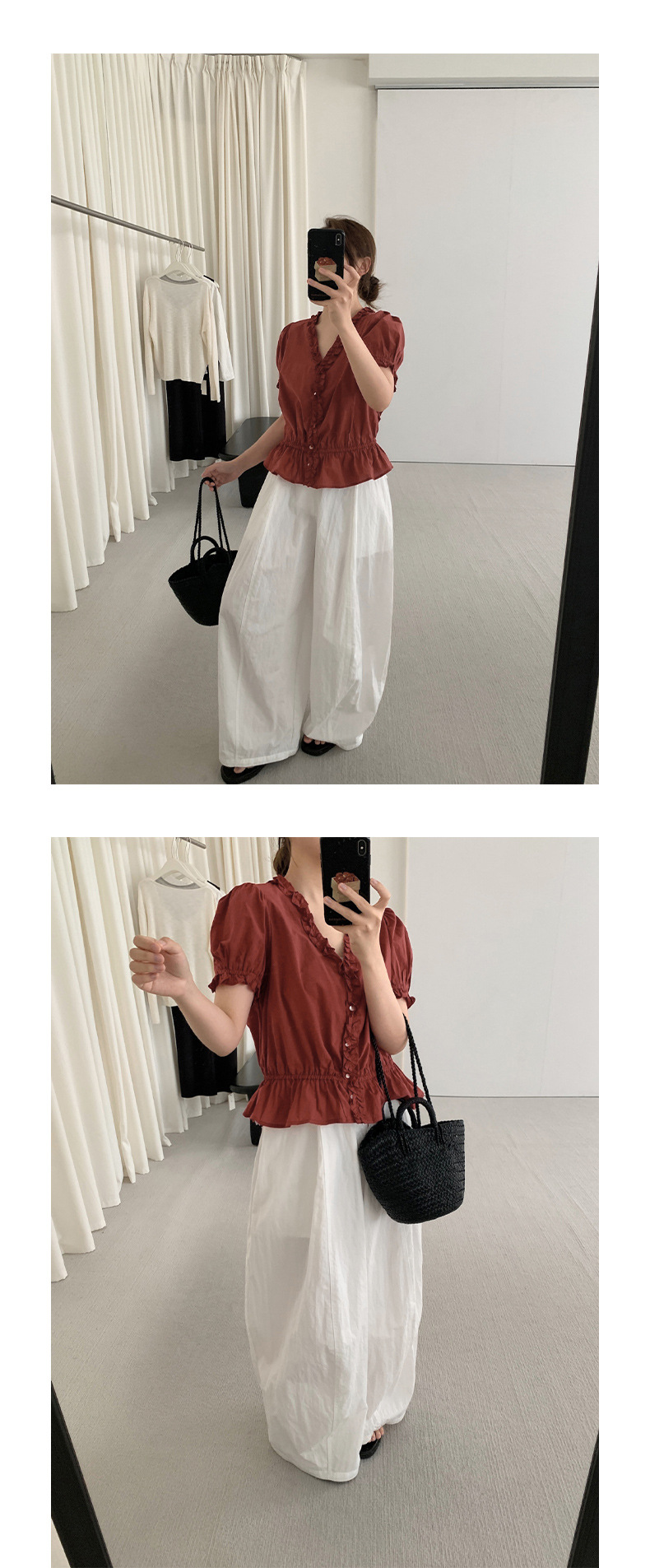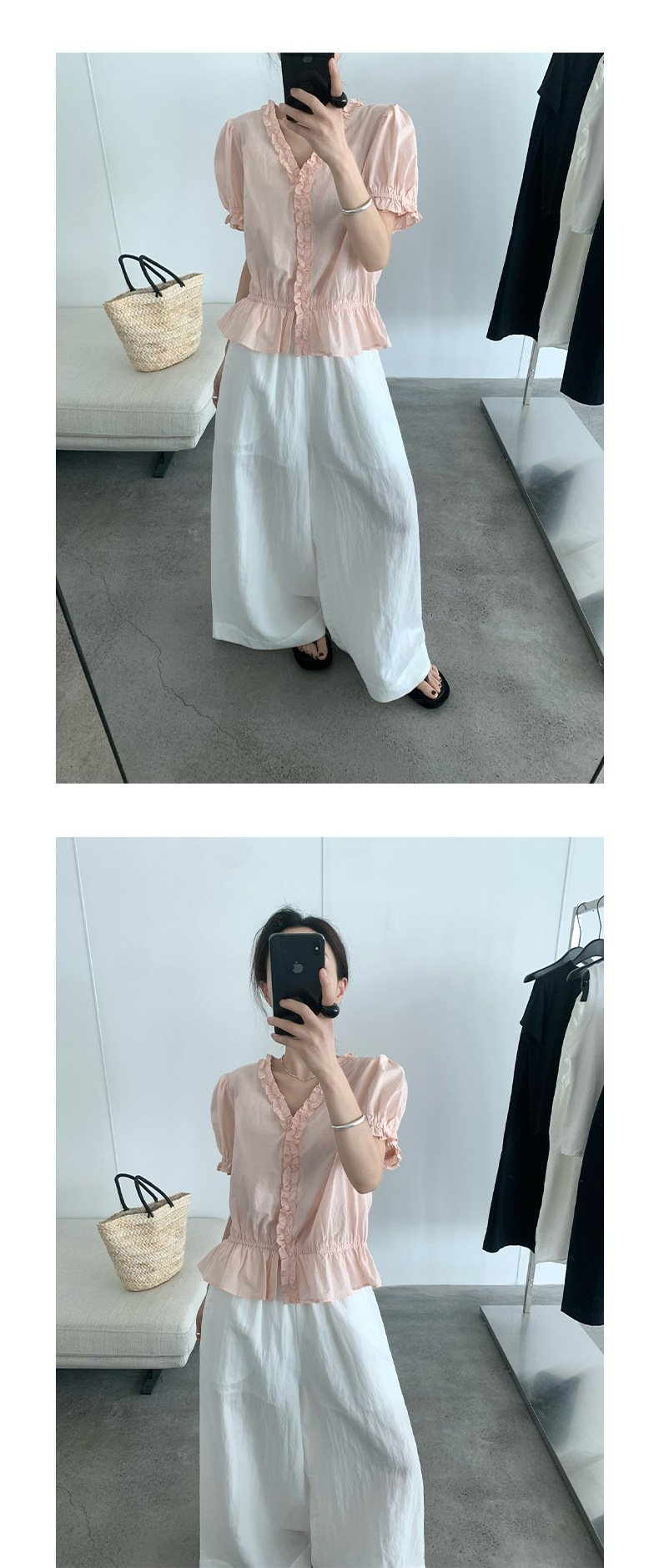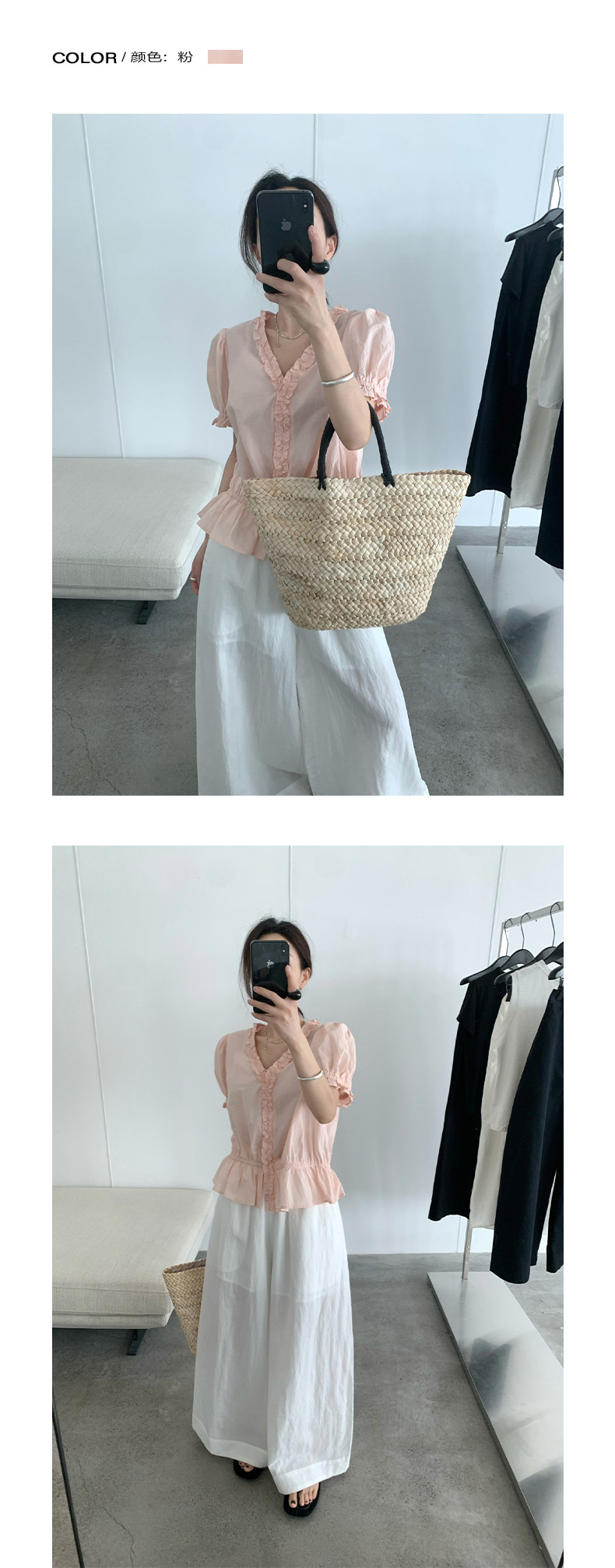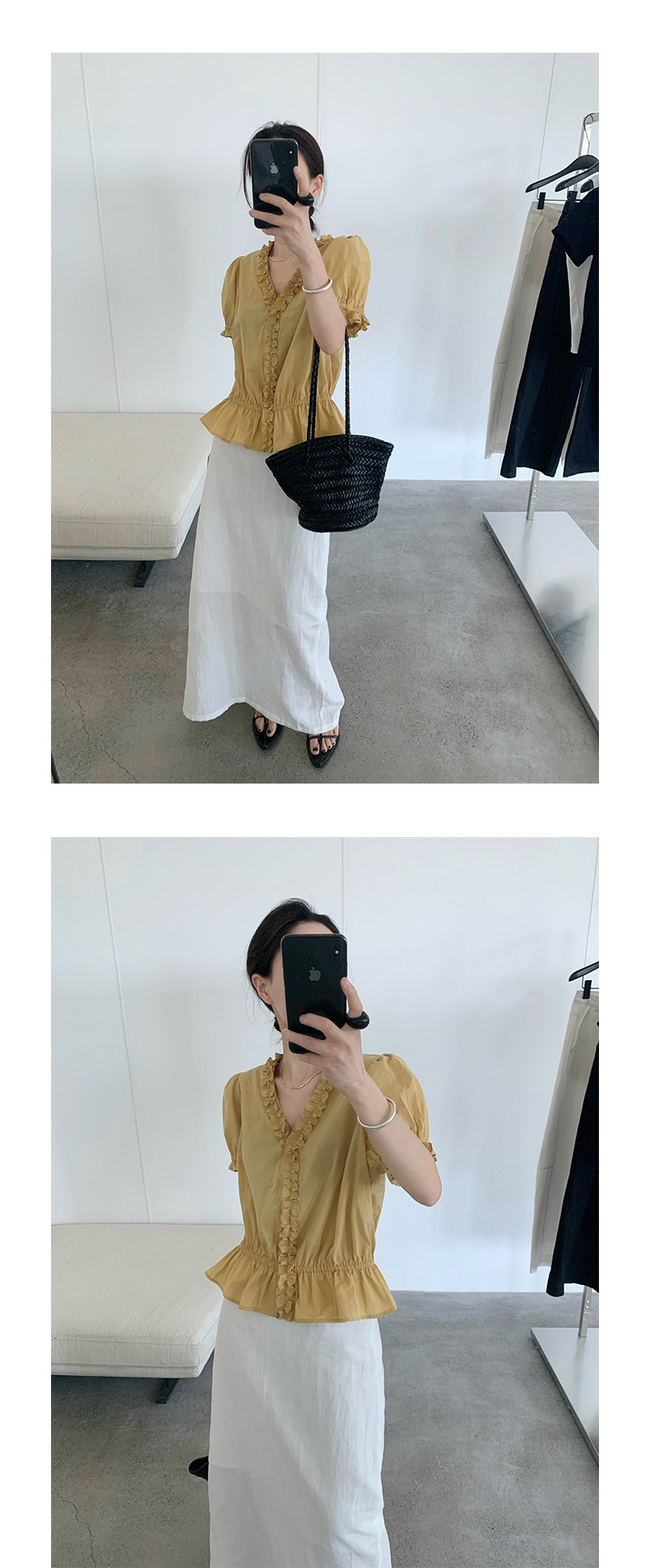 TG 프랑스 장난기 많은 곰팡이 레이스 주름 거품 소매 셔츠 여성의 2025 년 여름 새로운 V 넥 탑 24878스토어 가기