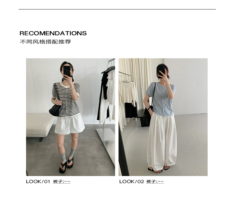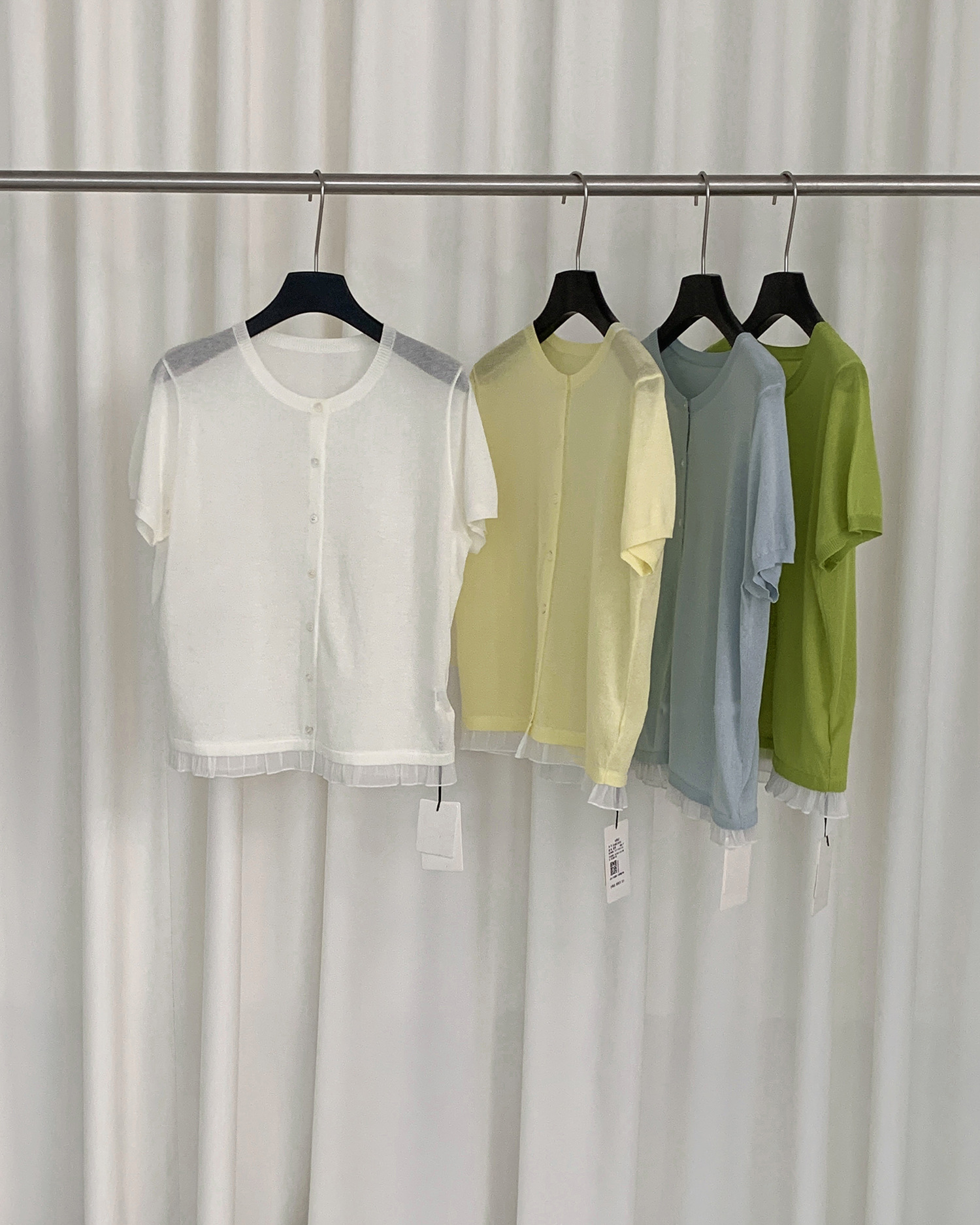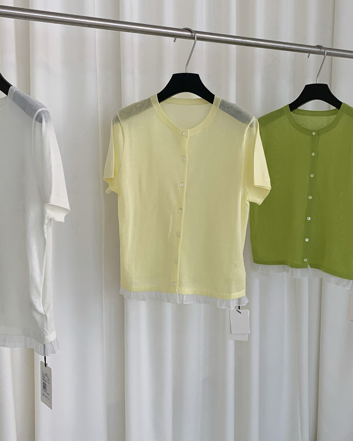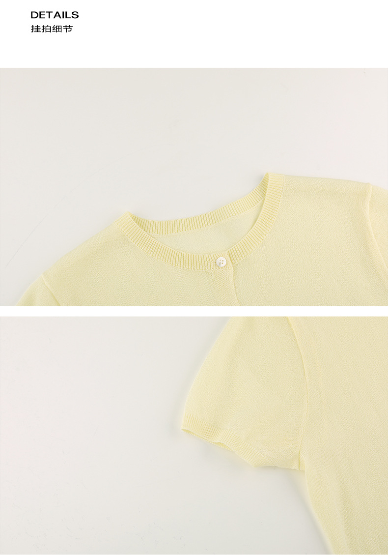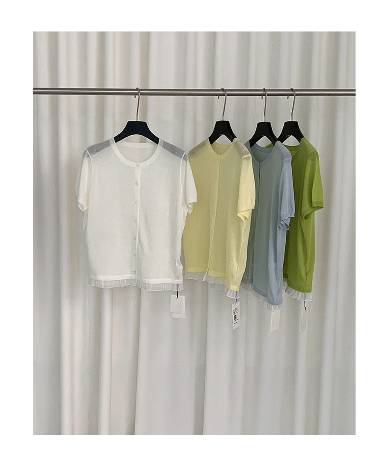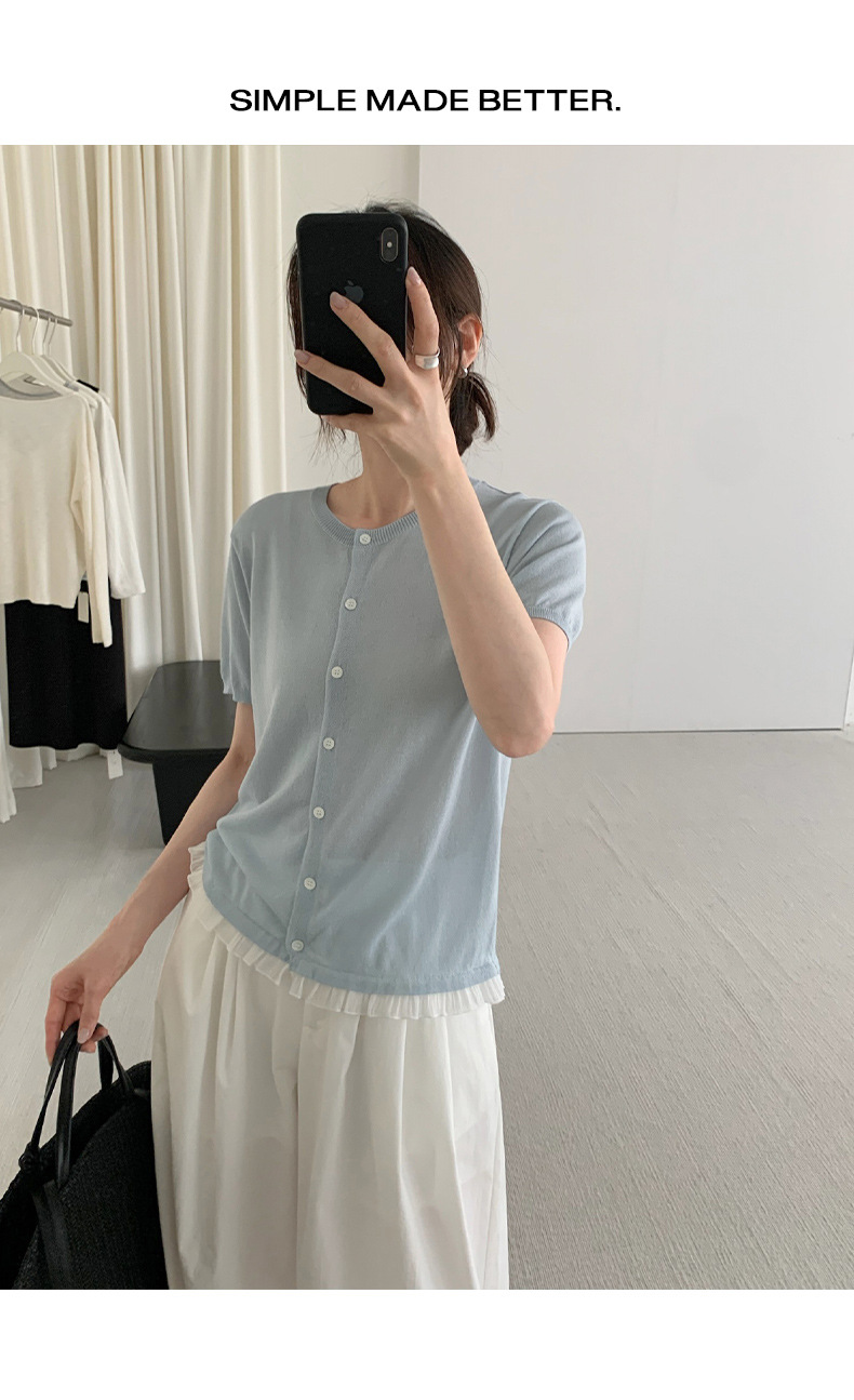 TG 작은 신선한 연꽃 잎 레이스 스티칭 싱글 브레스트 스웨터 여성의 2025 년 여름 새로운 짧은 소매 탑 24858스토어 가기